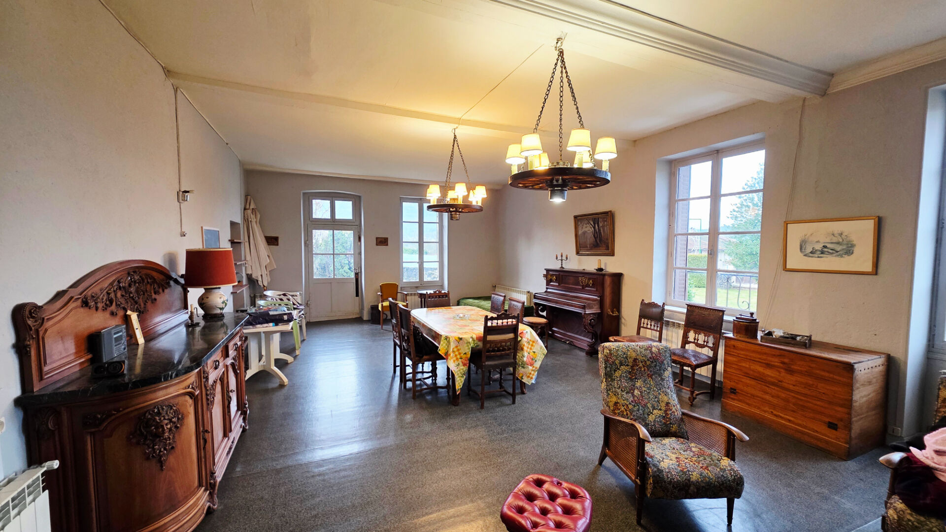 Grande maison de village en pierre datant de 1863. un logement T5 au RDC Cuisine, vaste séjour de 52m2, 3 chambres, salle d'eau avec sanitaire, cellier. environ 150m2. au 1er étage environ 150m2 à aménagé composé de 7 pièces. Sous sol complet de 130m2 (cave, garage, atelier, chaufferie) Auvent, un local jardin et un petit bâtiment annexe en dépendance (22m2). Grand terrain de 5019m2 dont une partie constructible. Contact Fabrice GUY