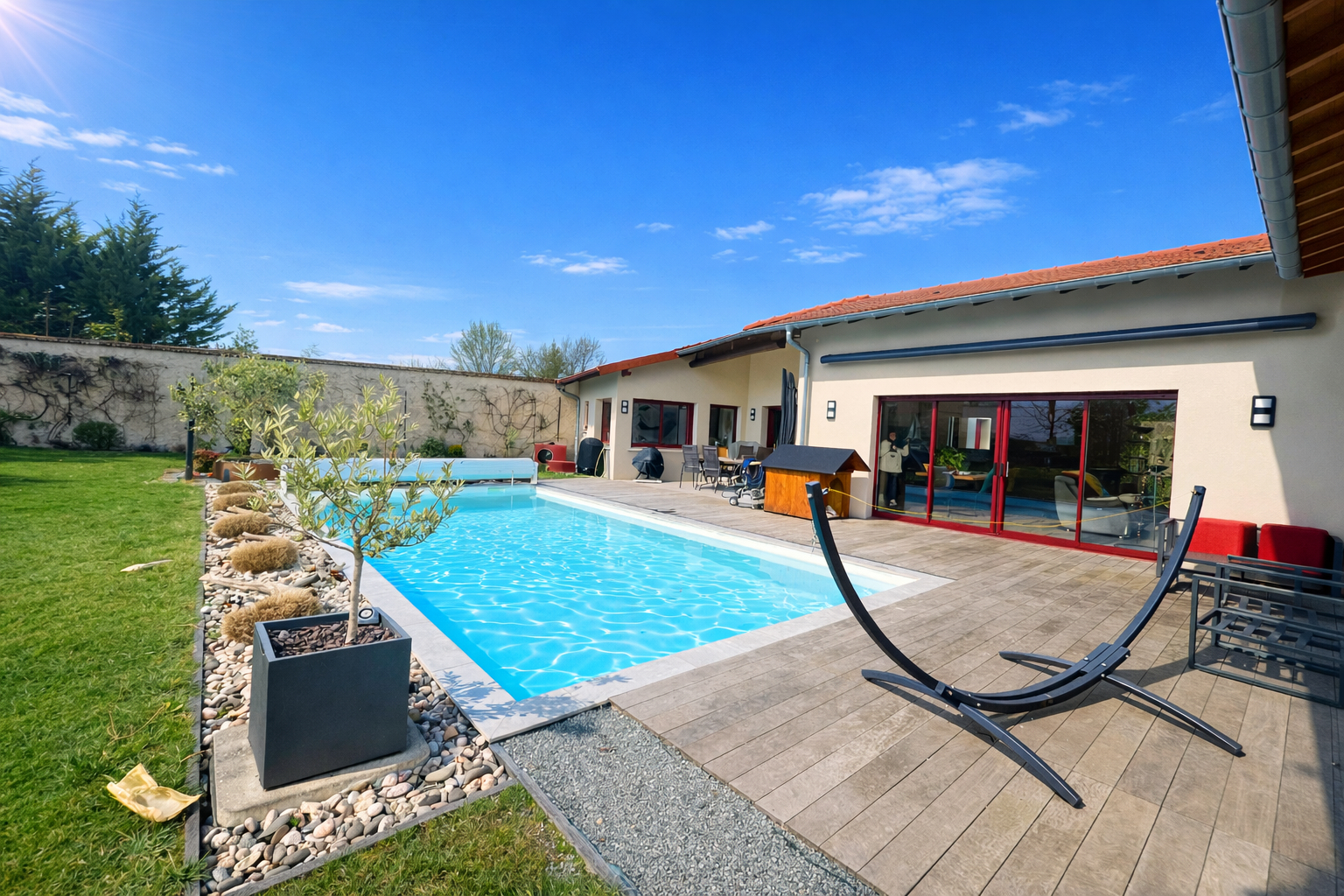 L'agence LYAUDET DRAJNUDEL Immobilier, spécialiste en immobilier résidentiel et d'entreprise, vous propose cette superbe maison de 150 m2, implantée sur un terrain de 1932 m2 (chemin d'accès privé inclus), dans un environnement calme et recherché, à proximité immédiate des commodités. A l'intérieur, la maison séduit par sa luminosité grâce à de larges ouvertures. -Pièce de vie de 64 m2 avec baie vitrée à galandage et cuisine ouverte toute équipée. -Suite parentale avec SDE et dressing -2 autres chambres -SDE -WC/lave-mains -Espace bien-être ouvrant sur terrasse, avec jacuzzi, douche et WC ( ou pièce aménageable selon besoin). -Buanderie/chaufferie avec rangements. -Cave aménagée et climatisée. La pièce de vie s'ouvrent sur une superbe terrasse avec piscine au sel, chauffée et parc arboré. Un studio indépendant de 30 m2 entièrement équipé complète ce bien, idéal pour recevoir des amis. Venez découvrir ce bien aux prestations de qualité! Une maison moderne, confortable et clé en main, idéale pour une vie de famille alliant calme, volumes et proximité urbaine. Les informations sur les risques auxquels ce bien est exposé sont disponibles sur le site Géorisques : http://www.georisques.gouv.fr