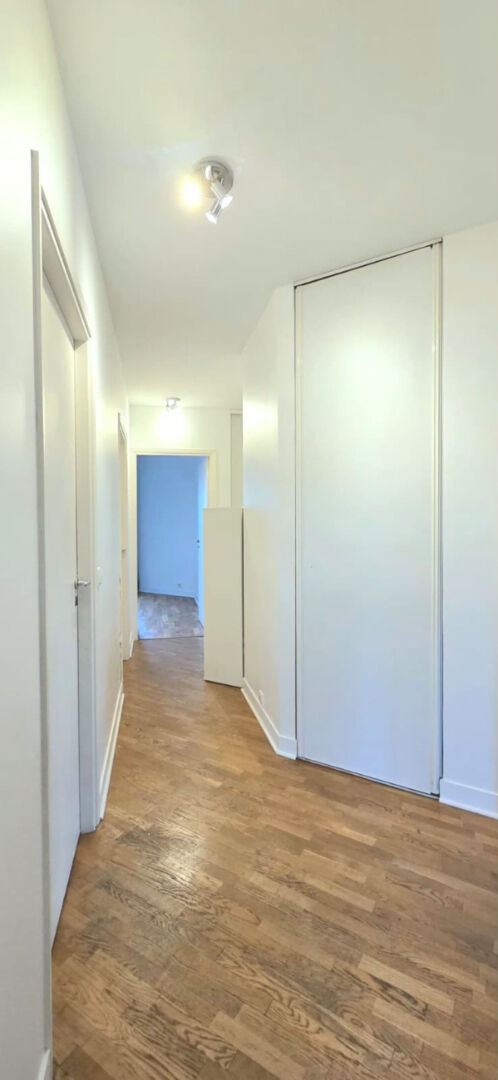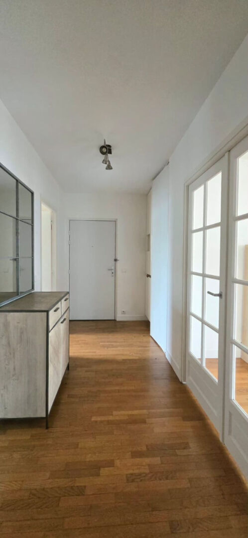 PONT DE LEVALLOIS _ A deux pas du métro (ligne 3), à l'angle de la rue Mathilde Girault et de la rue Baudin, au sein d'un ensemble édifié en 1998 sécurisé avec gardien, au quatrième étage par ascenseur, un appartement traversant de 92 m² loué vide. Ce bien vous séduira par ses beaux volumes, sa luminosté et ses extérieurs. Il propose une large entrée avec vestiaire, un vaste séjour de 38 m² donnant accès à deux balcons, une cuisine indépendante aménagée et équipée. Un couloir dessert l'espace nuit comprenant deux chambres avec dressing dont une sur jardin, une salle de bain avec baignoire, une salle de douche avec wc et un second wc invité. Possibilité de créer une troisième chambre dans le séjour. Nombreux rangements intégrés. Chauffage et eau chaude collectifs. Volets roulants électriques. DPE D. Une cave et une place de parking en sous-sol complètent ce bien. Disponible au 20 février. Honoraires d'agence : bail loi Alur 15 euros/m², bail Code civil 15 % du loyer annuel. Marie-Celine GIRAUD (EI) Agent Commercial - Numéro RSAC : - .
