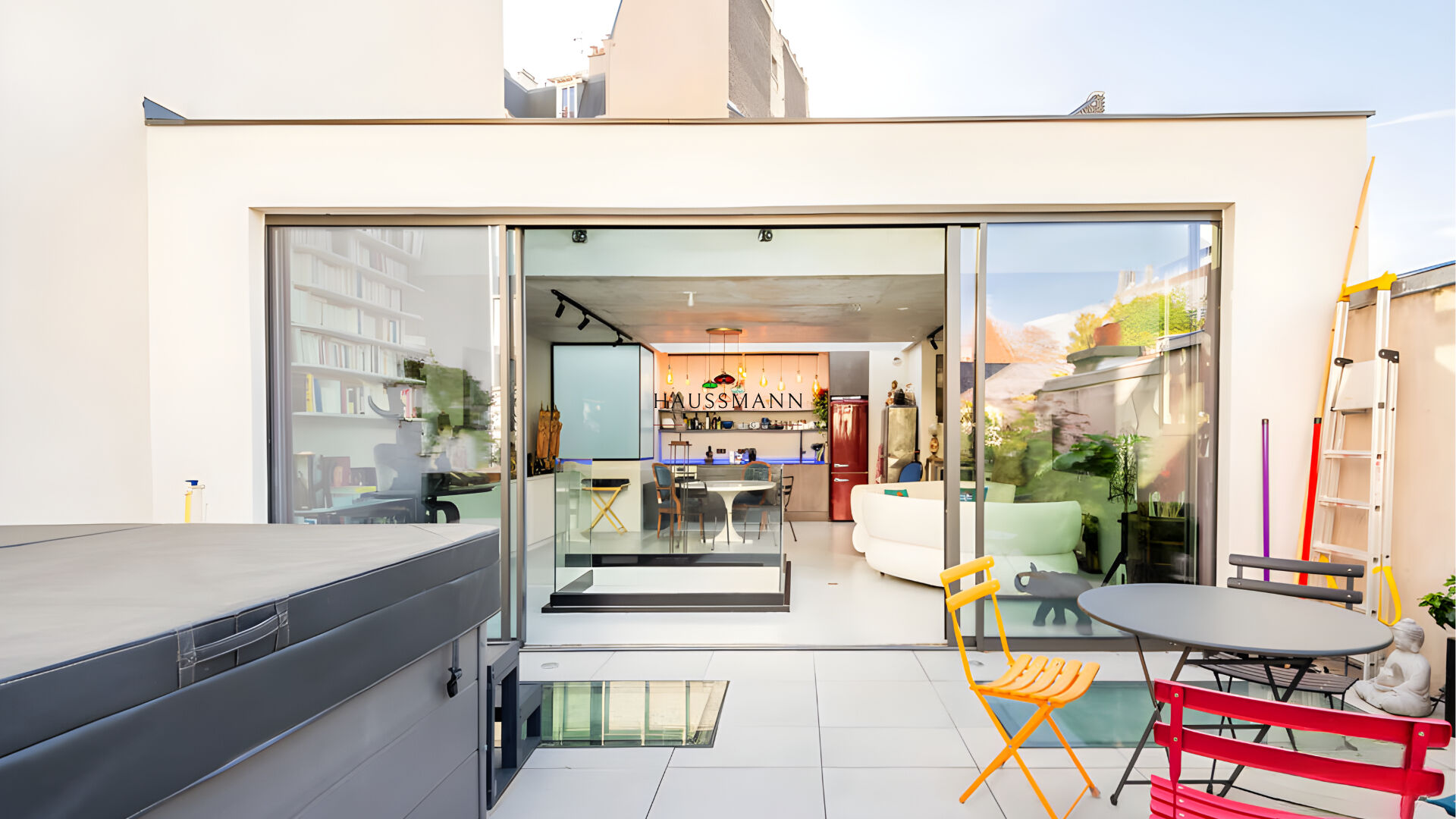 Parc Montsouris Au fond d'un impasse privée à proximité immédiate du Parc, maison sur 3 niveaux composée au rez-de-chaussée d'une première réception de près de 60m² avec 4.80m de hauteur sous plafond, une cuisine d'appoint et une mezzanine. Au premier étage, un séjour avec cuisine ouverte, trois chambres dont une avec une large baie vitrée et loggia (indépendance possible), 2 salles d'eau et deux WC. Au deuxième étage, large pièce de vie ouverte , climatisé et lumineux, donnant sur une terrasse arborée de plain-pied de 37m2. Honoraires charge vendeur Les informations sur les risques auxquels ce bien est exposé sont disponibles sur le site Géorisques : www.georisques.gouv.fr