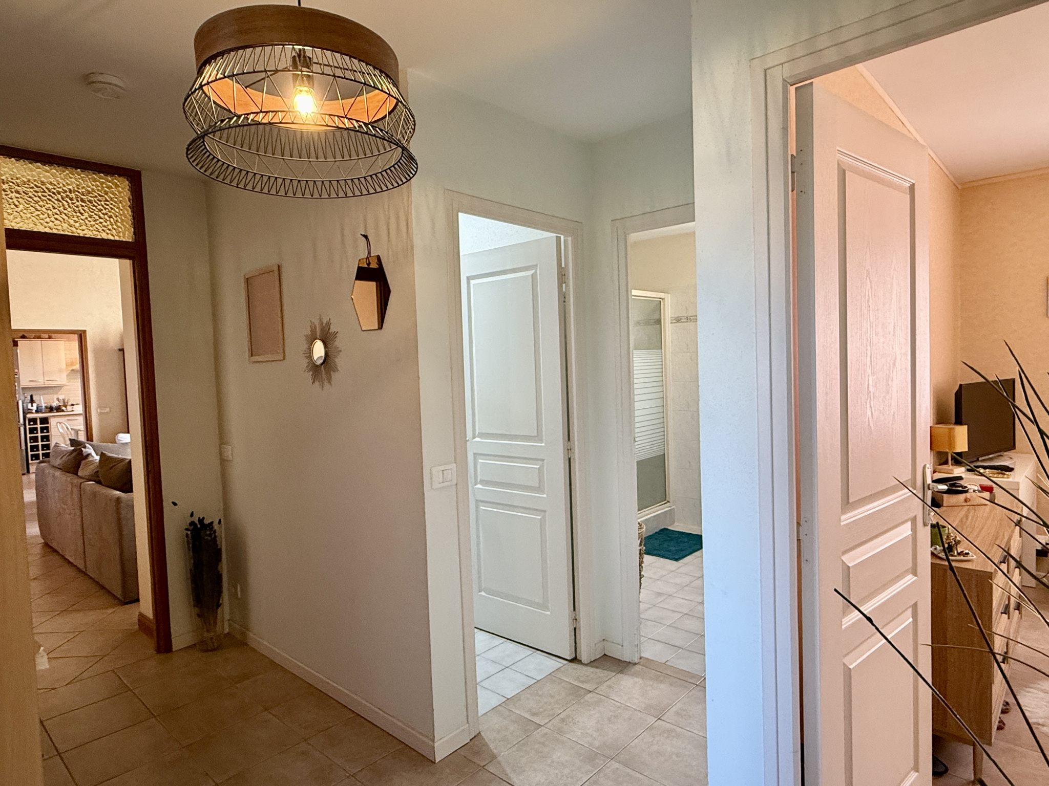 Côté équipements, la maison dispose de menuiseries PVC double vitrage, d'un chauffage au gaz de ville (chaudière de 2010), ainsi que d'une climatisation réversible. La construction en briques avec isolation des murs et des combles assure un confort thermique appréciable.