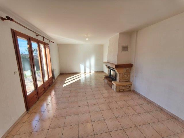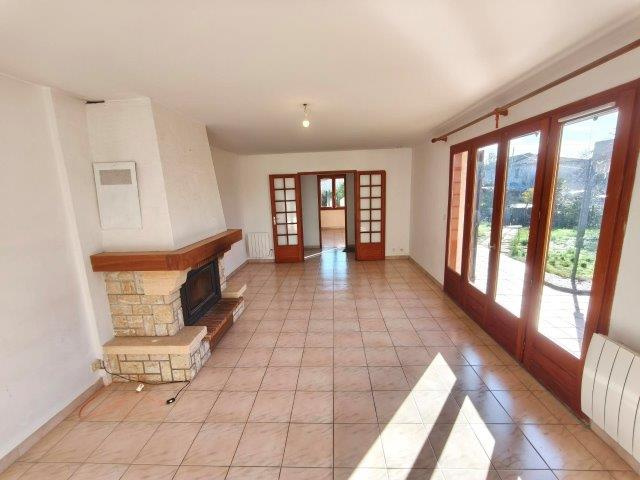 Salon lumineux exposé plein sud avec cheminée insert ouvrant sur terrasse de 25 m2, cuisine séparée pouvant s'ouvrir sur le séjour.