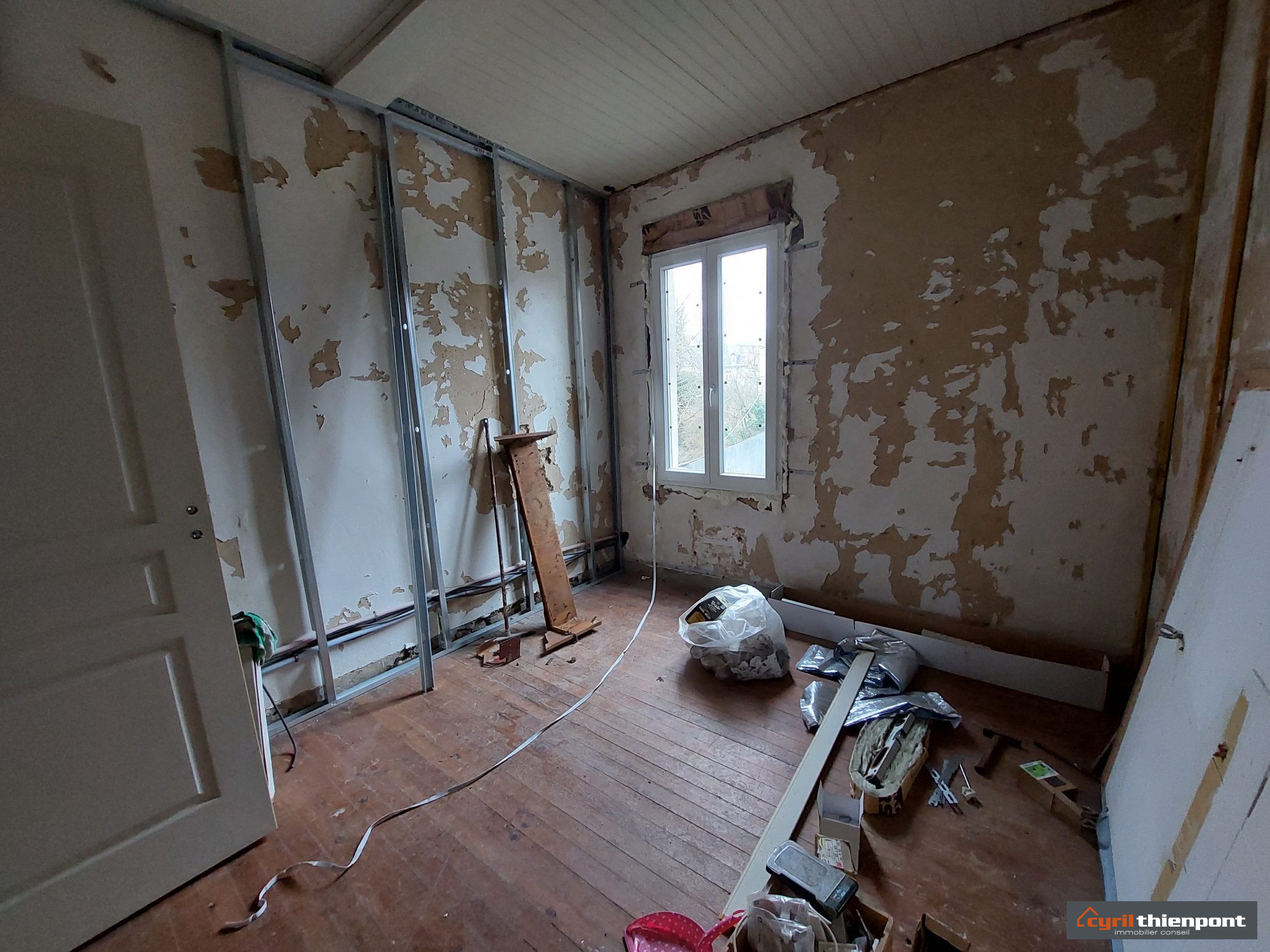La maison est à finir de rénover. Les menuiseries sont partiellement en double vitrage PVC, l'électricité et l'isolation sont en cours de réalisation.