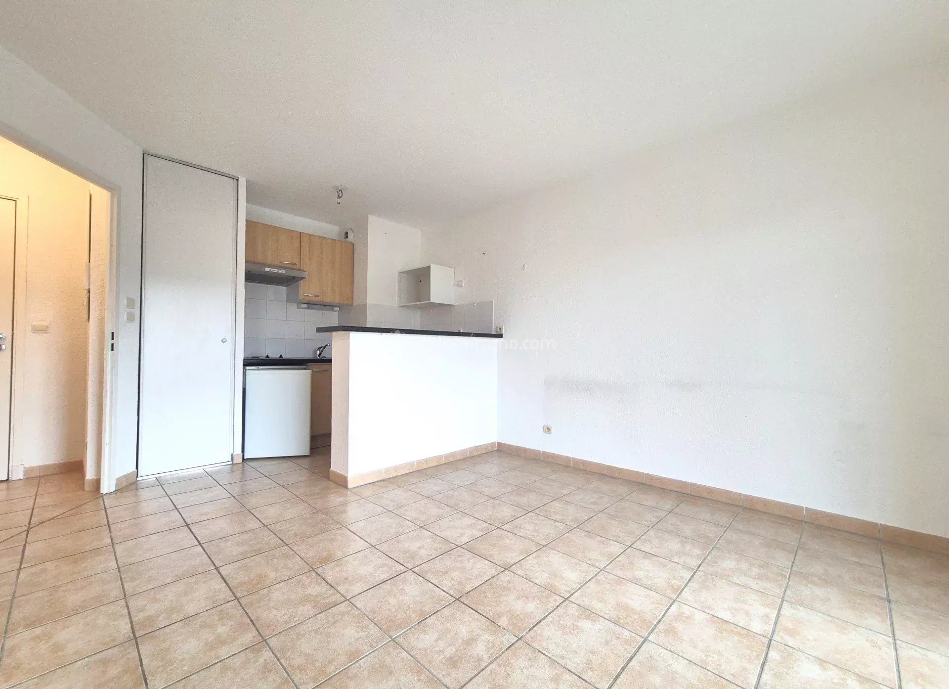 ALBI ATLANTIS. Appartement T2 de 32 M² en résidence sécurisée. Une entrée, un séjour avec cuisine américaine semi-équipée (plaques, hotte) et loggia, une chambre, une salle de bains, un WC. Chauffage électrique. Logement soigné dans quartier calme. Disponible.