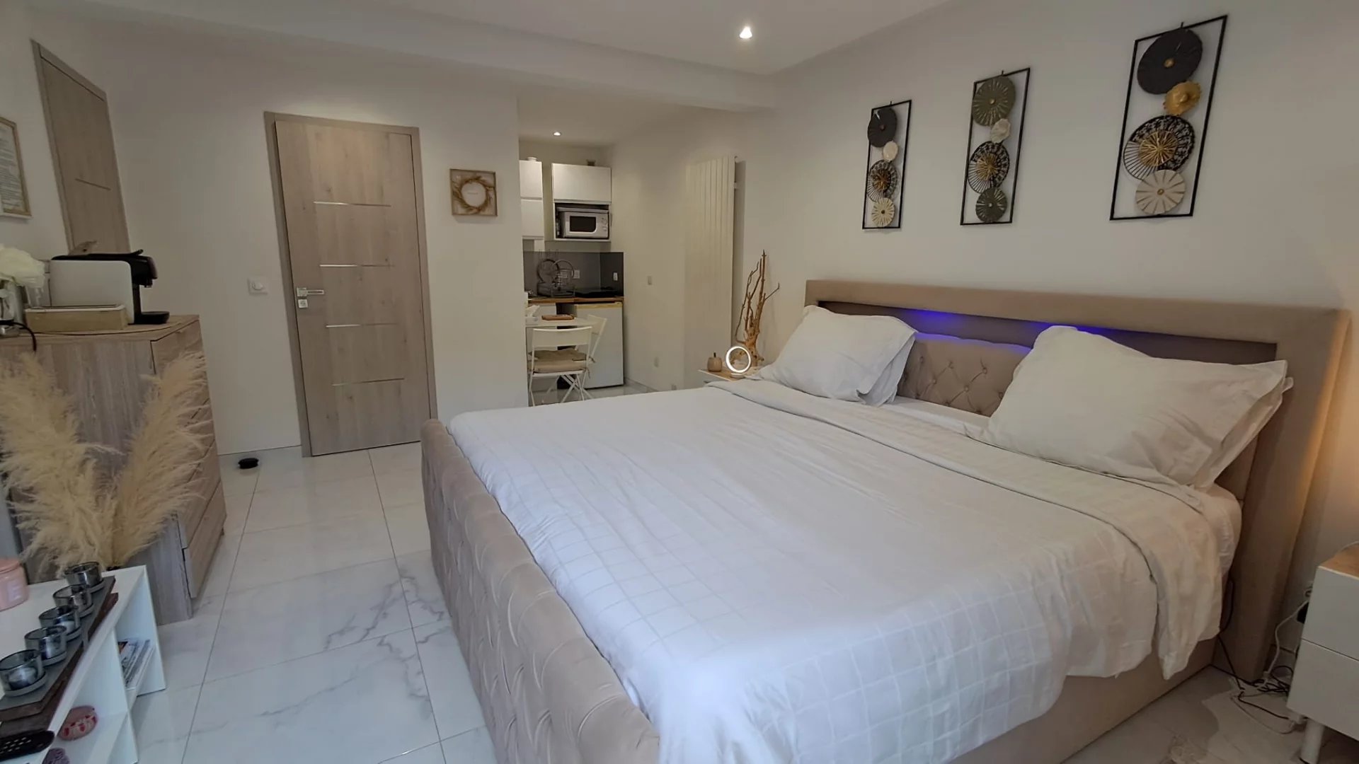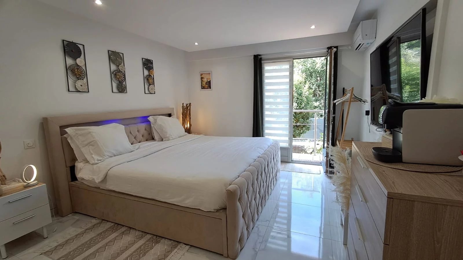 Dans le quartier recherché du Borrigo à Menton, au calme absolu, découvrez ce superbe appartement en bas de maison, en excellent état, offrant de très beaux volumes, une luminosité remarquable et des prestations de qualité. Ce bien rare bénéficie d’un extérieur exceptionnel de 170 m². L’appartement se compose d’un agréable séjour avec cuisine ouverte, d’une buanderie, de toilettes indépendantes, d’une chambre ainsi que d’une grande suite parentale comprenant une chambre, une salle de bains, une petite kitchenette et une entrée indépendante par l’extérieur. Cette configuration permet, si souhaité, de générer un rendement locatif complémentaire grâce à la location saisonnière, tout en conservant le bien en résidence principale. L’accès au logement se fait par quelques marches et offre la possibilité de deux entrées distinctes. À l’extérieur, vous profiterez d’un bel espace aménagé avec jardin, terrasse, solarium et pergola, idéal pour savourer l'ensoleillement tout au long de la journée garanti par l’exposition sud-ouest. Le bien est équipé de la climatisation réversible, du double vitrage et ne présente aucune charge de copropriété. Un garage, situé en contrebas de l’accès dans la résidence juste en face, est proposé en supplément. Un bien unique et très rare à la vente à Menton, alliant calme, confort et potentiel locatif.