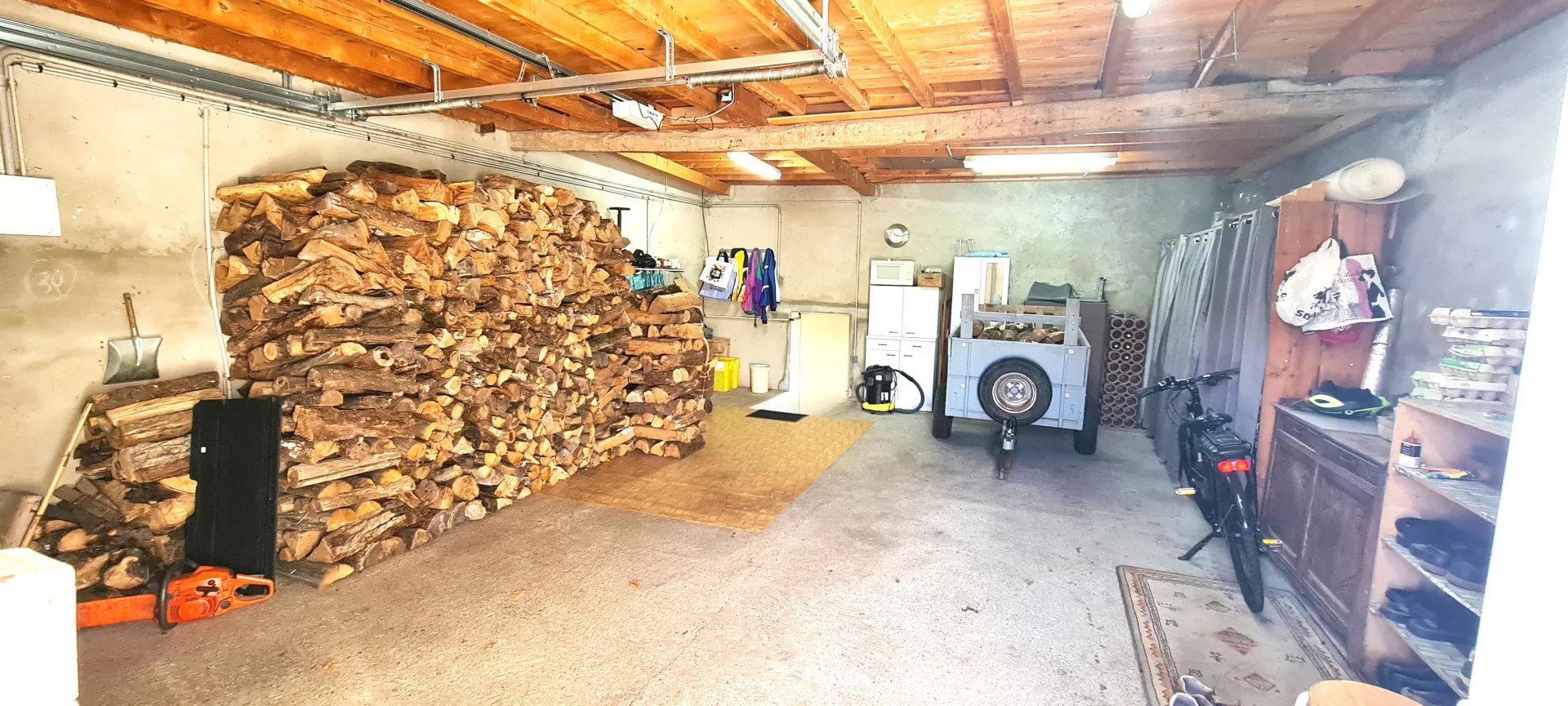 Remise indépendante de 21m², garage avec portail électrique de 47m² + dessus pour rangement, un appenti de 25m² et petit garage de 12m².