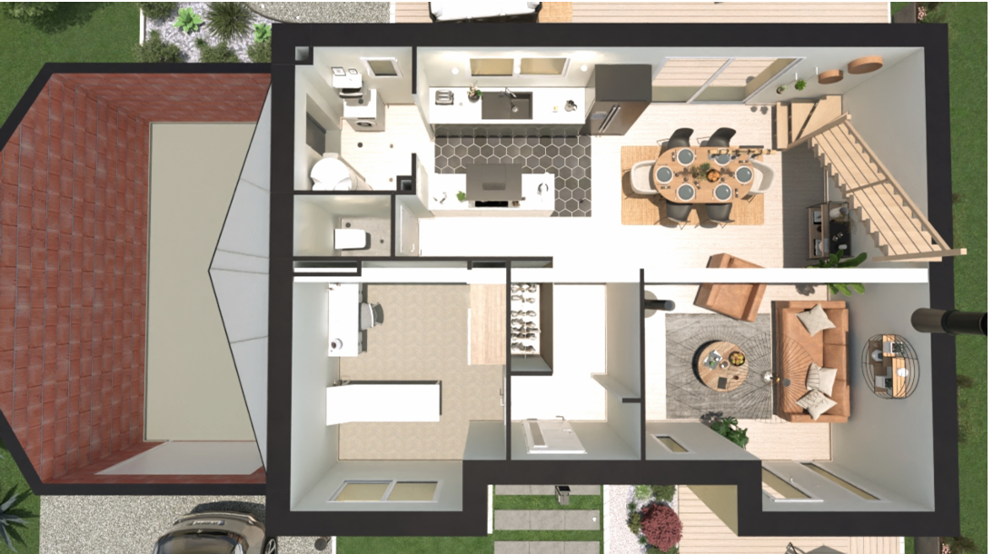 Maison RE2020 BC, 3 chambres+ grand séjour, + grand garage, concept prêt-à-finir,