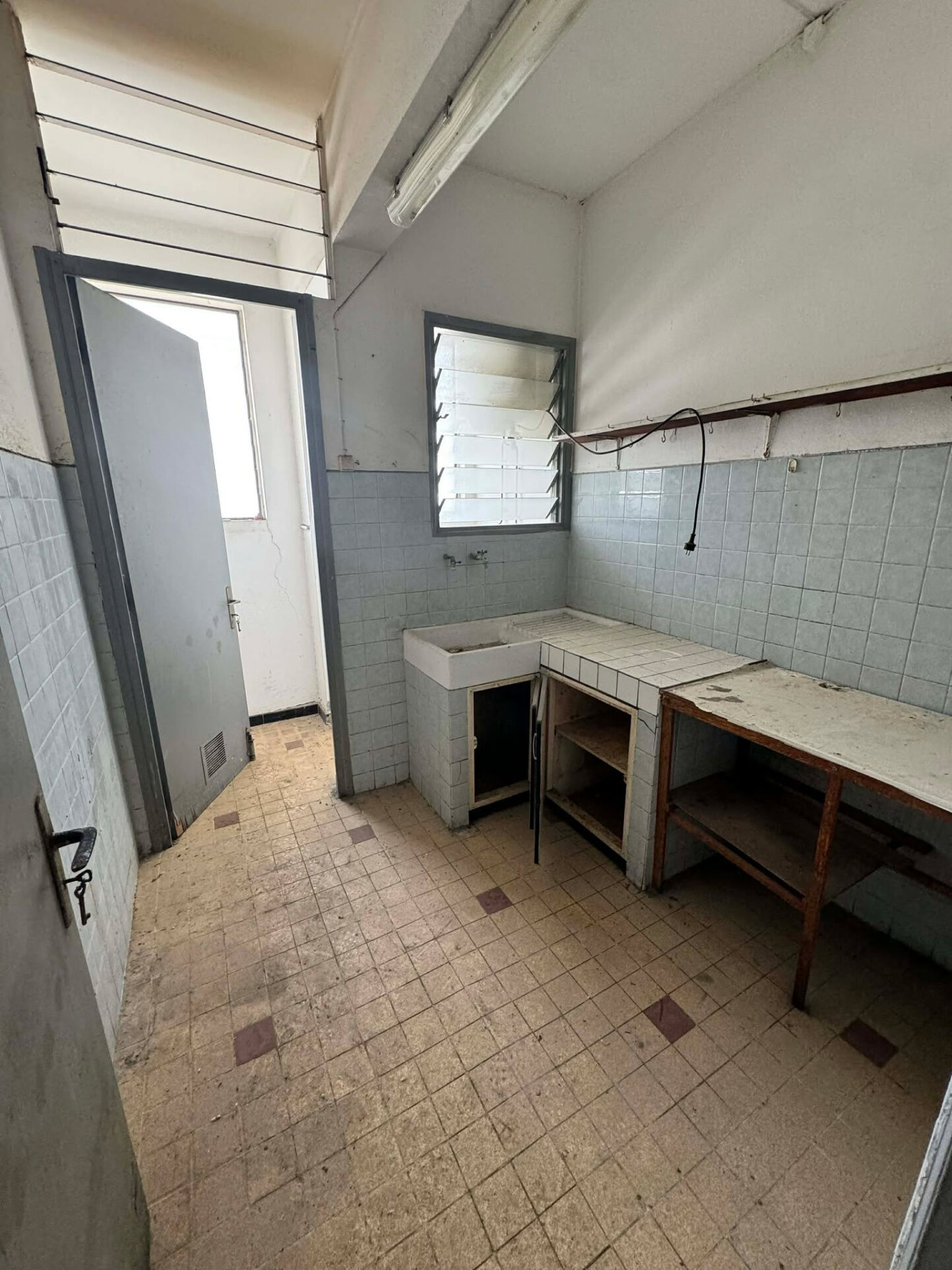 À proximité immédiate de la mairie de Saint-Pierre, au 1er étage sans ascenseur d'une petite copropriété, découvrez cet appartement T2 de 50 m², vendu libre d'occupation, à rénover.