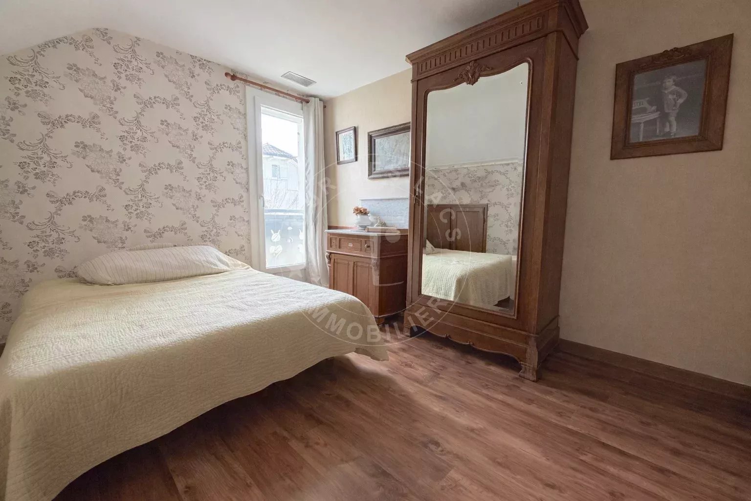 L'étage comprend 3 chambres, une salle de bains, une mezzanine, un WC et des combles. Le sous-sol complet dispose d'un garage double, d'une cave à vin, d'un atelier et d'une pièce de rangement.