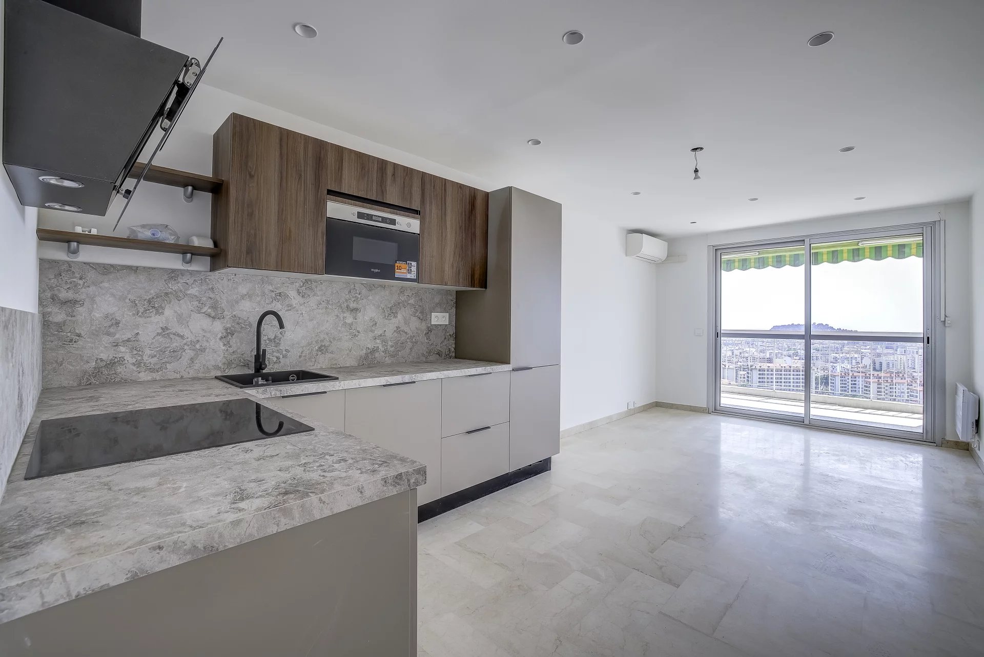 Dans une belle copropriété surplombant la ville, 3 pièces traversant de 55m2 en étage élevé, entièrement rénové et composé comme suit : Une entrée desservant un placard de rangement, des WC ainsi que d'un côté, un séjour-cuisine américaine ouvrant sur terrasse offrant une vue imprenable sur la ville et la mer et d'un autre côté, une salle d'eau avec douche à l'italienne ainsi que deux chambres et un balcon. Agrémenté d'une cave saine, ce produit rare est à saisir rapidement. Une belle opportunité à saisir tant pour une famille en quête de confort que pour un investisseur avisé cherchant une valeur locative sûre. Garage fermé possible en sus. Les informations sur les risques auxquels ce bien est exposé sont disponibles sur le site Géorisques : www.georisques.gouv.fr Honoraires à la charge de l'acquéreur. La présente annonce immobilière a été rédigée sous la responsabilité de BREMOND Thierry, mandataire indépendant en immobilier (sans détention de fonds). agent commercial de la SAS SKYLINE REAL ESTATE immatriculé au RSAC du Greffe du Tribunal de Commerce de Nice sous le numéro 913 914 628. titulaire de la carte de démarchage immobilier pour le compte de la société SKYLINE SAS.