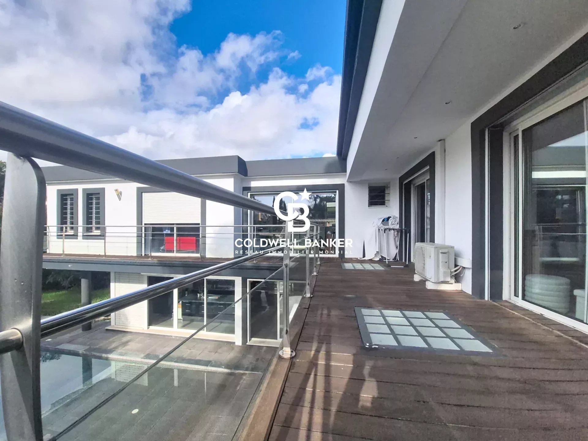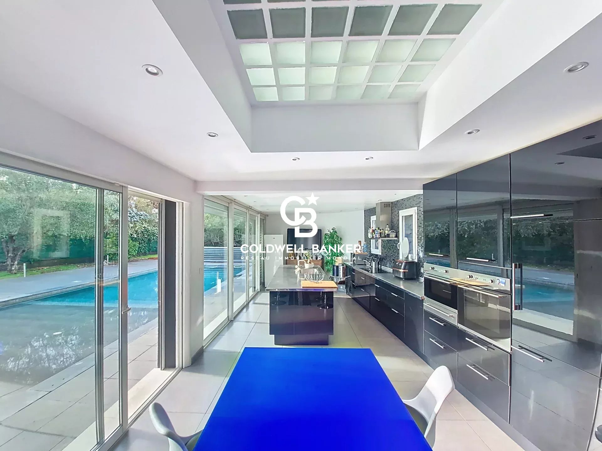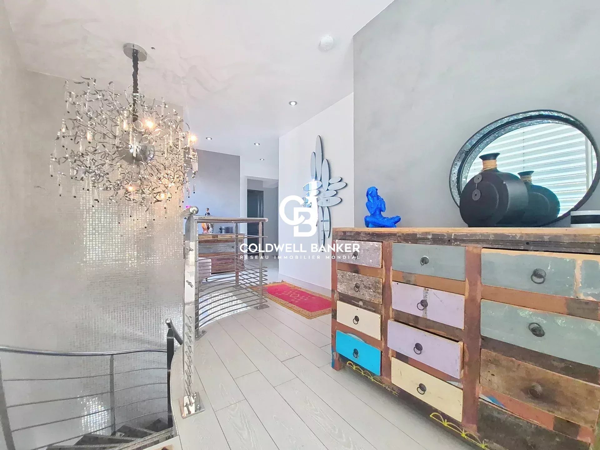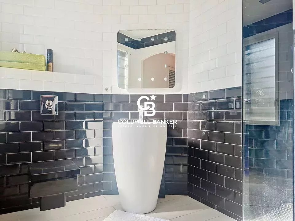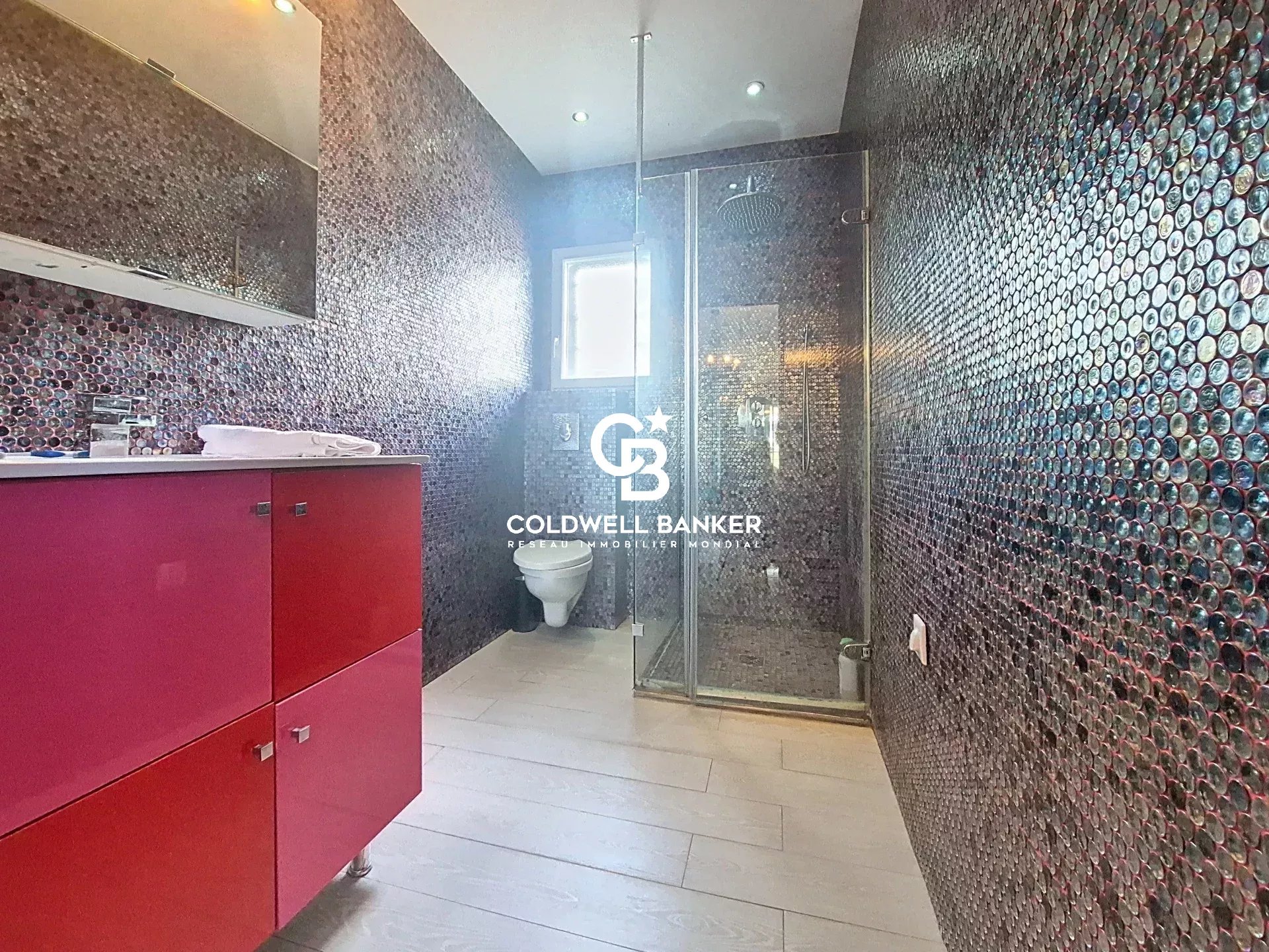 Dans un environnement recherché de Saint-Raphaël, à proximité des commodités, découvrez cette superbe villa d’architecte au style résolument contemporain, entièrement rénovée avec des matériaux de grande qualité et un sens du détail remarquable. Dès l’entrée, la maison séduit par ses volumes généreux et sa luminosité. Le vaste espace de vie accueille un séjour élégant avec cuisine ouverte, sublimé par de larges baies vitrées à galandage offrant une parfaite continuité entre l’intérieur et l’extérieur. L’ensemble s’ouvre directement sur la terrasse et l’espace piscine, créant un lieu de vie idéal pour recevoir. Des toilettes invités complètent ce niveau. La villa propose quatre chambres au total, dont deux véritables suites parentales. La suite principale dispose d’un dressing dans lequel on entre, d’une salle d’eau avec baignoire, et d’un accès direct à la terrasse. Un escalier privatif mène à un grenier occupant toute la surface de la toiture, offrant un potentiel exceptionnel d’aménagement (espace loisirs, salle de sport, etc.). Les autres chambres sont toutes pensées pour le confort : – deux chambres en suite, – une chambre supplémentaire avec salle d’eau indépendante, – plusieurs dressings, – un bureau, idéal pour le télétravail. En sous-sol, la maison dévoile des volumes impressionnants : – une buanderie, – de vastes espaces à aménager selon vos besoins (bureau professionnel, espace bien-être, salle de sport…), parfaitement adaptés à une profession libérale, – ainsi qu’un appartement T3 indépendant de plus de 50 m², idéal pour recevoir, loger la famille ou générer un revenu locatif. À l’extérieur, stationnement aisé de 8 à 9 véhicules. La villa bénéficie en outre d’un excellent classement DPE, gage de confort et de performance énergétique. Un bien rare, au design affirmé, offrant de multiples possibilités d’aménagement, dans un secteur prisé et non excentré de Saint-Raphaël. Pour tous renseignements complémentaires : Valérie MASSON +33 (0)6 46 44 54 11.