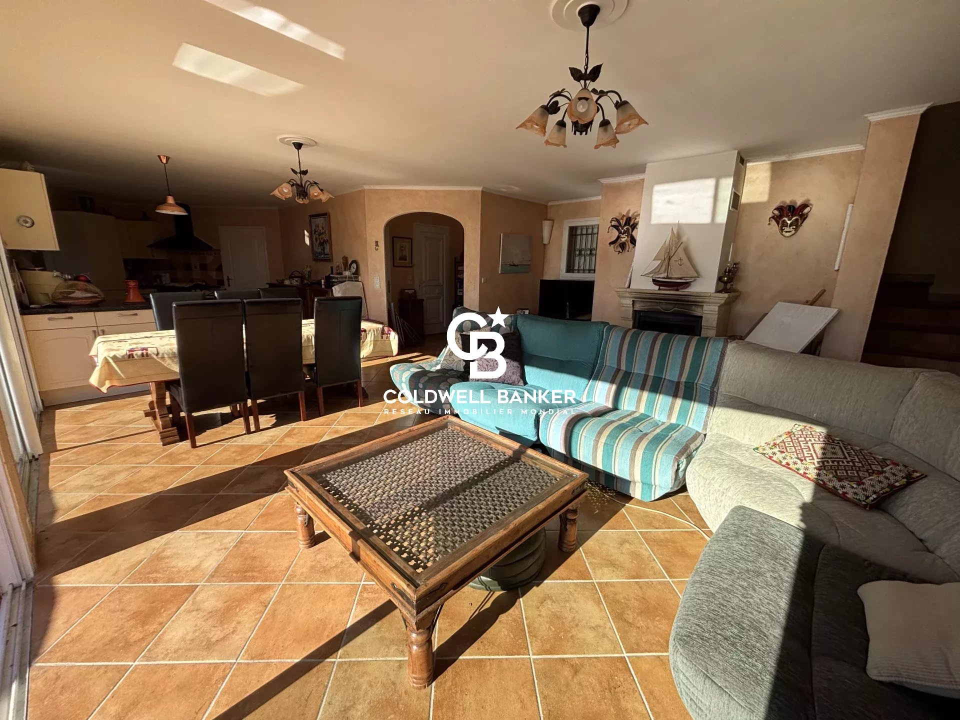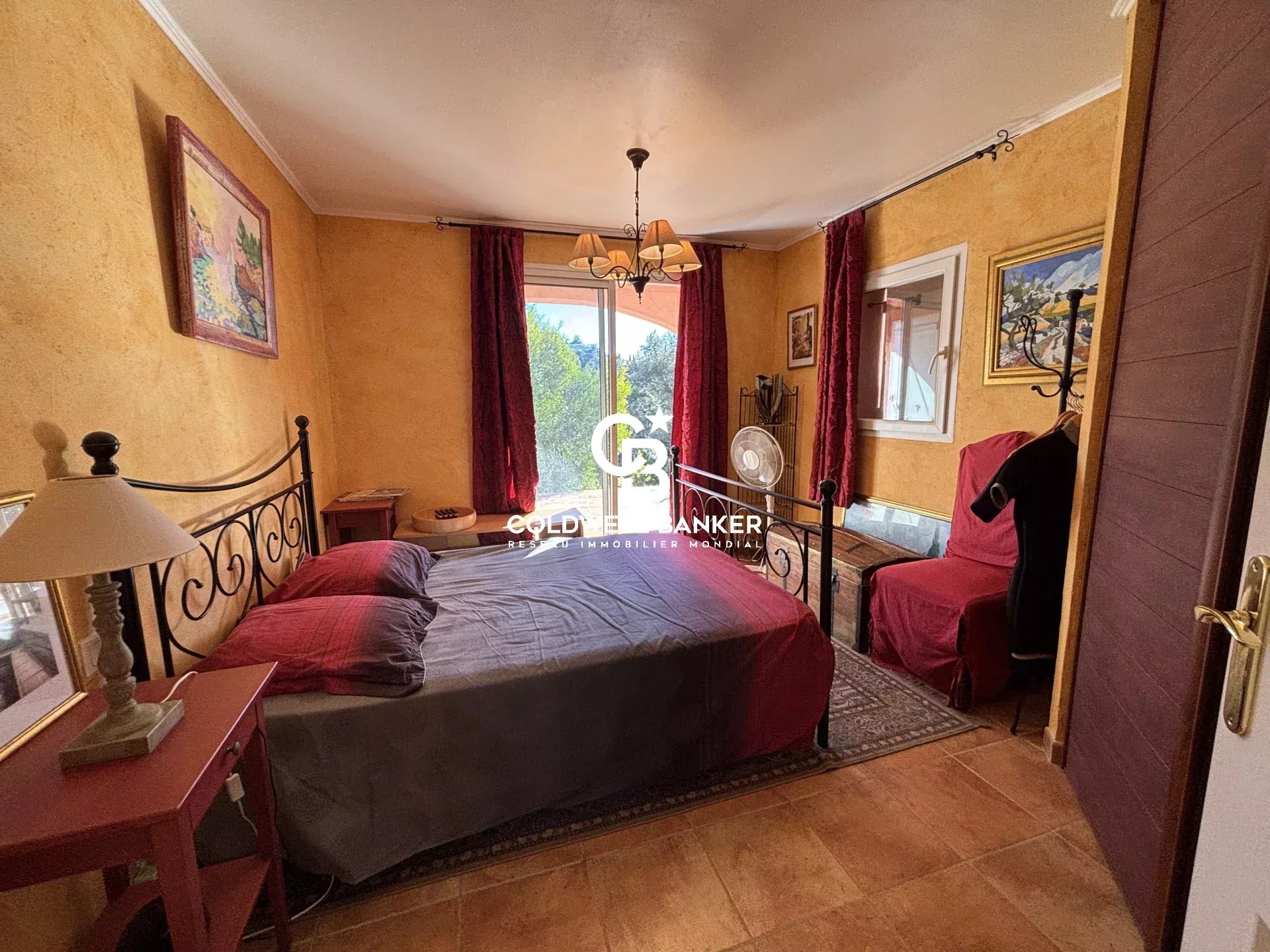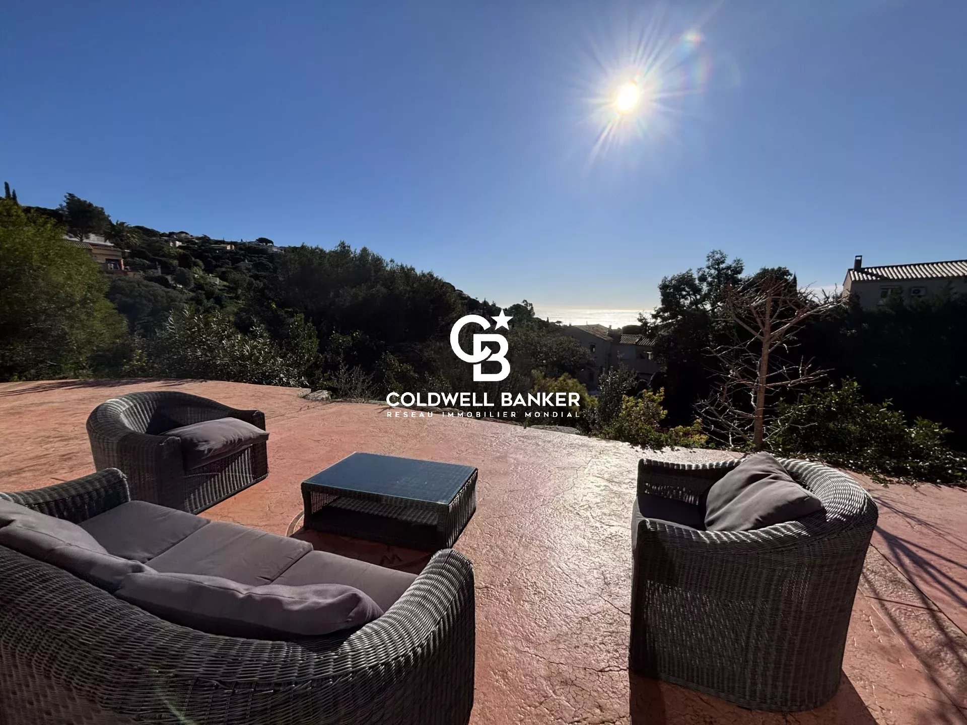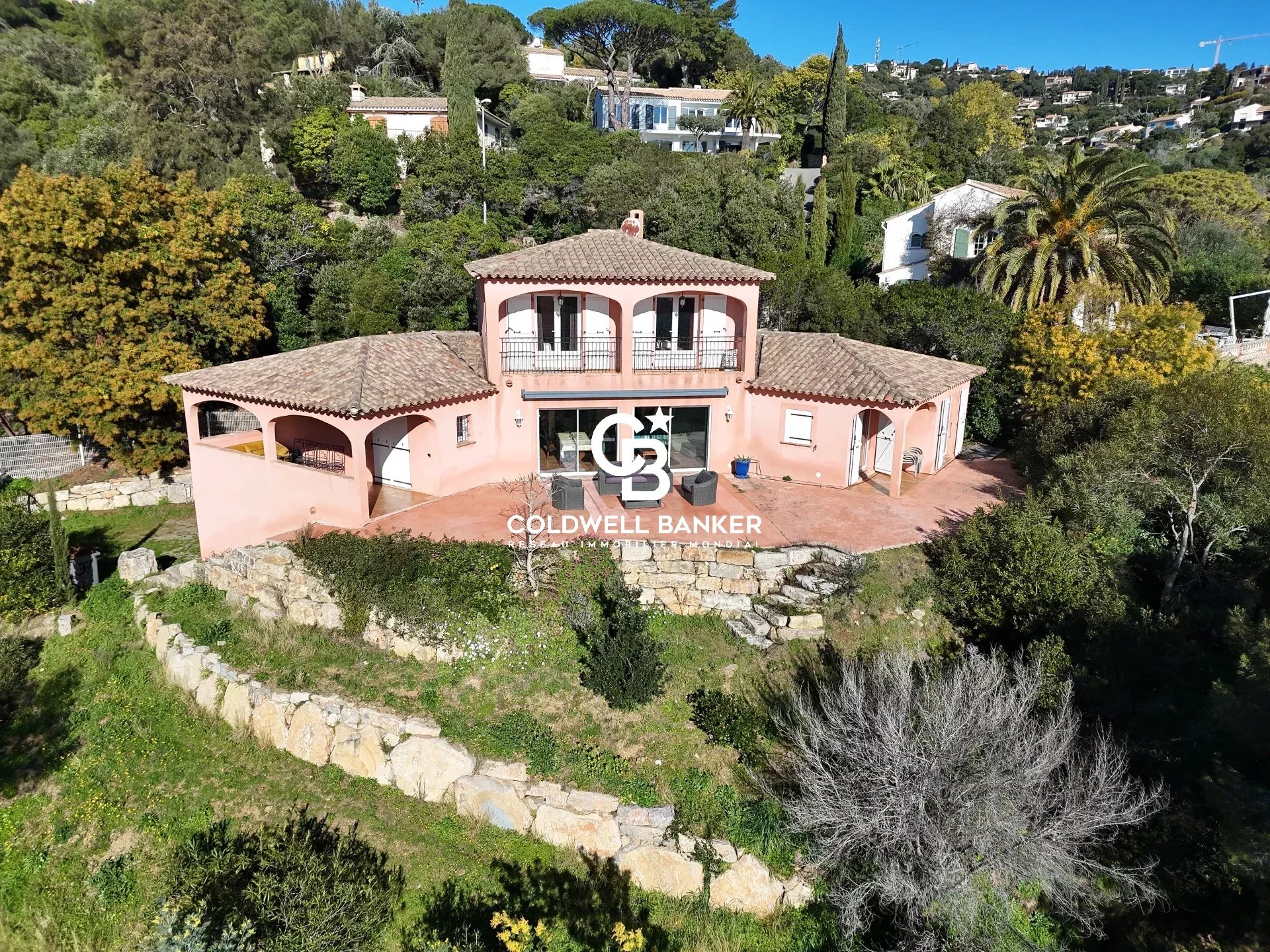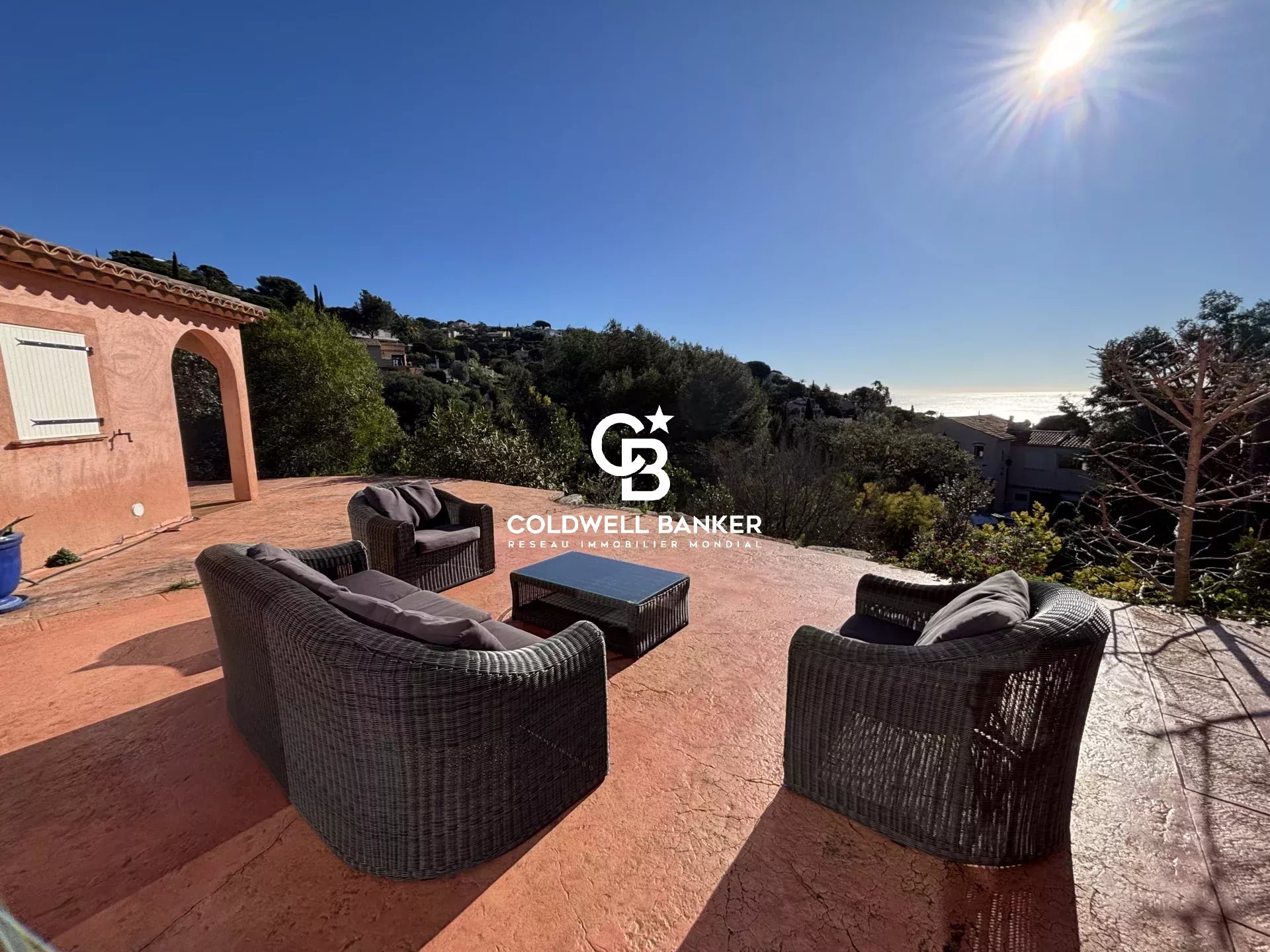 Villa avec vue mer – Les Issambres – À pied des plages et du port Idéalement située dans un secteur prisé des Issambres, à seulement 400 mètres des plages et du port, cette élégante villa construite en 2006 bénéficie d’un environnement calme et privilégié, offrant une agréable vue mer et une exposition Sud-Est lumineuse. Développant 137 m² habitables, la propriété se déploie sur deux niveaux. Rez-de-chaussée : Une entrée ouvre sur un vaste espace de vie comprenant un séjour lumineux de 37 m² avec accès direct aux extérieurs, prolongé par une cuisine ouverte entièrement équipée avec buanderie attenante. Le coin nuit accueille deux chambres partageant une salle d’eau avec douche, baignoire et double vasque. À l’étage : Deux chambres supplémentaires disposent chacune du balcon, offrant une agréable ouverture vers la mer et la végétation environnante, complétées par une salle d’eau indépendante. Extérieurs et prestations : • Terrain de 1 690 m², partiellement clôturé, offrant calme et intimité • Grande terrasse ensoleillée avec potentiel d’aménagement piscine • Vue mer et exposition Sud-Est pour la majorité des chambres • Grand garage pouvant accueillir jusqu’à trois véhicules • Maison construite sur vide sanitaire • Raccordement au tout-à-l’égout • Deux terrasses couvertes • Piscinable Une propriété idéale en résidence principale ou secondaire, alliant proximité mer, volumes généreux et cadre de vie recherché sur la Côte d’Azur.