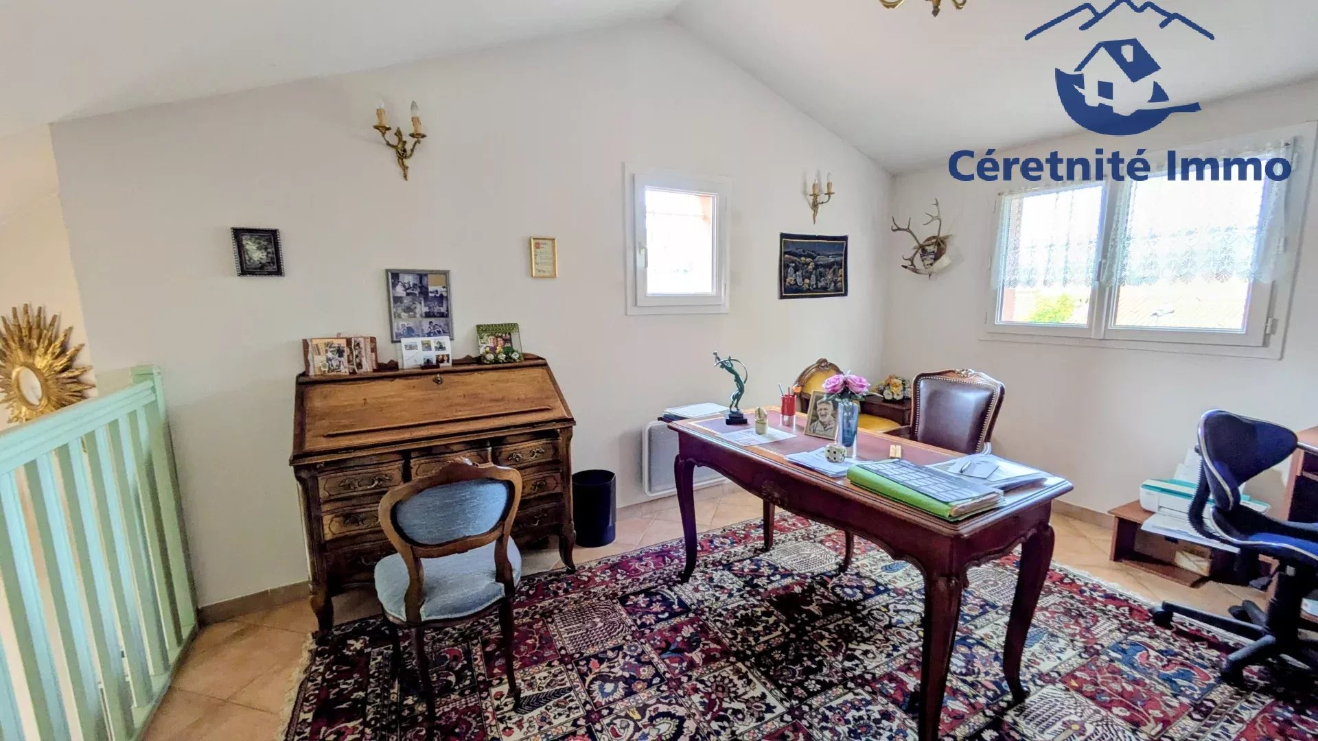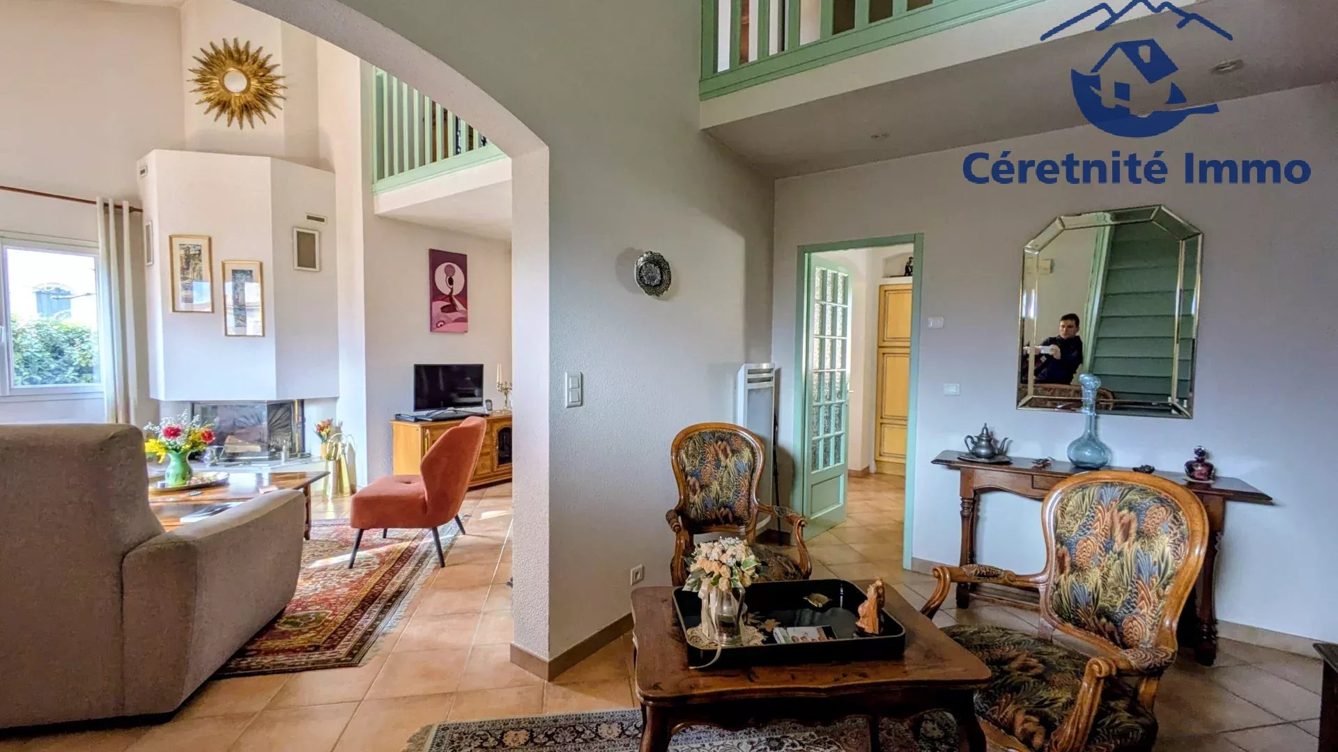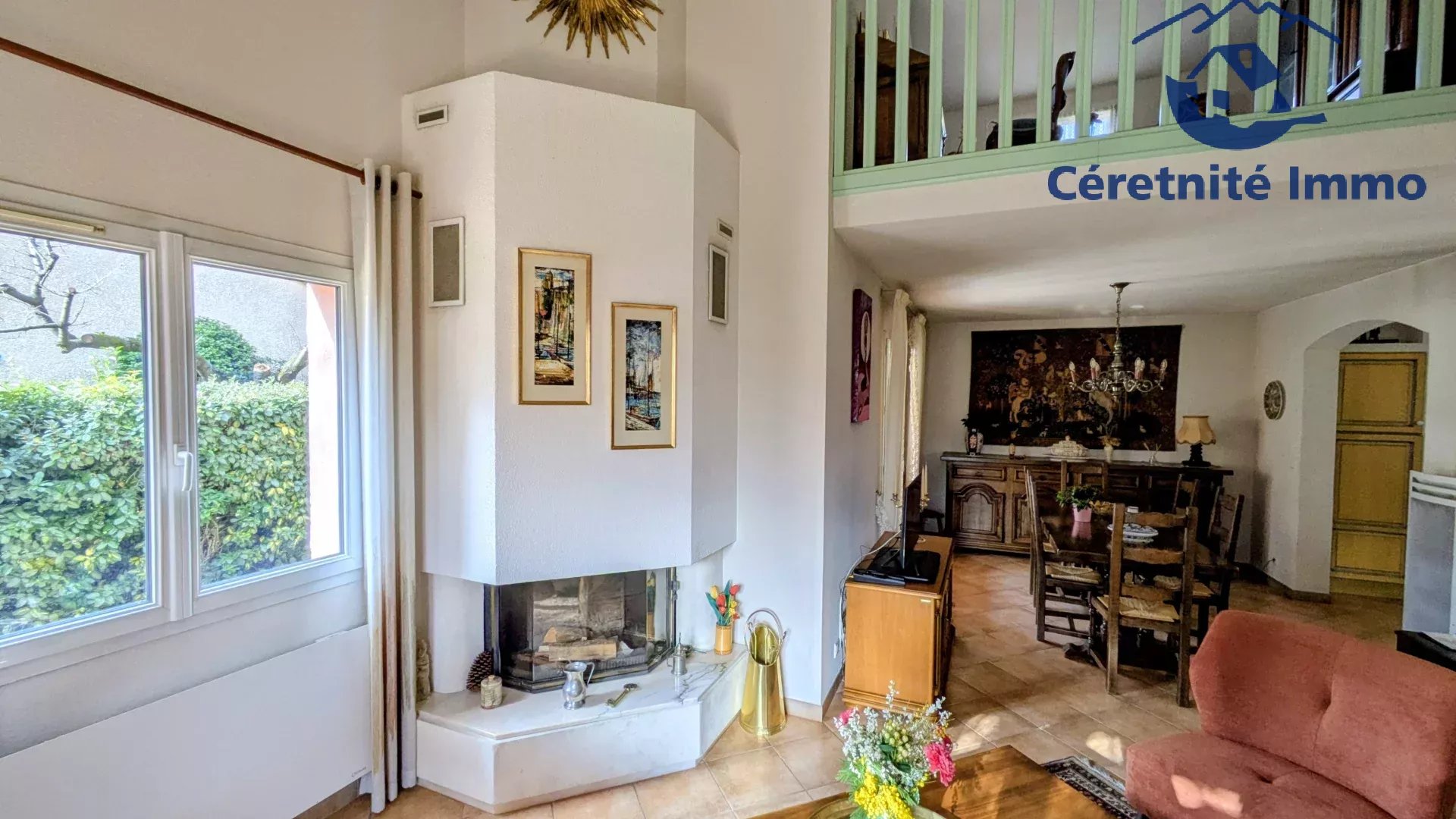 Lumineuse avec son plafond cathédrale dans la pièce de vie, nous pouvons remarquer le beau travail de l'architecte proposant un agencement logique et fonctionnel.