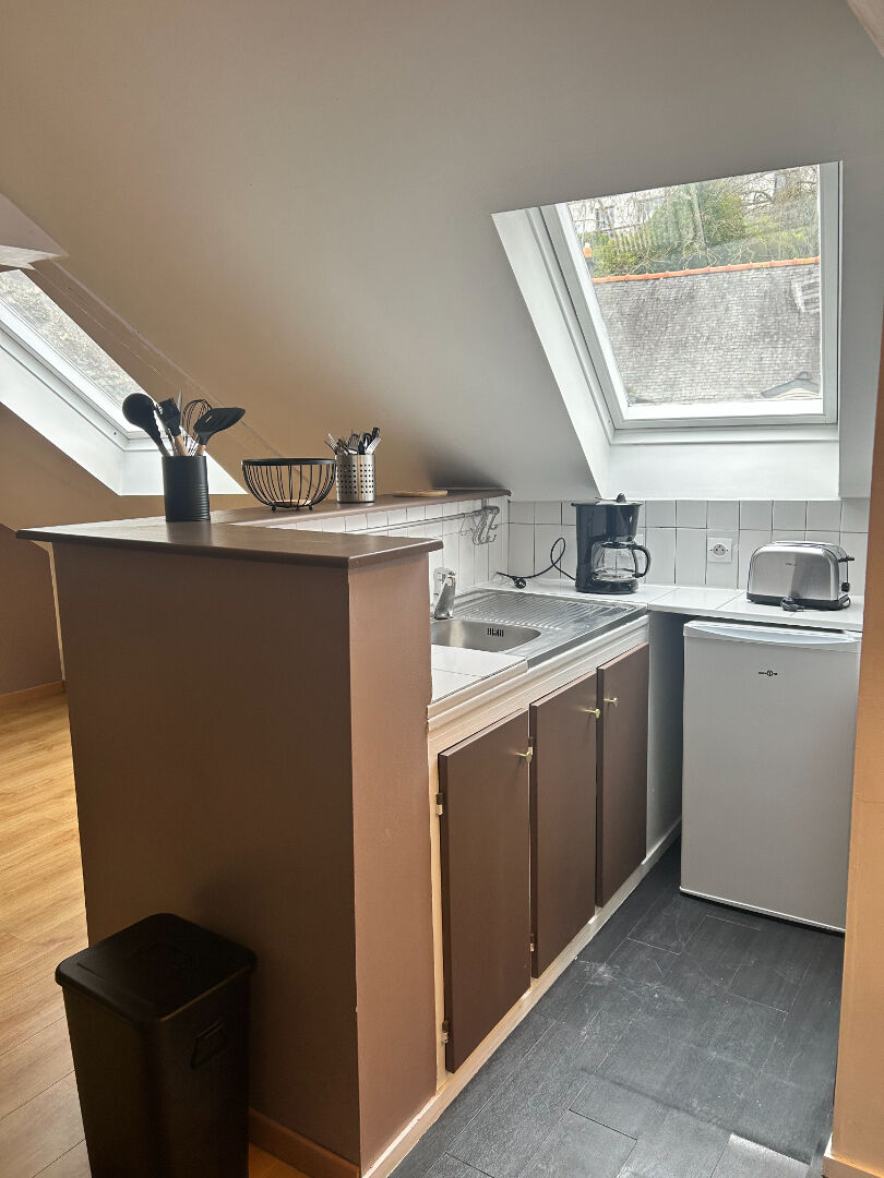 A LOUER SAINT BRIEUC, PROCHE CENTRE, dans une petite copropriété sécurisée, très bel appartement de type 1bis meublé au 3ème et dernier étage comprenant: une entrée, une pièce de vie avec coin cuisine aménagée, un coin nuit séparé, salle d'eau. BEAUCOUP DE CHARME, TRES BON ETAT. Chauffage électrique. Charges comprenant l'eau froide