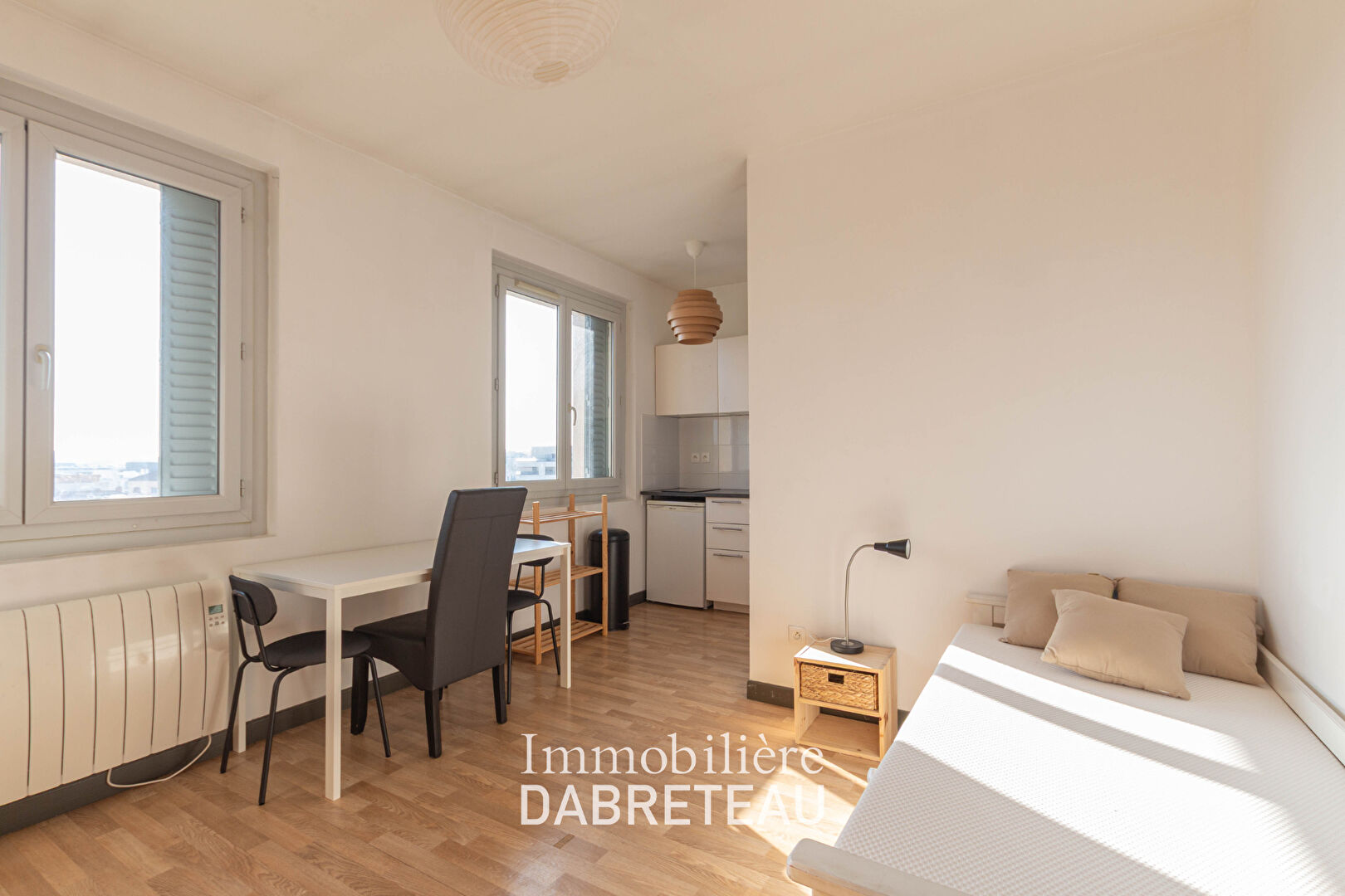 REFERENCE : 151VIENNEGAUCHE Situé dans un secteur agréable de Lyon 8e, ce charmant studio meublé de 17,97 m² saura vous séduire par sa luminosité et son confort. Installé au 5? étage d'un immeuble sans ascenseur, il offre en contrepartie une belle tranquillité ainsi qu'une vue dégagée, sans vis-à-vis, baignée de lumière naturelle tout au long de la journée. Récemment rénové et aménagé avec soin, l'appartement se compose d'une agréable pièce de vie avec cuisine équipée, ainsi que d'une salle d'eau avec WC. Idéalement desservi, le bus C12 se situe au pied de l'immeuble et permet de rejoindre Bellecour en seulement 20 minutes. De nombreux autres transports sont également accessibles à proximité, facilitant tous vos déplacements. Atout rare et particulièrement appréciable : le loyer charges comprises inclut l'ensemble des consommations (chauffage, eau chaude, eau froide, électricité), pour une gestion simple et sans surprise de votre budget. Les risques auxquels ce bien est exposé sont disponibles sur le site Géorisques : www.georisques.gouv.fr _______________ Loyer : 470.00 euros HC/mois dont 90.83 euros de complément de loyer justifié par la qualité du mobilier et le matériel électroménager mis à disposition et pas de vis à vis Provision sur charges : 120.00 euros/mois Honoraires de location : 235.77 euros TTC (dont 54.45 euros pour l'EDL) Dépôt de garantie : 2 mois de loyers hors charges ---------------- Le loyer de référence est de 316.27 euros HC/mois (17.60 euros/m²). Le loyer plafonné est de 379.17 euros HC/mois (21.10 euros/m²). ------------------- Disponible de suite ! Contactez l'agence Immobilière DABRETEAU au 04.37.23.11.50 ou par mail à location@dabreteau.fr