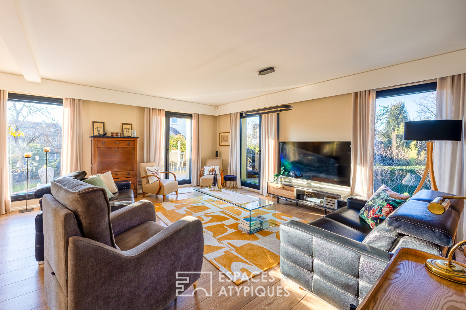 Nichée à Colmar, au coeur du très recherché quartier des maraîchers, cette maison d'architecte des années 1980 développe 160 m² habitables sur une parcelle arborée de 6,5 ares. Entièrement repensée et rénovée, elle séduit par son écriture architecturale affirmée, ses volumes baignés de lumière et ses prestations contemporaines. Le jardin paysager accueille une piscine chauffée 8 x 4 m, plusieurs terrasses ainsi que des espaces extérieurs pensés pour un art de vivre élégant et fonctionnel. Dès l'entrée, le rez-de-chaussée propose une distribution fluide et cohérente. Une chambre avec salle d'eau privative permet un usage indépendant ou l'accueil d'invités. Une buanderie, un atelier avec local technique dédié à la piscine ainsi qu'un garage double en enfilade complètent ce niveau avec un accès direct au jardin. L'escalier elliptique, véritable signature architecturale, conduit au premier étage et structure l'identité du bien. Celui-ci s'ouvre sur un vaste séjour d'environ 50 m², traversant et particulièrement lumineux grâce à ses huit baies vitrées orientées est, sud et ouest. Les volumes s'articulent autour de deux terrasses, dont une au sud équipée d'un store électrique. La cuisine semi-fermée, entièrement équipée et réalisée sur mesure en 2023, s'accompagne d'un cellier. Le second étage est dédié à l'espace nuit avec une suite parentale disposant d'un dressing, une salle d'eau avec douche à l'italienne et double vasque, deux chambres supplémentaires et un accès aux combles. Les espaces extérieurs prolongent harmonieusement les pièces de vie. La piscine chauffée par pompe à chaleur, dotée d'une régulation automatique du chlore et du pH, est entourée d'une terrasse carrelée d'environ 50 m². Le jardin bénéficie d'un arrosage automatique. Un chalet indépendant de 12 m² permet le stockage du matériel de jardinage, tandis que deux places de stationnement extérieures et un carport facilitent le quotidien. A proximité immédiate, le quartier des maraîchers offre un cadre résidentiel prisé, calme et verdoyant, tout en restant proche des écoles, commerces et axes principaux de Colmar. Alliance réussie entre architecture singulière, rénovation récente et performances énergétiques remarquables grâce à une isolation intérieure complète, des menuiseries double vitrage récentes et un chauffage au sol par géothermie, cette maison incarne un bien immobilier atypique et rare sur le marché colmarien. Commerces à 5 min à pied, 2 min à vélo Ecoles à 10 min à pied Bus à proximité immédiate Gare à 2km Autoroute à 2km Aéroport de Bâle/Mulhouse à 65km CLASSE ENERGIE : B / CLASSE CLIMAT : A Montant moyen estimé des dépenses annuelles d'énergie pour un usage standard, établi à partir des prix moyens des énergies indexés sur les années 2021, 2022, 2023 (abonnements compris) : entre 1620 et 2250 euros Contact : Marc 07.44.88.95.17 Marc CALOGERO (EI) Agent Commercial - Numéro RSAC : 982590853 - Colmar.