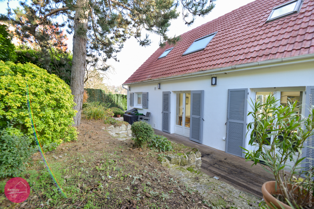 Située sur les coteaux de la Frette sur seine, proche toutes commodités, cette propriété de 7 pièces vous offre un séjour de 48 m² avec cheminée donnant sur terrasse exposée plein sud sans vis à vis, une cuisine attenante aménagée et équipée de standing, une chambre ou bureau, des toilettes. Au premier étage : une chambre avec dressing, une suite parentale, une salle d'eau. Un studio indépendant de presque 36 m², comprenant une belle pièce à vivre avec rangements donnant sur une cuisine équipée et aménagée, une terrasse. Deux garages, beau jardin de plus de 500 m². Surface au sol utile de 202 m² . Bien rare