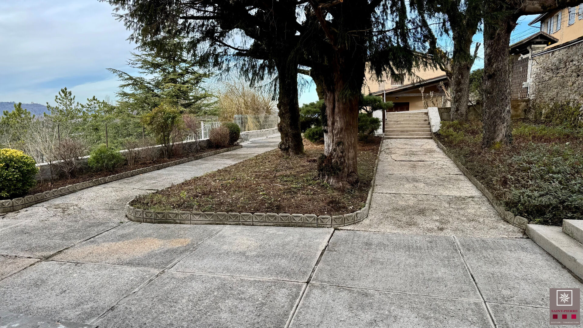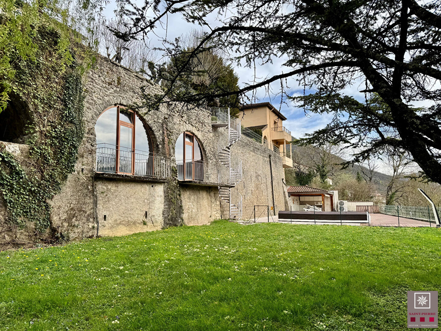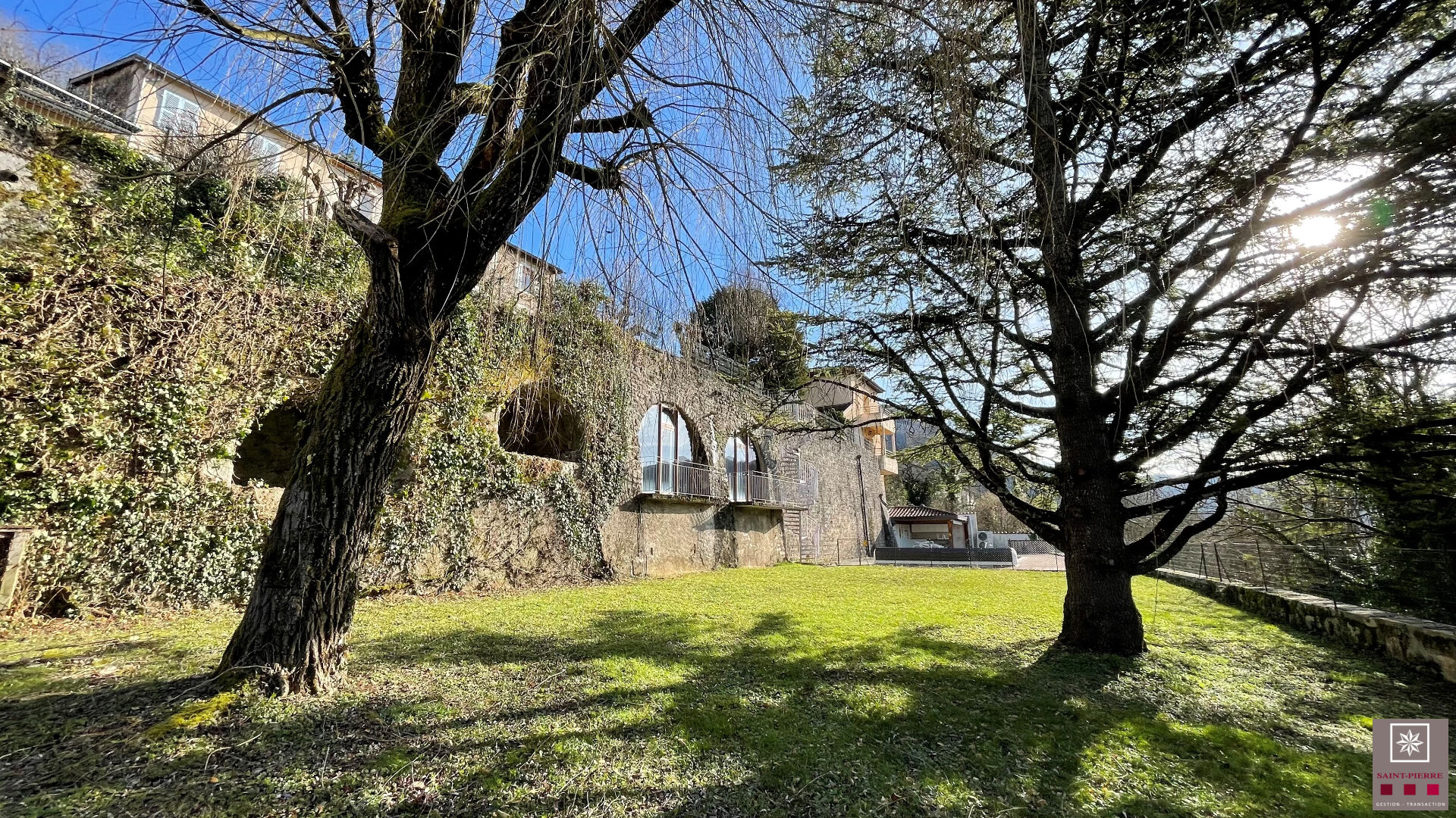 Sur les hauteurs du village de Saint-Germain à 5 minutes du centre d' Ambérieu en Bugey et à 15 minutes d' Ambronay, célèbre pour ses festivals de musique : Un ensemble immobilier rare, édifié sur un terrain de plus de 9 000 M² avec parcs et bois, composé de 2 maisons dont une bâtisse dominant les monts du Bugey et une deuxième maison à rénover, pour la famille ou la location saisonnière : en effet, la proximité avec le château de Saint-Germain, les chemins de randonnées vers le Lac Bleu et le festival de musique d' Ambronay, permettent aisément d'envisager un projet d'hébergement saisonnier, dans cette deuxième maison située à l'extrémité du parc qui bénéficie d'une entrée privative indépendante. La demeure principale, sur cave, est élevée sur un niveau et bénéficie d'une grande véranda donnant sur le jardin d'agrément. Au Sud-Ouest, deux terrasses surplombent la bâtisse : au Rez de Chaussée depuis le séjour et à l'étage depuis la chambre principale, permettant de profiter de la vue magnifique sur les monts du Bugey. Un aménagement sur deux niveaux, composés de 2 Chambres plus 1 bureau, 1 séjour cheminée, une salle à manger dans le prolongement de la cuisine, une arrière cuisine et une lingerie. La maison bénéficie de l'installation récente d'une climatisation sous pompe à chaleur réversible. La maison secondaire est composée de deux pièces principales plus cuisine, avec accès de plain-pied sur le jardin, ainsi qu'un préau permettant de garer 2 voitures plus une terrasse barbecue avec vue sur les monts du Bugey ; un grand garage double en sous-sol. Une particularité très rare complète ce bien : 2 salles voutées historiquement creusées dans la pierre surplombes le parc face aux monts du Bugey ; Un espace salle de sport est déjà aménagé et pourra évoluer vers un projet de cave à vin ou tout autre magnifique projet convivial. Sans oublier la grande piscine chauffée, avec son solarium et son pool house. 995 000 euros Honoraires inclus à la charge du vendeur. Un bien rare à visiter rapidement, contacter Christian MAILLET Régie Saint-Pierre Lyon