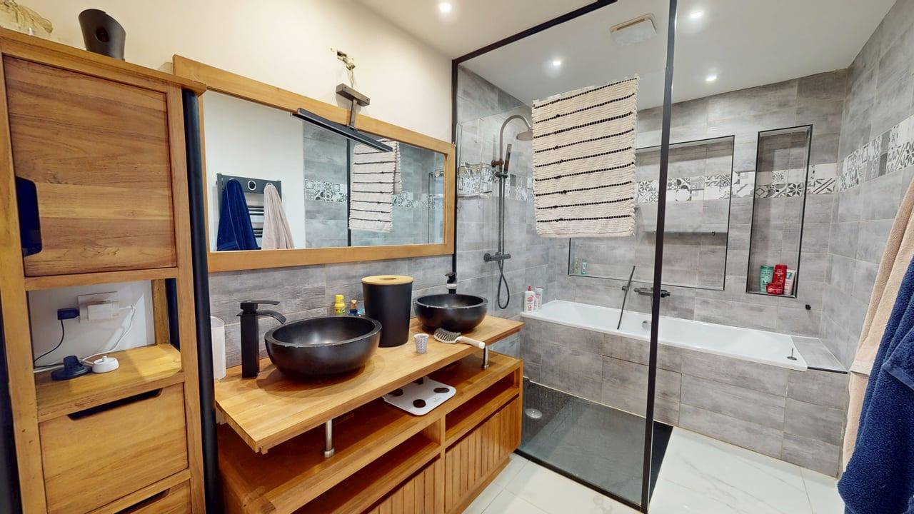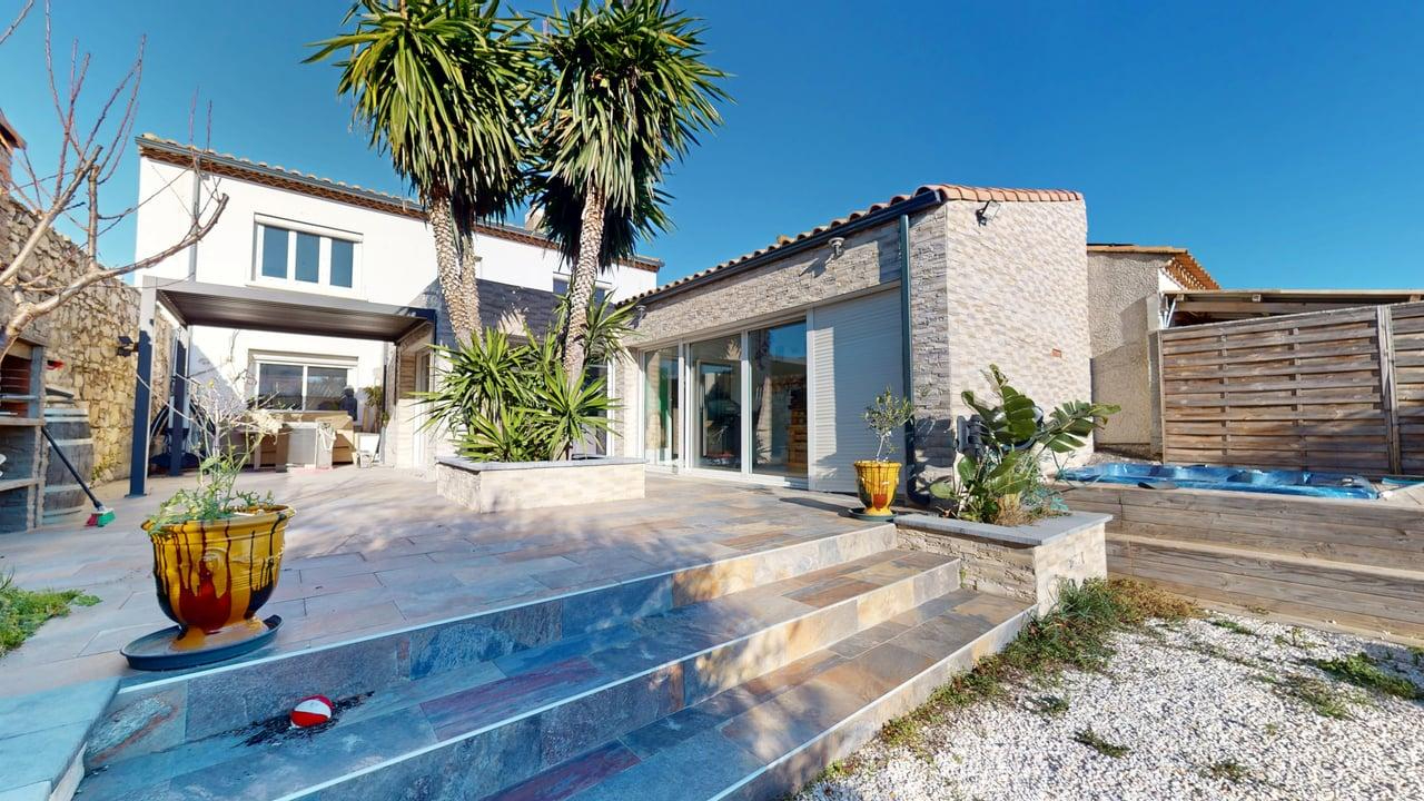 En exclusivité à Sigean, découvrez cette propriété rare composée de deux logements indépendants, idéale pour un projet familial ou un investissement locatif, à proximité immédiate de la mer. Dès l'arrivée, une grande cour privative permet le stationnement de plusieurs véhicules et est sécurisée par un portail automatique. Au rez-de-chaussée, une maison de plain-pied rénovée d'environ 127 m² habitables offre une entrée, trois chambres, une salle de bain avec douche, un WC indépendant, ainsi qu'une pièce de vie lumineuse d'environ 52 m² avec cuisine aménagée et équipée. De larges baies vitrées ouvrent sur une terrasse et un jardin avec piscine enterrée. Une véranda avec cellier complète ce niveau. A l'étage, un appartement indépendant avec balcon se compose d'une entrée, d'une cuisine indépendante, d'un séjour, de deux chambres et d'une salle de bain avec WC. Chaque logement bénéficie de prestations confortables : double vitrage PVC, volets roulants électriques, climatisation réversible. Cette configuration offre une grande flexibilité : habitation principale + logement familial, résidence avec revenus locatifs, ou investissement patrimonial dans un secteur recherché proche du littoral. Un bien rare sur le secteur, avec visite virtuelle disponible pour chaque logement. Contactez-nous dès maintenant pour découvrir tout le potentiel de cette propriété en exclusivité.