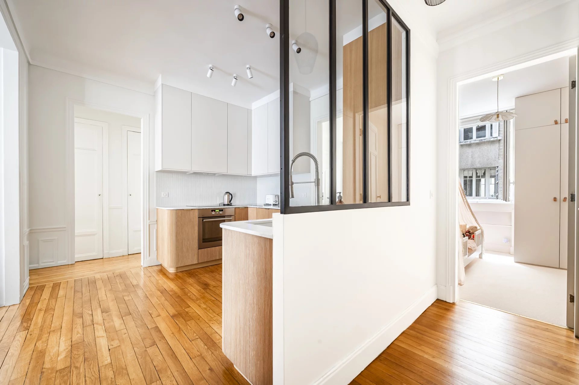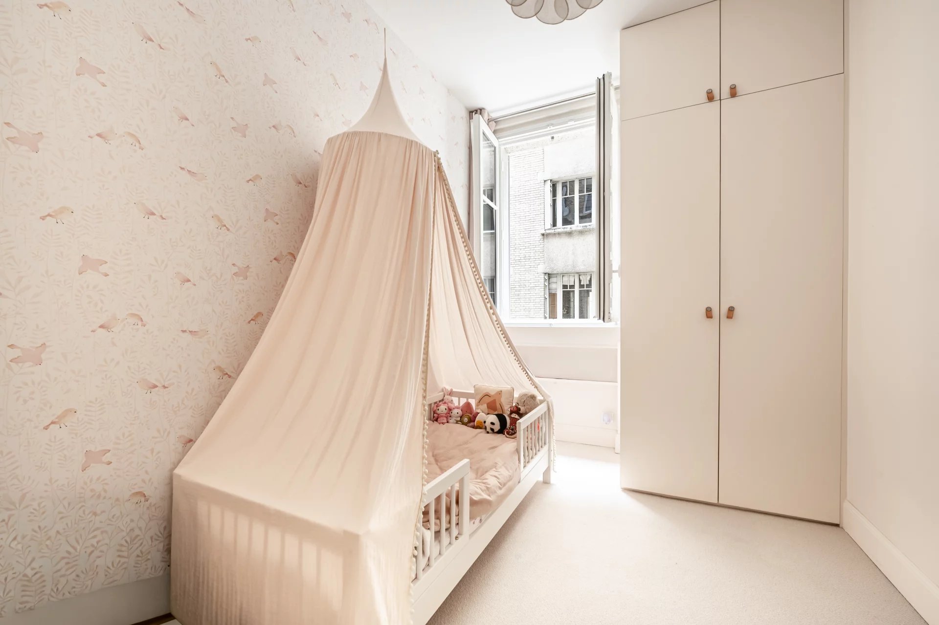 Dans un très bel immeuble ancien, récemment ravalé, aux belles parties communes, un appartement familial avec ascenseur, d'une superficie de 99 m2.