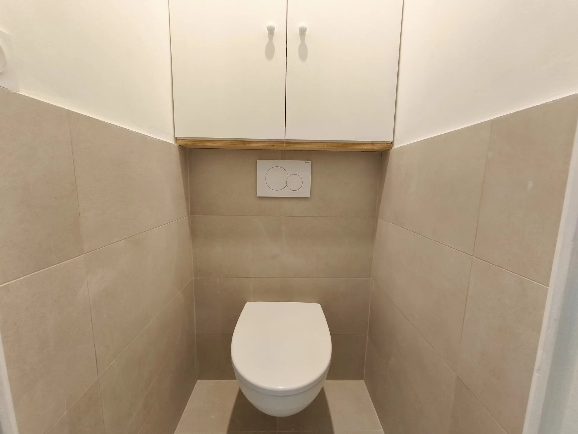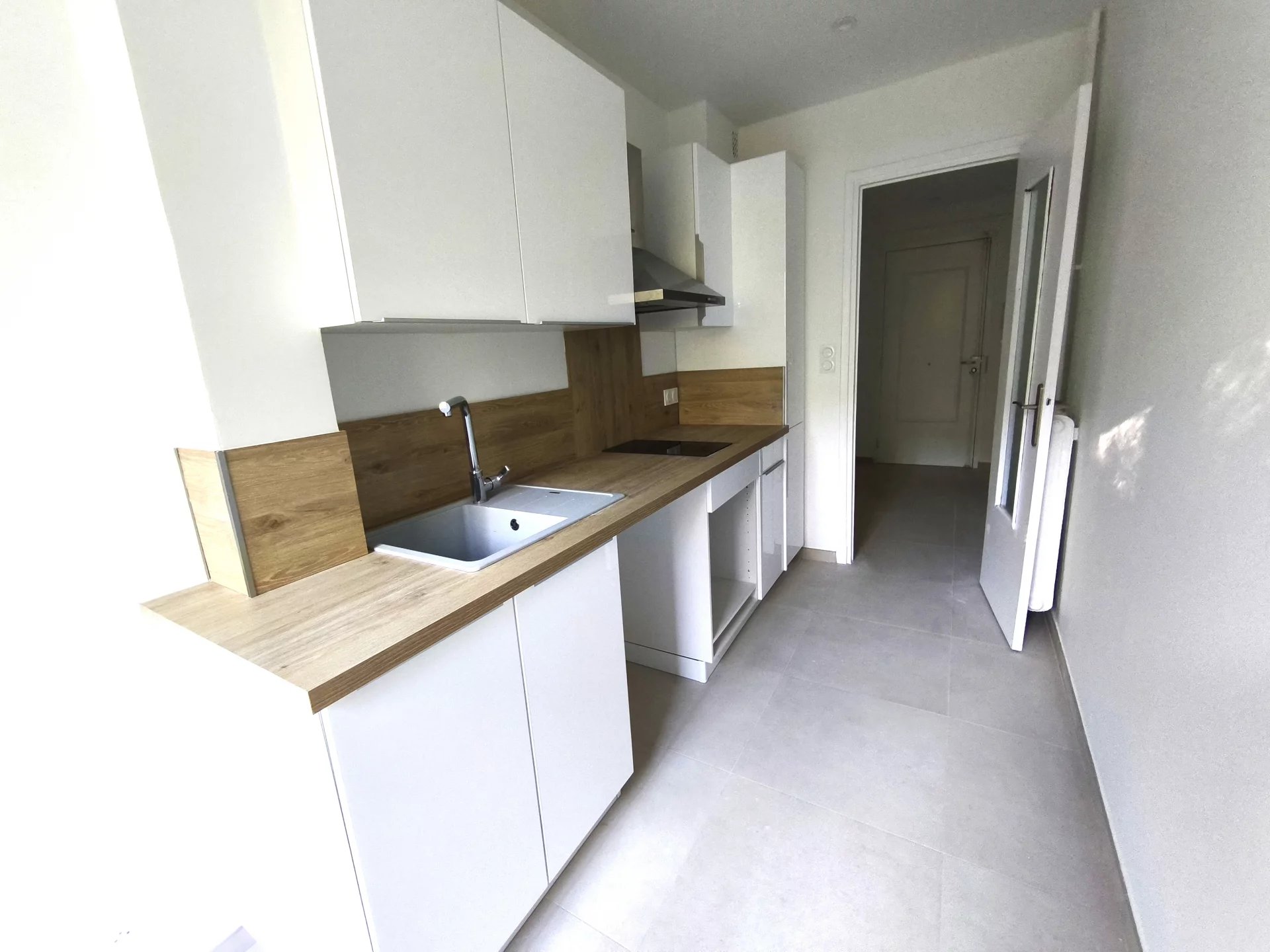 Dans un immeuble bien tenu des années 1965, au 2ème étage avec ascenseur. Grand F1 de 32m² entièrement rénové à neuf donnant sur un balcon de 3.5m² avec une vue verdure très agréable donnant dans une rue peu passante.