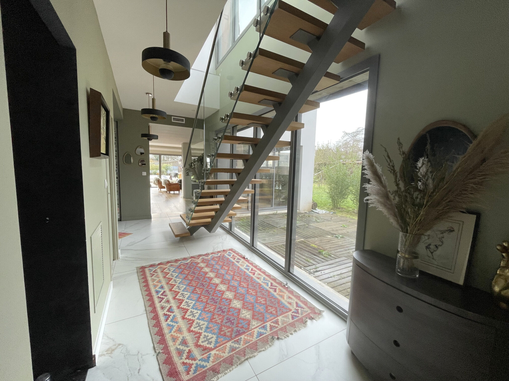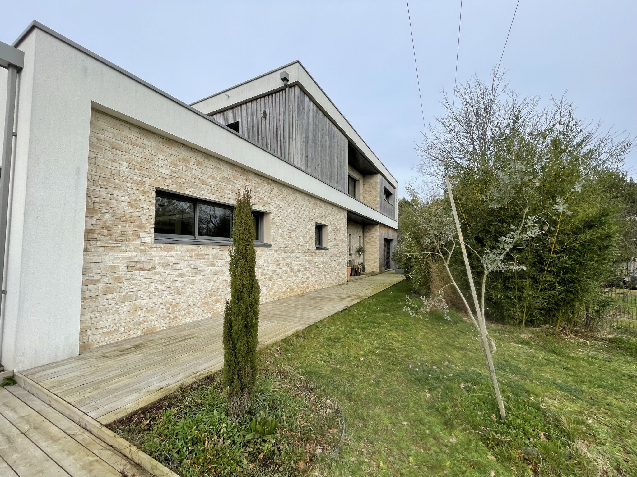 Exclusivité Fontaine immobilier ! Découvrez cette magnifique maison contemporaine à la décoration soignée, nichée dans un environnement calme et verdoyant avec sa piscine privée exposée plein sud pour profiter de moments de détente en famille. Cette maison exceptionnelle de par son architecture épurée, de ses matériaux de qualité et de ses equipements modernes, est composée au rez-de-chaussée d'une entrée avec placards, d'un salon séjour de plus de 47 m² ouvert sur une cuisine aménagée équipée haut de gamme donnant sur une terrasse en bois, d'une arrière cuisine, d'une spacieuse suite parentale avec sa chambre, sa salle de bain et son dressing, wc. Le premier étage vous accueille avec sa grande mezzanine baignée de lumière idéale pour un espace bureau ou détente. Elle dessert 3 belles chambres dont une avec terrasse, une salle de bain, et un wc. Le jardin soigné et arboré de 1600 m² avec une vue imprenable sur la campagne, doté d'un garage et d'un local technique vient parfaire ce bien d'exception. N'hésitez pas à nous contacter afin de découvrir cette magnifique maison, conçue pour allier espace, lumière et confort. Idéale pour une famille, ou pour ceux qui cherchent un havre de paix. Les informations sur les risques auxquels ce bien est exposé sont disponibles sur le site Géorisques : www.georisques.gouv.fr.Informations LOI ALUR :