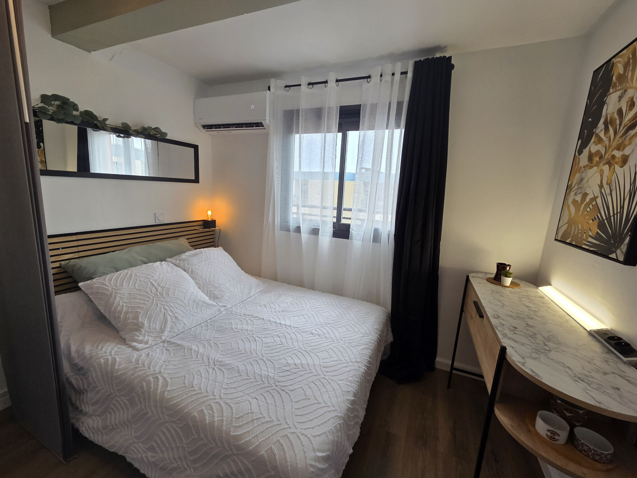 L'ensemble du mobilier est compris. L'appartement comprend de nombreux rangements pratiques et il est décoré avec beaucoup de goût. Il est climatisé et la sensation d'espace est certaine. Assurément un produit de qualité qui saura satisfaire les plus exigeants.