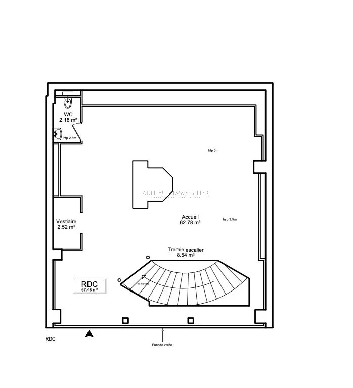 Rez-de-chaussée lumineux avec grande vitrine