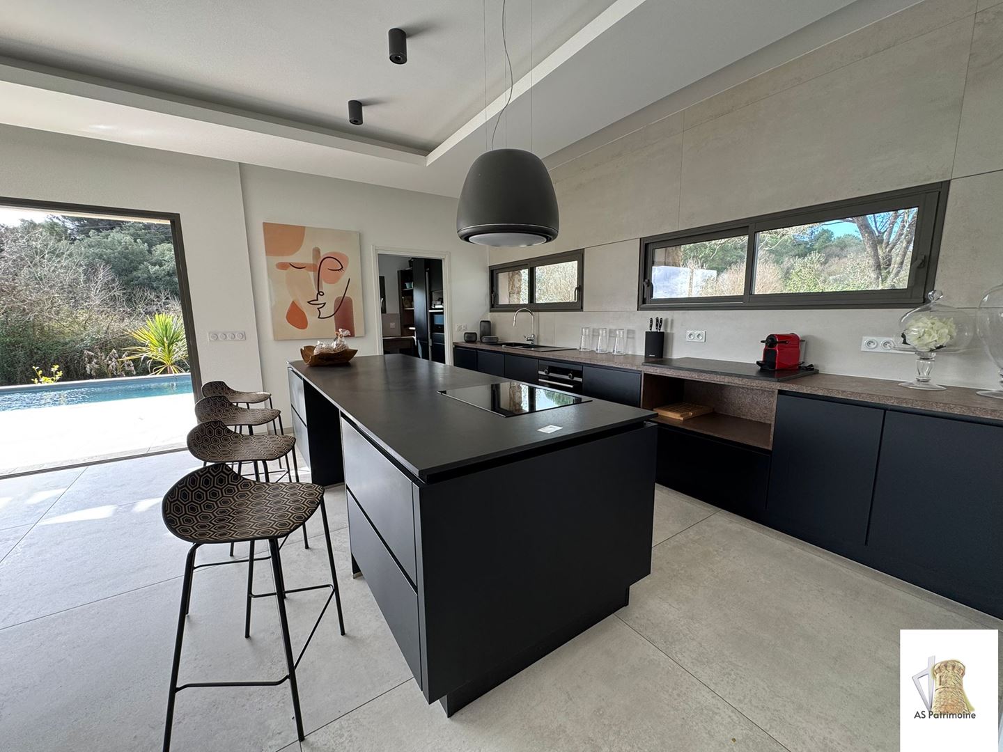 La cuisine haut de gamme, entièrement équipée, allie design et fonctionnalité, et dispose dune buanderie attenante discrète et pratique.