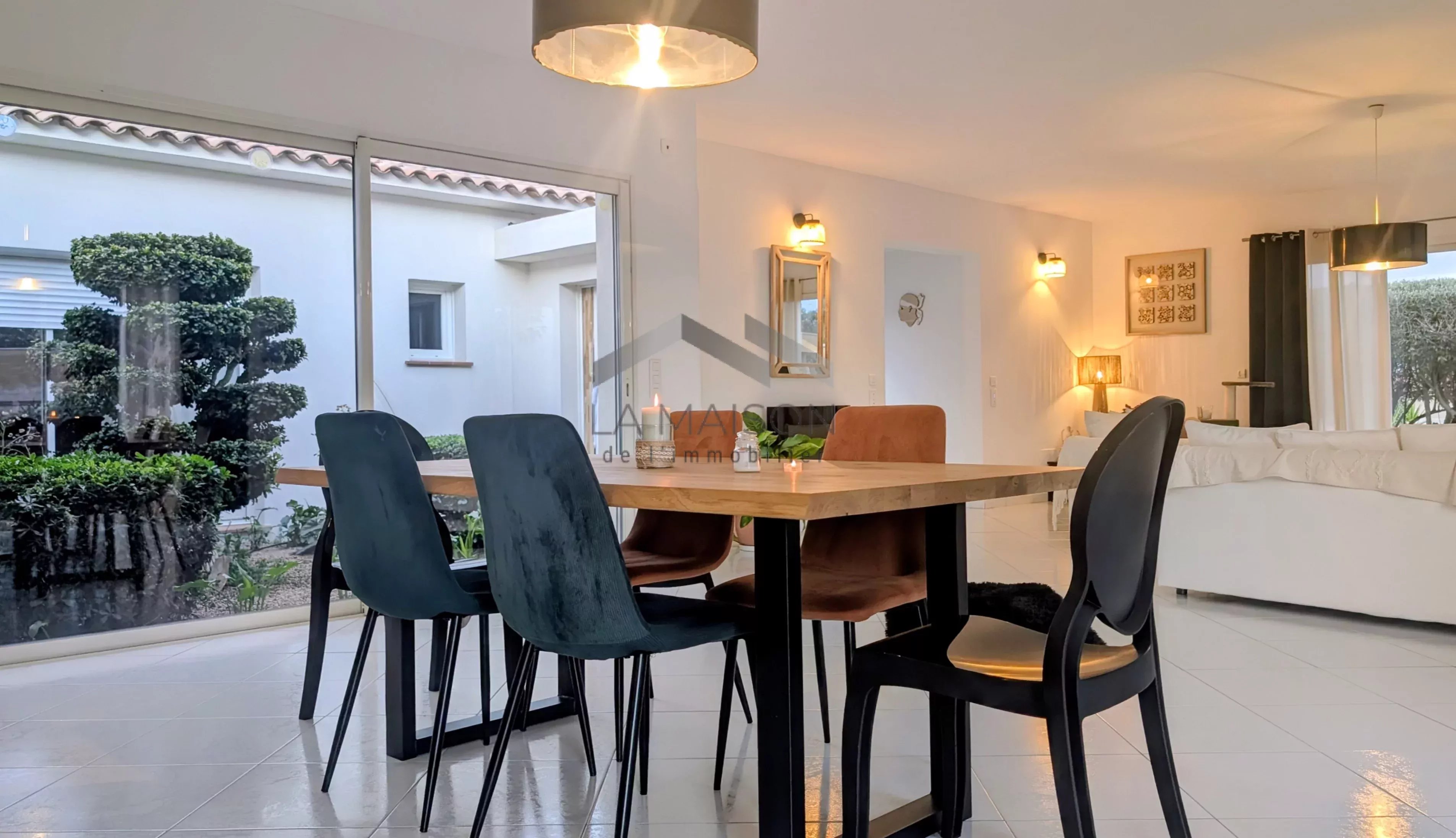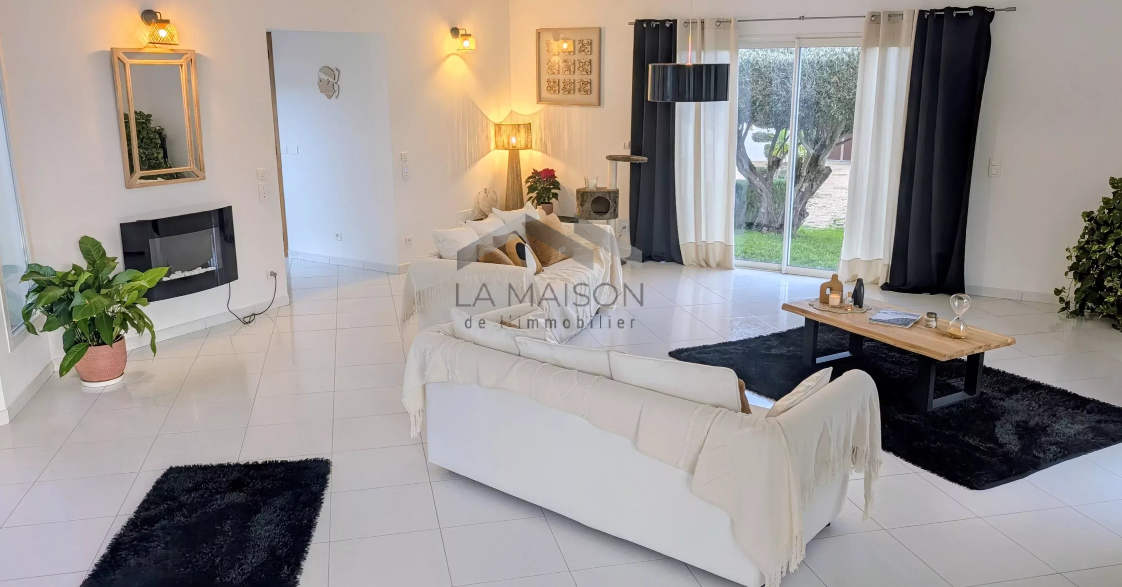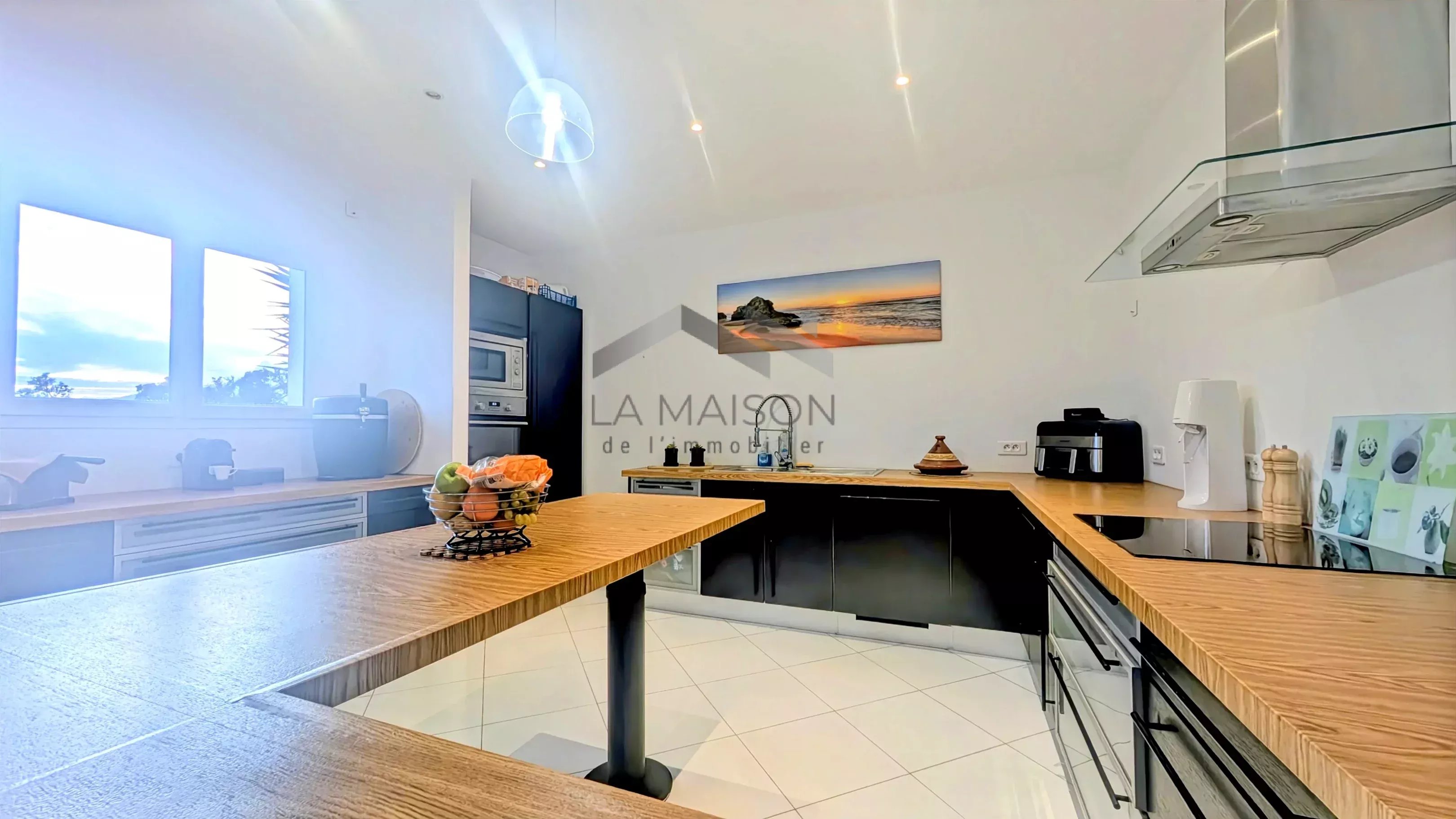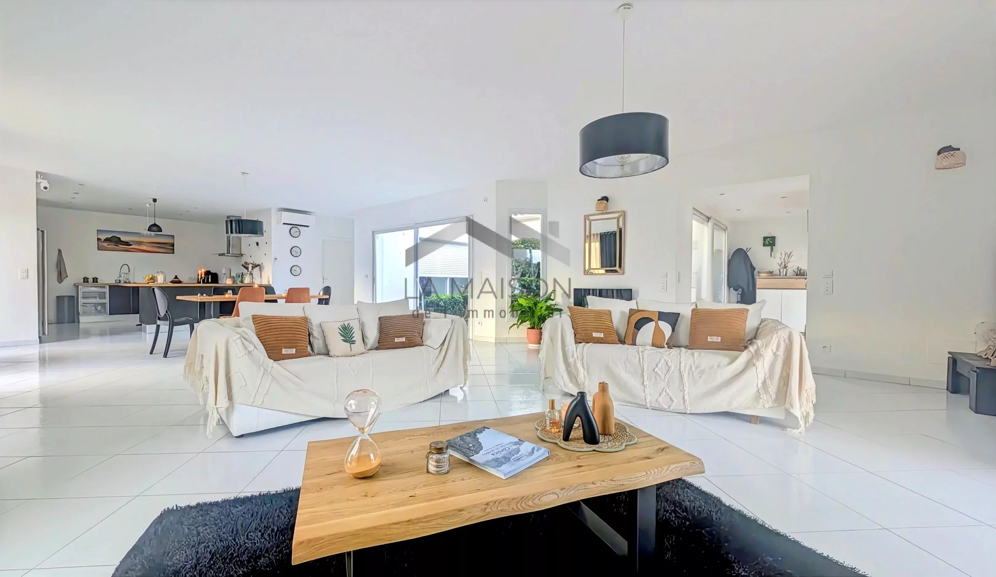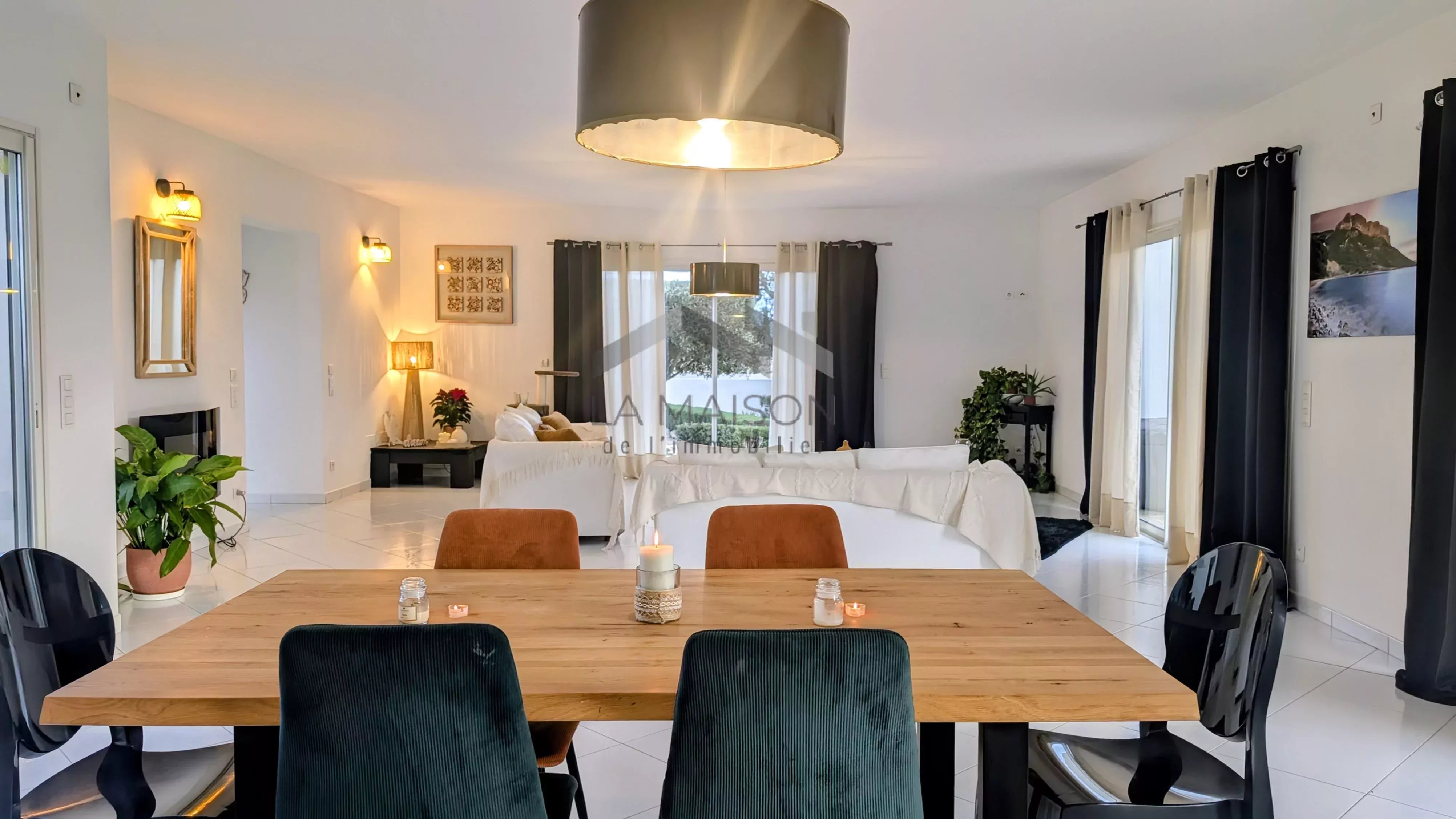 En Corse-du-Sud, sur la commune de Lecci, dans le quartier de Mora Dell'Onda, situé à 10 km au nord de Porto-Vecchio et à 5 minutes des superbes plages de Saint-Cyprien, Cala Rossa et Benedettu, au sein d’un environnement calme mais proche de toutes les commodités, une propriété d’architecture contemporaine construite en 2008 vous attend. Édifiée de plain-pied avec des matériaux et prestations de grande qualité sur un terrain de 3 661 m² entièrement clos, elle offre une surface habitable d'environ 169 m². Ce bien est composé de : - Une large entrée donnant sur un double espace de vie séjour / salle à manger / cuisine entièrement ouvert, - Un cellier, - Des toilettes invités, - Un dégagement menant à l’espace nuit comprenant 2 chambres avec dressing, - Une salle d'eau commune, - Une chambre parentale avec dressing et salle d'eau, - Un garage d’environ 18 m² attenant à la maison, - Un garage de 49 m² indépendant. Le terrain d'une superficie de 3 661 m² est entièrement constructible et permettrait la réalisation de nouvelles constructions ou un détachement parcellaire en vue d'une éventuelle vente.