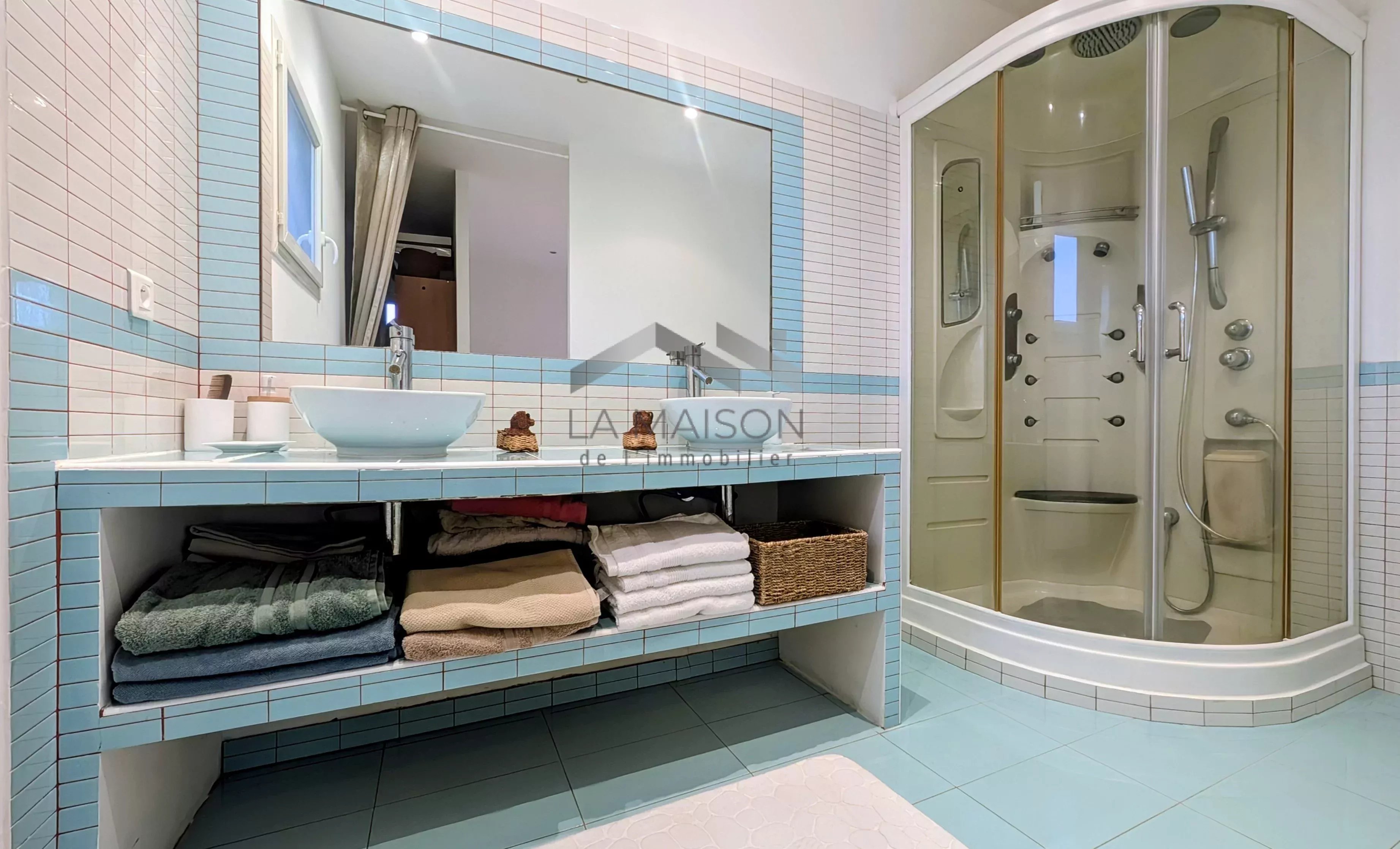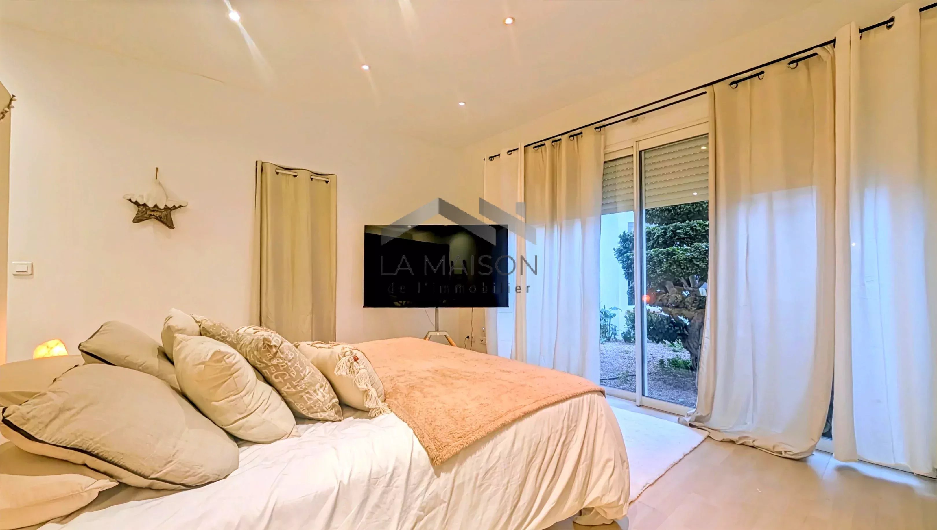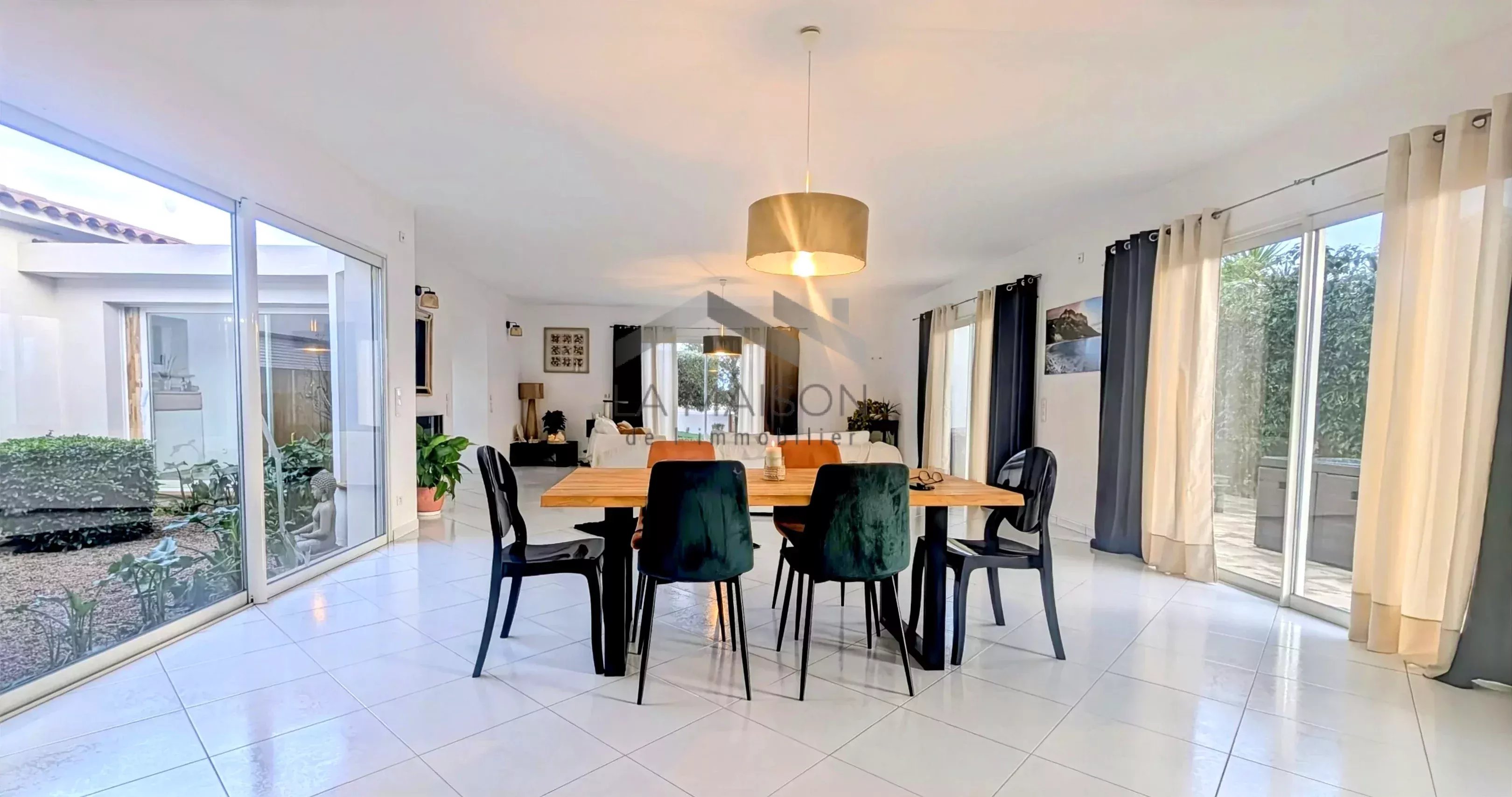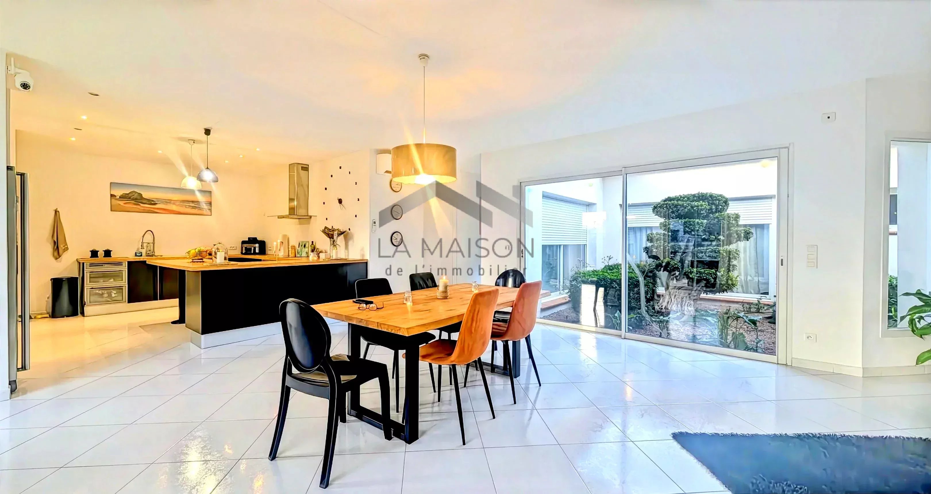 En Corse-du-Sud, sur la commune de Lecci, dans le quartier de Mora Dell'Onda, situé à 10 km au nord de Porto-Vecchio et à 5 minutes des superbes plages de Saint-Cyprien, Cala Rossa et Benedettu, au sein d’un environnement calme mais proche de toutes les commodités, une propriété d’architecture contemporaine construite en 2008 vous attend. Édifiée de plain-pied avec des matériaux et prestations de grande qualité sur un terrain de 3 661 m² entièrement clos, elle offre une surface habitable d'environ 169 m². Ce bien est composé de : - Une large entrée donnant sur un double espace de vie séjour / salle à manger / cuisine entièrement ouvert, - Un cellier, - Des toilettes invités, - Un dégagement menant à l’espace nuit comprenant 2 chambres avec dressing, - Une salle d'eau commune, - Une chambre parentale avec dressing et salle d'eau, - Un garage d’environ 18 m² attenant à la maison, - Un garage de 49 m² indépendant. Le terrain d'une superficie de 3 661 m² est entièrement constructible et permettrait la réalisation de nouvelles constructions ou un détachement parcellaire en vue d'une éventuelle vente.