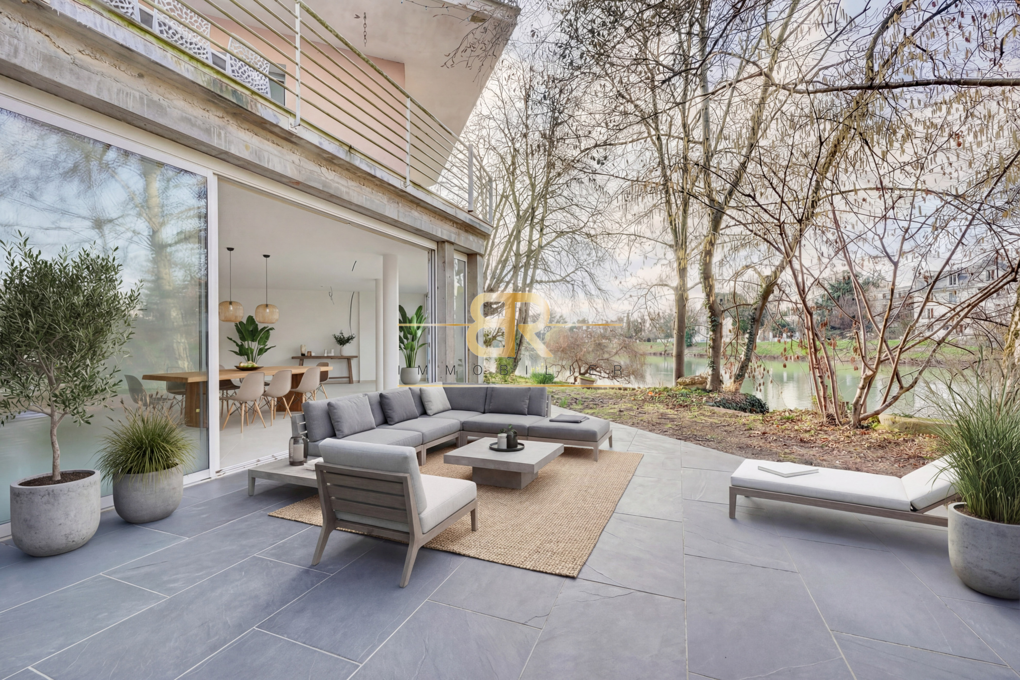 EXCLUSIVITÉ - ACCÈS DIRECT BORDS DE MARNE - Le Cabinet BR Immobilier est ravi de vous présenter une propriété d'exception en bord de Marne, développant environ 700 m2 au sol (653 m2 habitables) sur une parcelle arborée de 715 m2, avec ACCÈS DIRECT À LA MARNE via une BERGE PRIVÉE. Un bien rare, offrant une VUE PANORAMIQUE imprenable sur la Marne, dans un environnement privilégié et paisible.