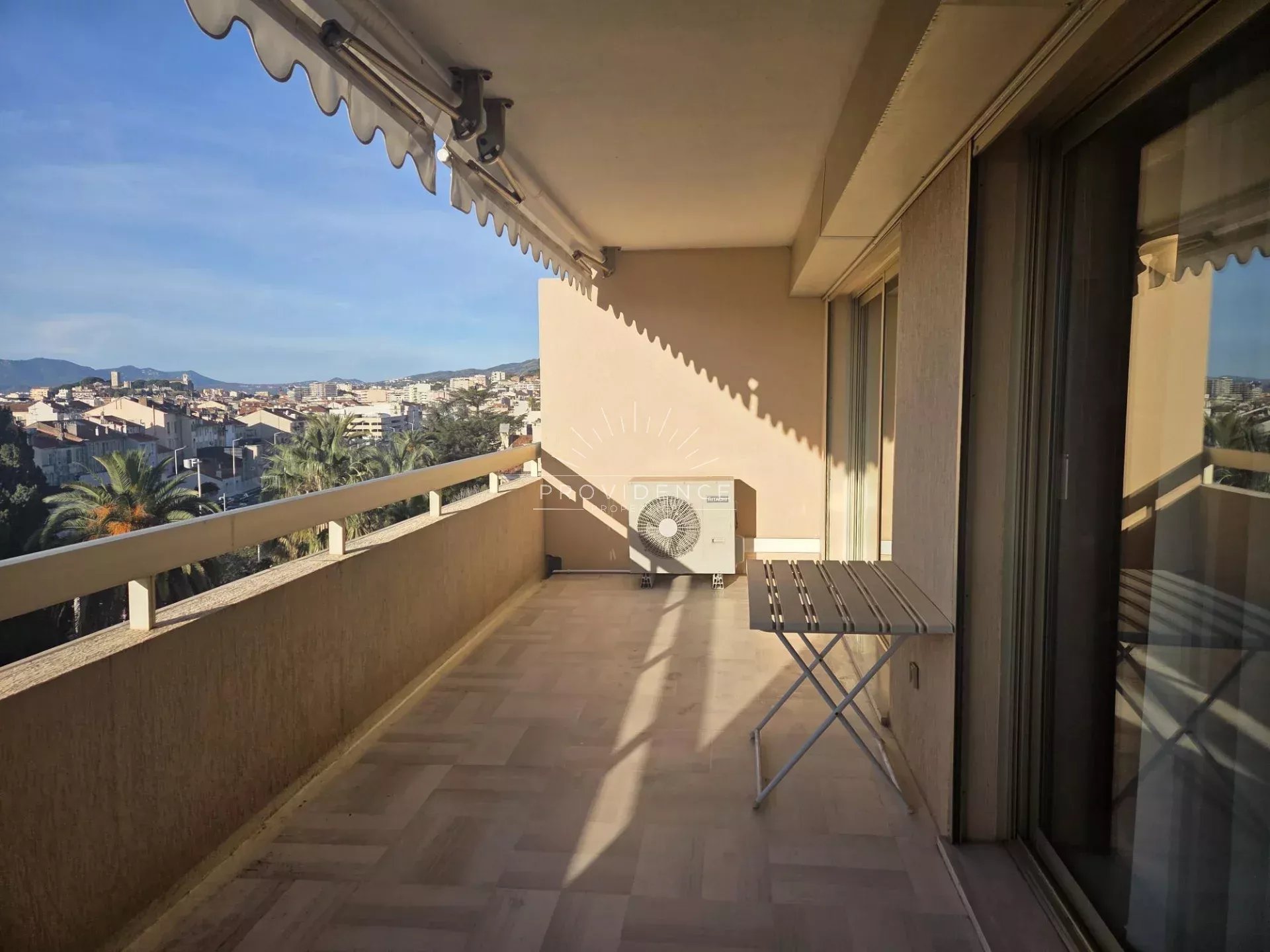 Situé au 6ème et dernier étage d’une résidence de standing particulièrement bien entretenue, cet appartement traversant de 110 m² bénéficie d’une exposition plein sud avec vue sur le Suquet, lui assurant une luminosité optimale. Idéalement implanté à Cannes, à proximité immédiate de l’ensemble des commerces, services et commodités, il offre un cadre de vie pratique et agréable, permettant de tout faire à pied. L’appartement s’ouvre sur une grande entrée desservant les différents espaces. La cuisine est indépendante, fonctionnelle et parfaitement distincte des pièces de vie. Le séjour, particulièrement spacieux, constitue le cœur de l’appartement et bénéficie de beaux volumes, avec un accès direct à une vaste terrasse exposée plein sud, offrant une vue dégagée sur le Suquet. Un balcon complète les espaces extérieurs et renforce le caractère traversant du bien. L’espace nuit comprend deux chambres, ainsi qu’un bureau. Deux salles de douche et un WC invités viennent compléter l’agencement intérieur, apportant confort et fonctionnalité au quotidien. Ce bien rare est complété par deux garages fermés, offrant une solution de stationnement confortable, ainsi que deux caves. Un appartement spacieux, lumineux, situé en dernier étage, réunissant volumes, extérieurs et vue, dans un environnement central et recherché de Cannes. Les informations sur les risques auxquels ce bien est exposé sont disponibles sur le site Géorisques : georisques.gouv.fr