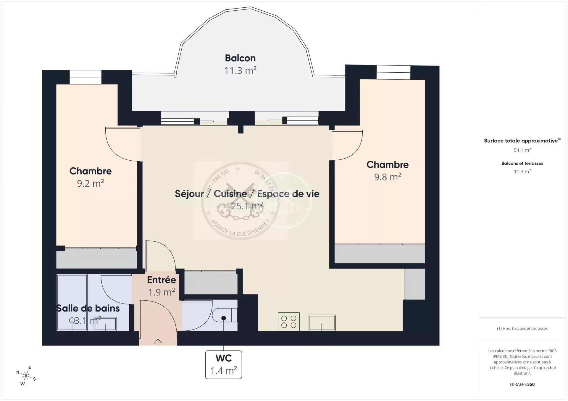 Le bien se compose d’une salle de bain équipée d’une douche, de WC indépendants, ainsi que d’une cuisine aménagée et équipée et un séjour ouvert, de deux chambres ainsi que d'une grande terrasse.