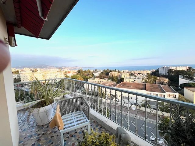NICE FABRON, 143 boulevard Napoléon III, grand 2 pièces meublés de 73m² au 4ème étage, grand dressing, buanderie, vue imprenable ville et mer, salle de douche, parking extérieur privé, libre mi février 2026.