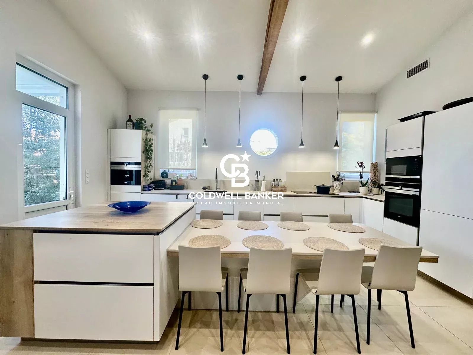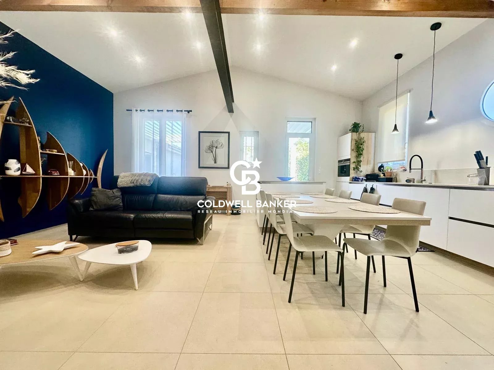 Coldwell Banker Immoba Realty Andernos-les-Bains vous présente cette élégante villa, style arcachonnais,entièrement rénovée en 2022, à deux pas du Bassin. Avec ses deux chambres (dont une suite avec dressing), elle offre des volumes, dans l'espace de vie, hors normes par un plafond cathédrale et un agencement parfaitement adapté à la vie familiale. La cuisine ( cuisiniste AC INTERIEUR concept) est très épurée avec son plateau en dekton , avec une buanderie attenante de 5m². Les matériaux choisis avec soin confèrent à cette rénovation un effet surprenant entre l'extérieur, respectant les codes du secteur et un intérieur résolument contemporain. Un studio de 18 m², accessible sous une véranda bio climatique de plus de 27 m², complète ce bien et répond parfaitement aux besoins d'intimité pour recevoir vos amis ou famille en toute indépendance. Le terrain offre la possibilité d’installer un petit bassin de nage inférieur à 10m² à deux endroits au choix, ajoutant un espace de détente supplémentaire à cette propriété déjà très attrayante. La terrasse couverte de 36m² ouvert vous permet d'abriter vos voitures ou d'en faire une terrasse couverte , orientée Sud-Est. DPE B (99kWh/m²/an)et GES A ( 3 kgCO²/m²/an). Montant estimé des dépenses annuelles d'énergie pour un usage standard : entre 870 € et 1 220 € sur les années 2021, 2022 et 2023 (abonnements compris). Prix : 859 000 € HAI Honoraires d’agence : 29 000 € TTC (3.43 %) à la charge de l’acquéreur, soit un prix net vendeur de 830 000 euros. Pour plus d’informations, contactez Christine BIANCHI, Agent Commercial Indépendant, RSAC : 854 067 62 – Assurance Responsabilité Civile Professionnelle : 60660388 Retrouvez l’ensemble de nos biens sur IMMOBA.