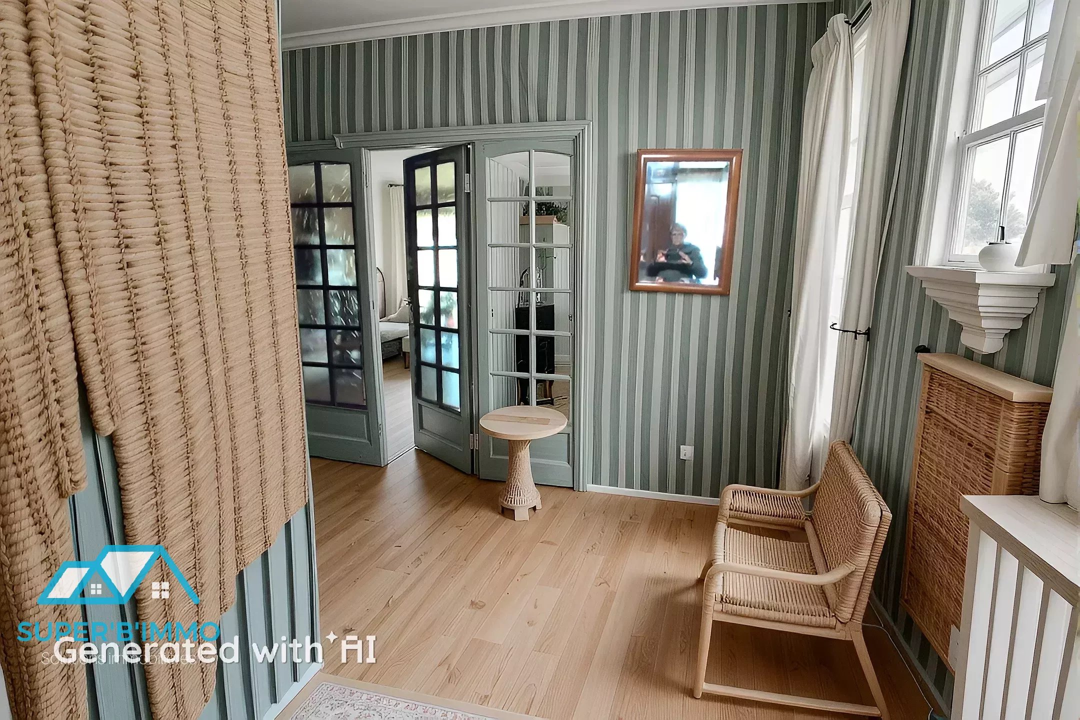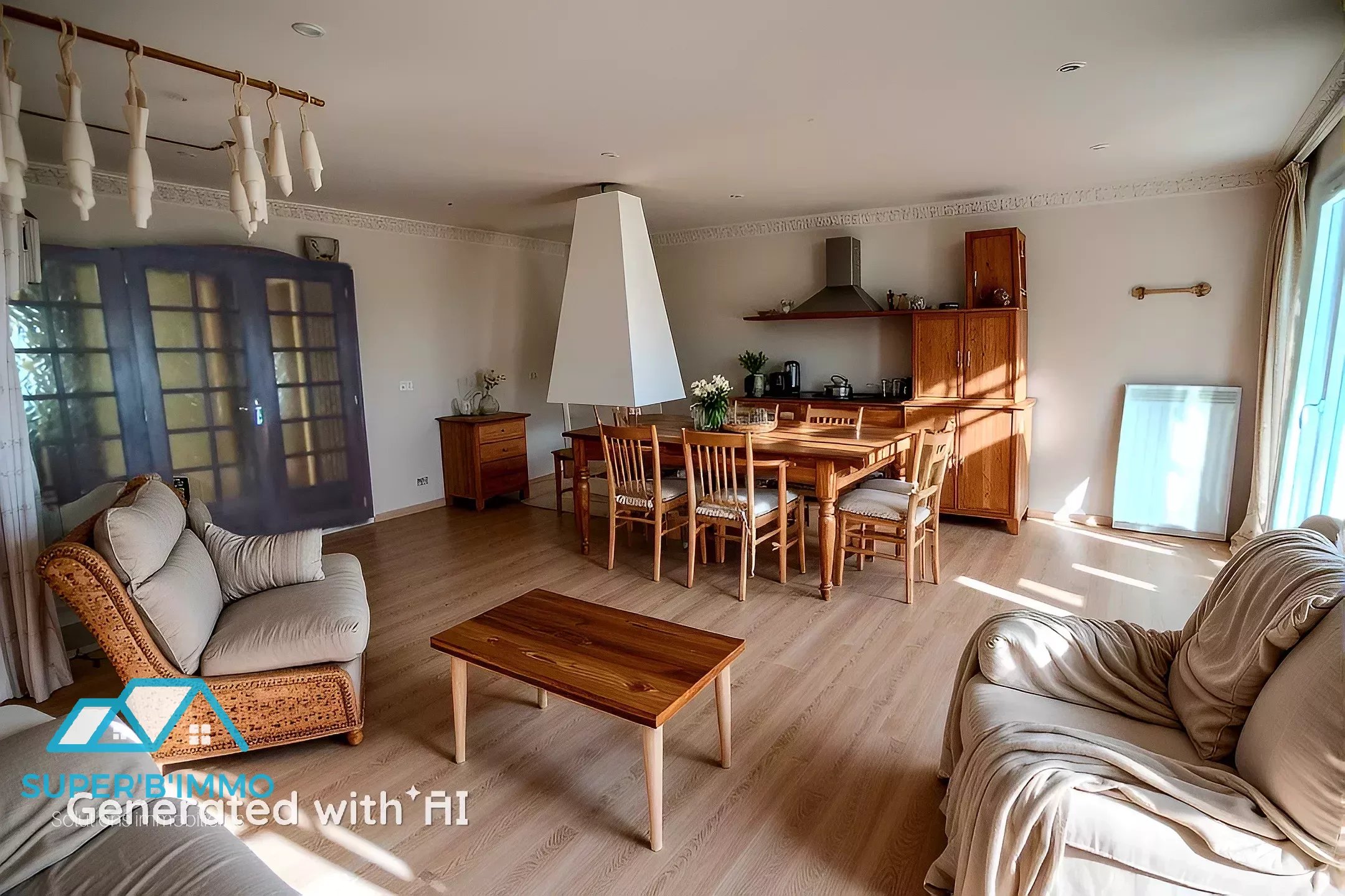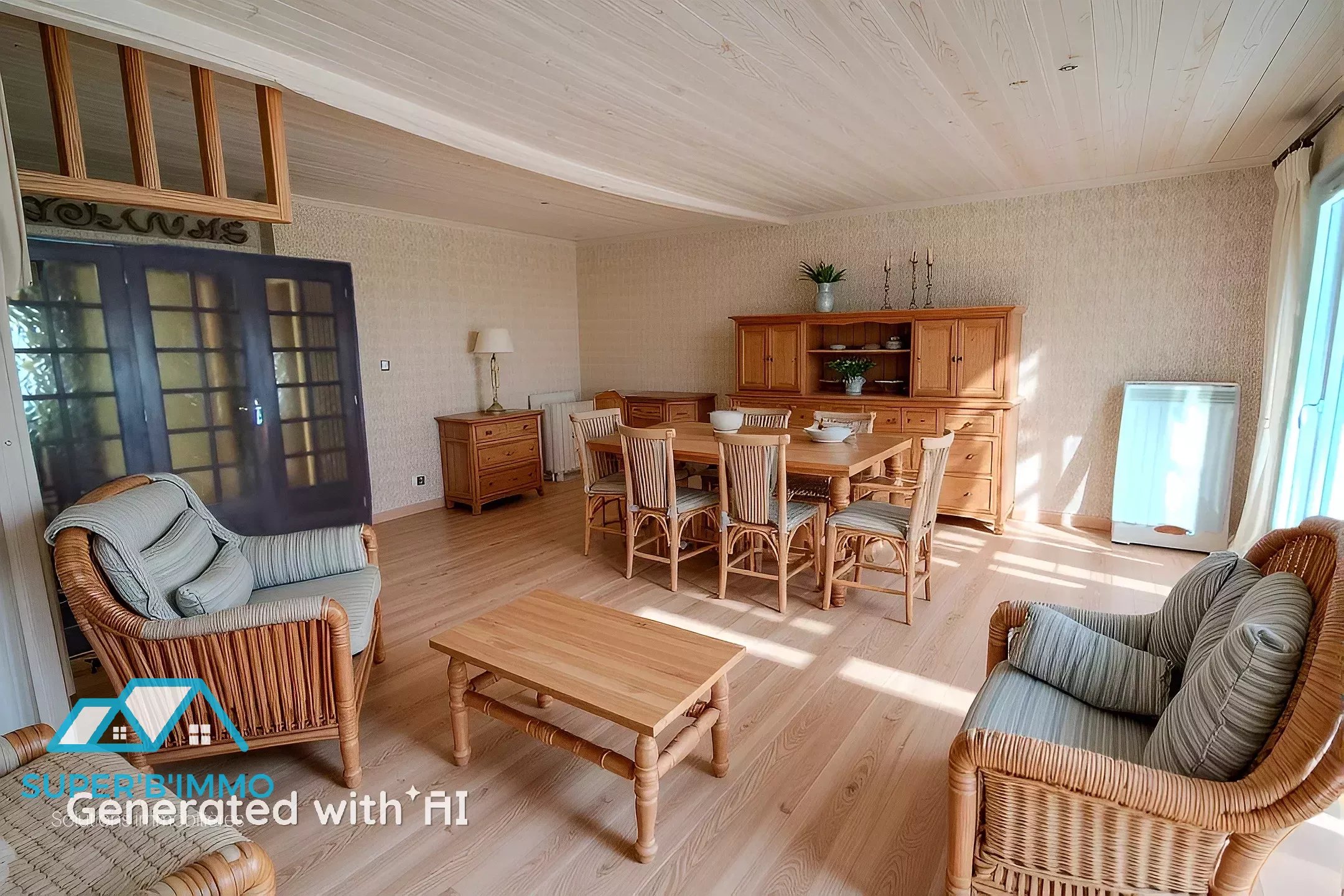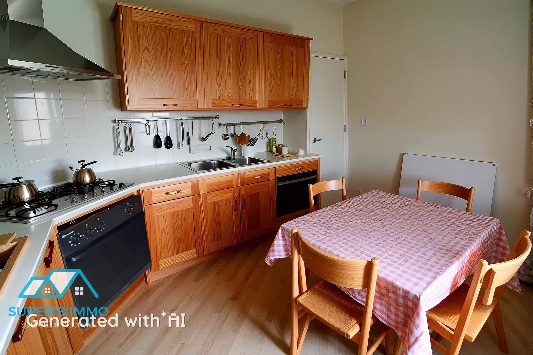 Un escalier ouvert mène à l’étage où se trouvent trois belles chambres, un dressing, une salle de douche et un WC indépendant.