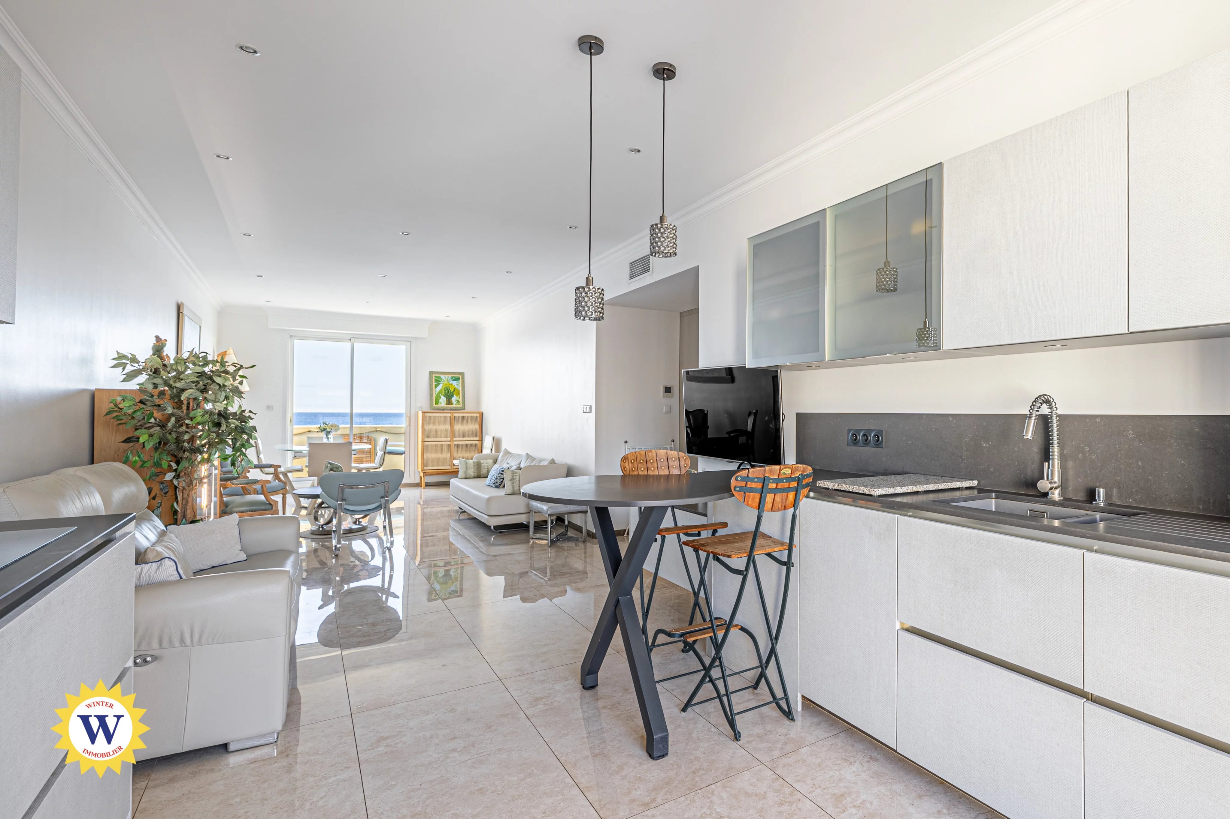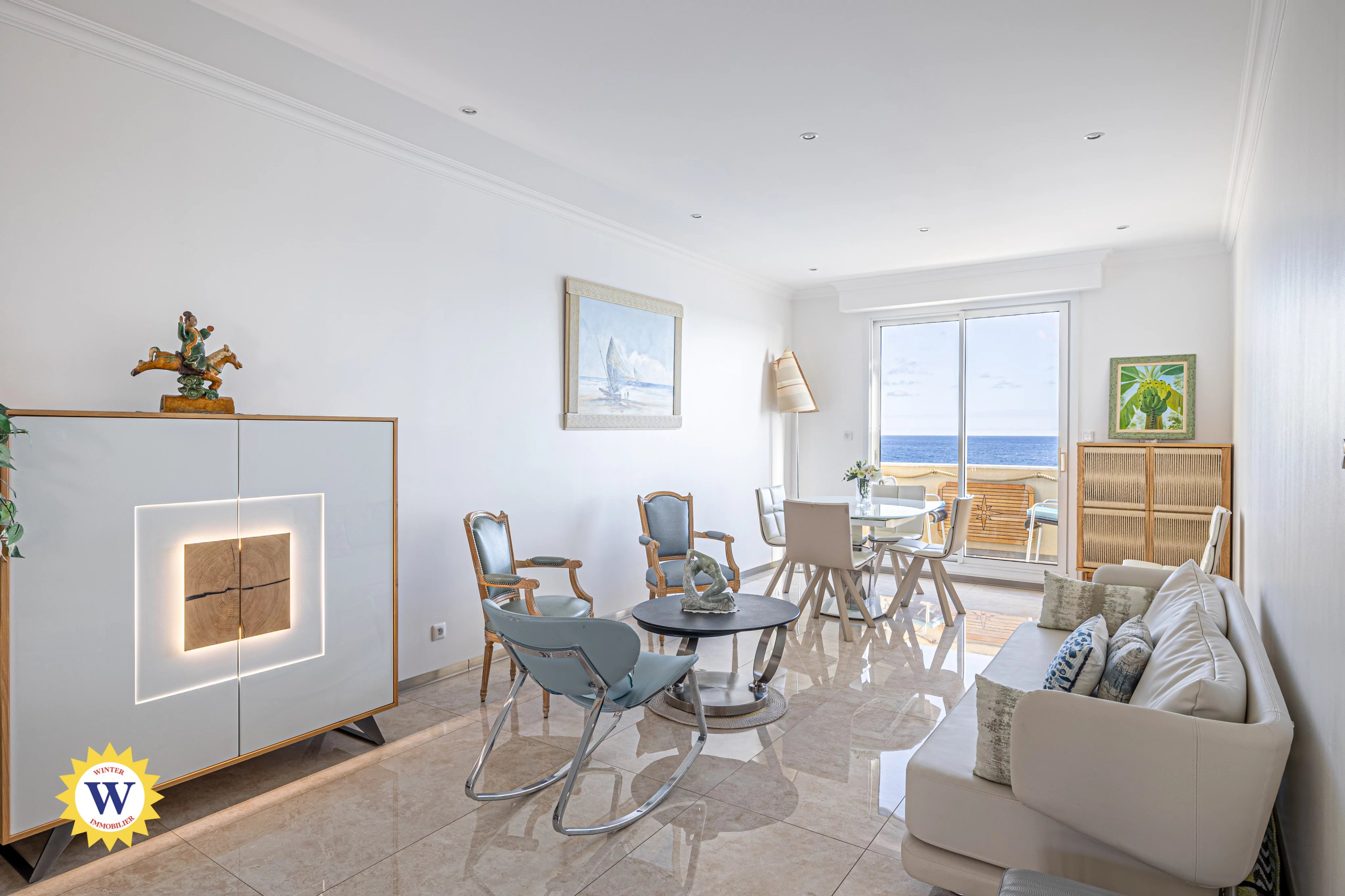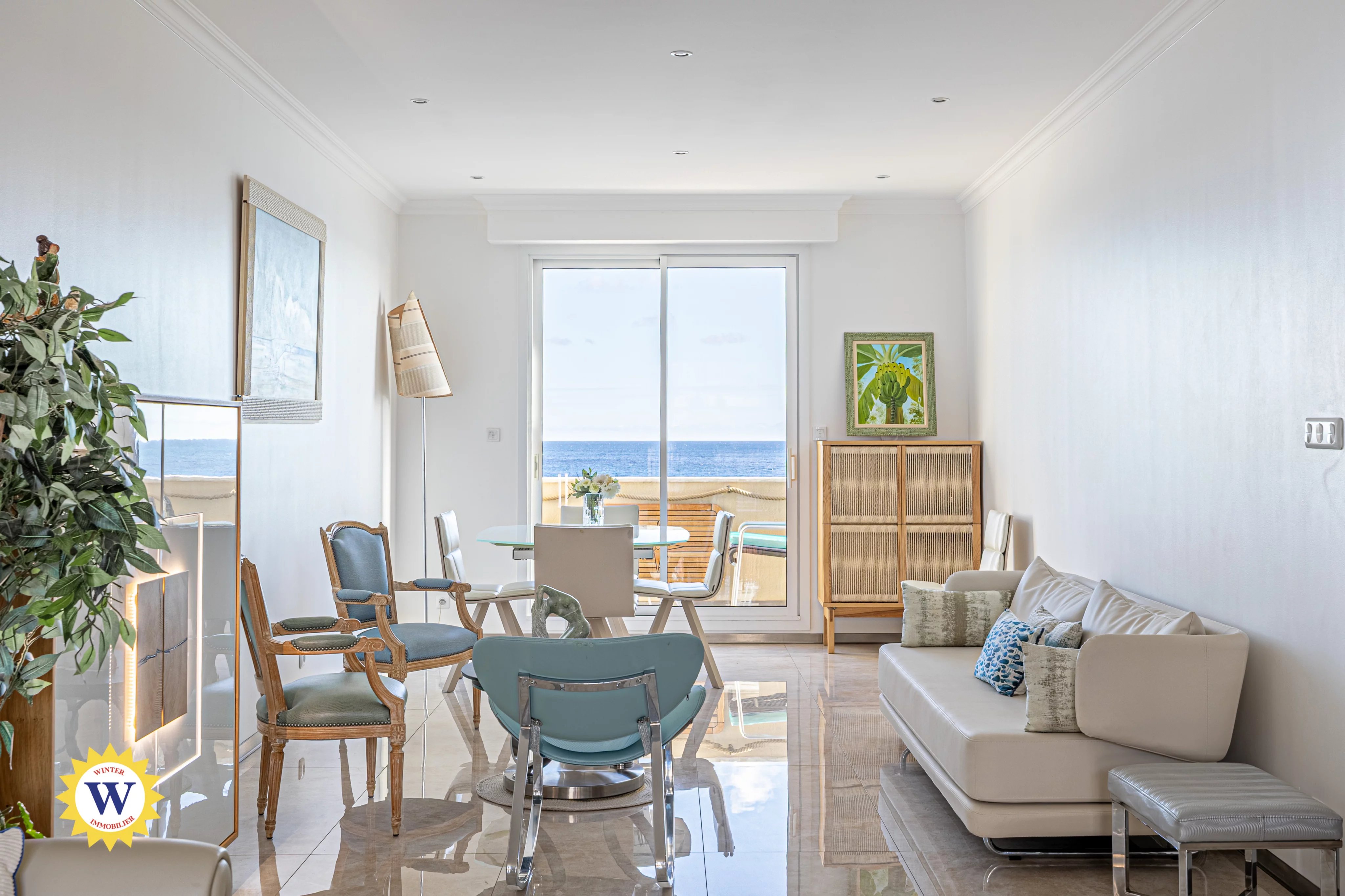 Affacciato sul Mar Mediterraneo, sulla leggendaria Promenade des Anglais di Nizza, questo appartamento di circa 97 m² occupa l’ultimo piano di un’elegante residenza borghese dotata di ascensore. Fronte mare, gode di una vista panoramica mozzafiato, vera firma di questa posizione d’eccezione. Completamente ripensato, l’appartamento è stato oggetto di una ristrutturazione integrale in stile contemporaneo, che valorizza materiali di alta qualità e soluzioni su misura. L’insieme emana un’atmosfera raffinata e senza tempo, pensata per uno stile di vita incentrato sulla luce, sul mare e sull’orizzonte. L’ampio ingresso con armadiature conduce a un grande soggiorno esposto nord-sud, inondato di luce naturale. Il soggiorno si apre su un balcone fronte mare, offrendo una vista spettacolare sulla Baia degli Angeli. La cucina a vista, completamente attrezzata, si affaccia su un secondo balcone esposto a nord-ovest, garantendo freschezza, comfort e funzionalità nella vita quotidiana. La zona notte è composta da due camere da letto con finiture su misura, ciascuna con bagno privato, che garantiscono un comfort ottimale. La camera da letto principale, con una superficie di 15 m², si affaccia su un balcone privato, mentre la camera secondaria gode di accesso diretto a una terrazza di 10 m², facilmente trasformabile in un accogliente salotto estivo. Esposto a nord-ovest, questo spazio esterno gode di un'atmosfera temperata e discreta, al riparo dal caldo intenso e dagli sguardi indiscreti. È perfetto per le serate estive con gli amici e per momenti di calma fuori dal tempo. Infine, l'appartamento offre tutti i comfort moderni grazie a servizi di alta gamma, tra cui aria condizionata canalizzata, tripli vetri e due porte blindate, di cui una con codice di sicurezza. Un garage chiuso è disponibile con un supplemento di 64.500 €, un vero lusso raro sulla Promenade des Anglais. Una cantina completa la proprietà. Situato in una delle zone più ricercate della Costa Azzurra, questo gioiello immobiliare unisce indirizzo prestigioso, vista mare spettacolare e ristrutturazione di qualità, a pochi passi dalle spiagge, dal tram e a meno di dieci minuti dal centro città. Un’opportunità riservata a una clientela che apprezza le espressioni più raffinate dello stile di vita della Costa Azzurra. Contattateci oggi stesso per una visita privata di questa proprietà d’eccezione.