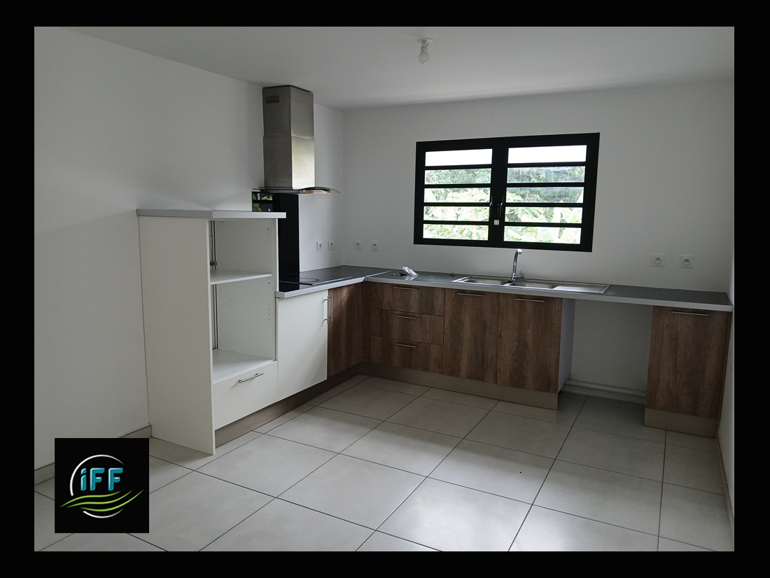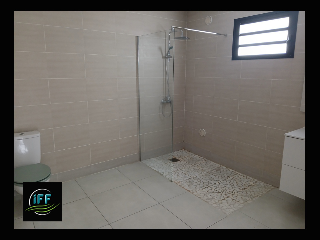 Il est composé d'un séjour, d'un salon donnant sur une grande varangue de 15 m2, d'une cuisine ouverte, de 3 chambres de plus de 12 m2, d'une salle d'eau avec WC.