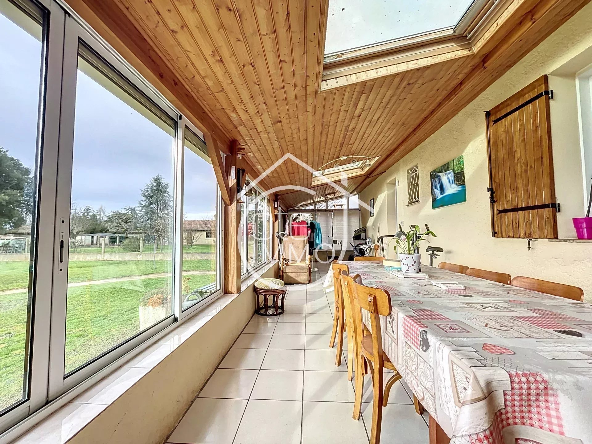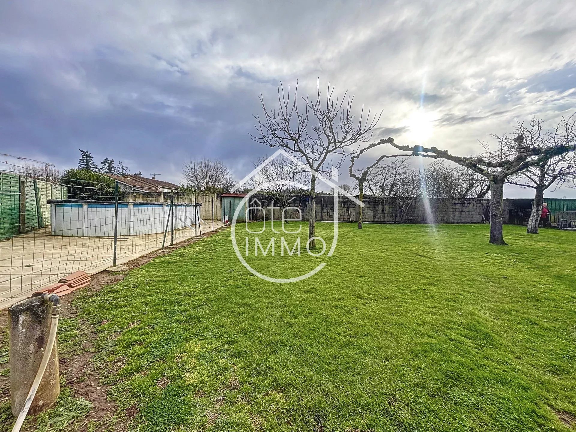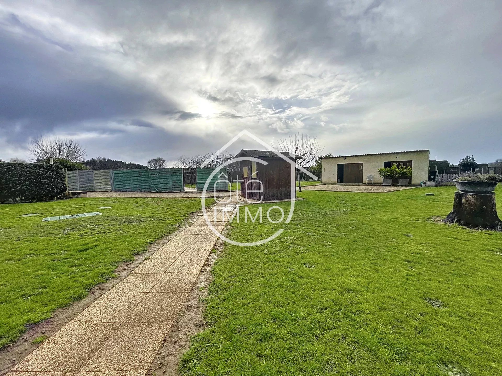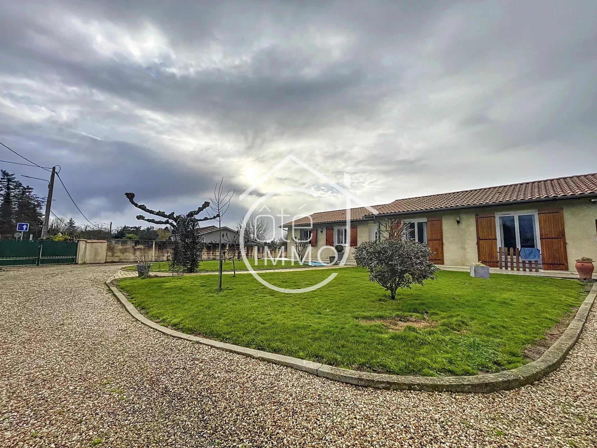 Située dans un cadre paisible, cette maison de plain-pied offre un cadre de vie agréable sur un terrain de 2 270 m² entièrement clôturé. Dès l’entrée, vous découvrirez un salon lumineux, parfait pour partager des moments en famille. La cuisine indépendante, fonctionnelle et bien agencée, dispose d’un cellier/buanderie attenant, apportant un bel espace de rangement. Côté nuit, un couloir dessert quatre chambres, offrant confort et intimité à chacun, ainsi qu’une salle de douche. Une véranda vient compléter les espaces de vie, idéale pour profiter de la lumière naturelle en toute saison. L’extérieur ne manque pas d’atouts : un garage attenant facilite le stationnement et le rangement, tandis qu’un double garage indépendant permet d’accueillir plusieurs véhicules ou d’aménager un espace de stockage supplémentaire. Pour les journées ensoleillées, vous apprécierez la piscine semi-enterrée, parfaite pour se rafraîchir et profiter du grand jardin. Cette propriété est équipée pour un confort optimal avec un chauffage électrique et une climatisation réversible. La fosse septique, installée il y a seulement deux ans, garantit un assainissement conforme. L’ensemble est entièrement sécurisé grâce à un portail électrique, offrant tranquillité et intimité.
