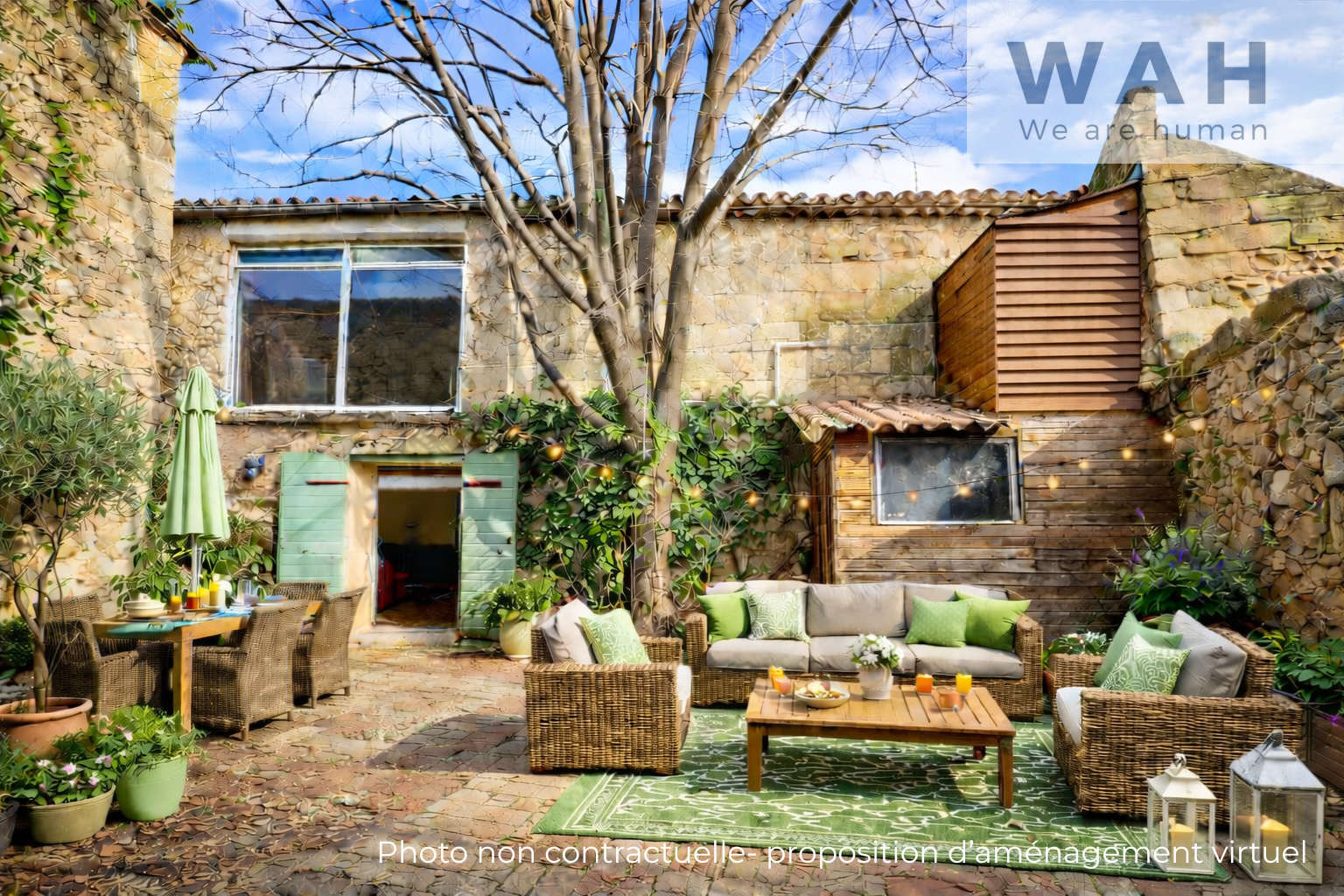 La cour sans vis-à-vis apporte un véritable espace extérieur intime au coeur du village. La maison dispose d'un chauffage au gaz complété par un poêle à bois, de la climatisation dans le salon et dans une pièce de la dépendance, du double vitrage et d'un adoucisseur d'eau.