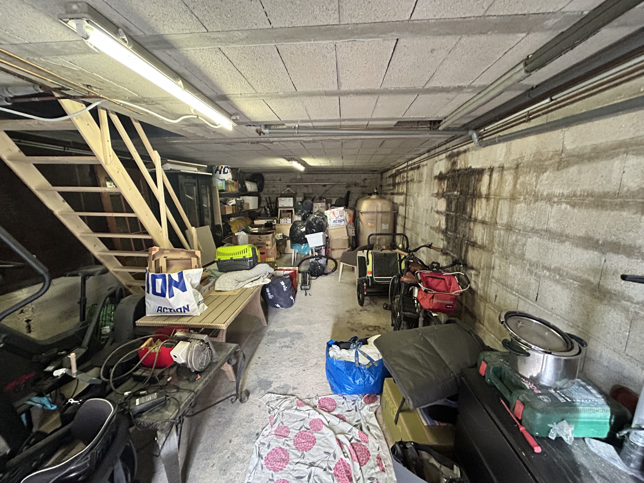 La maison dispose également d'un garage fermé pouvant accueillir un véhicule, d'une cave voûtée, d'un cabanon avec four à pain et de deux places de stationnement extérieures.