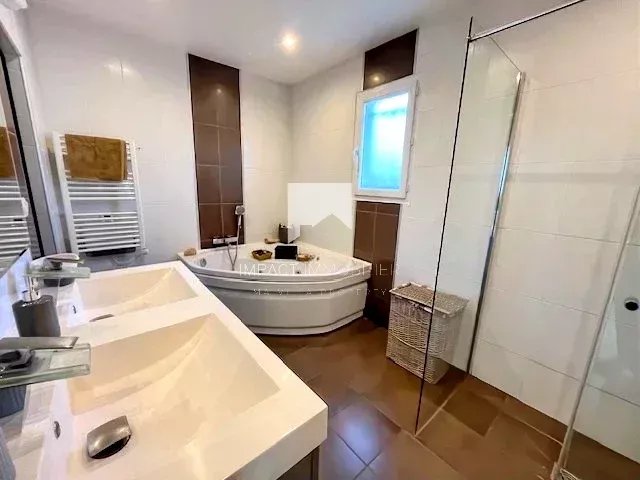 L’espace nuit offre trois belles chambres avec placard, un dressing, ainsi qu’une salle de bain raffinée équipée d’une baignoire et d’une douche, complétée par des WC indépendants.