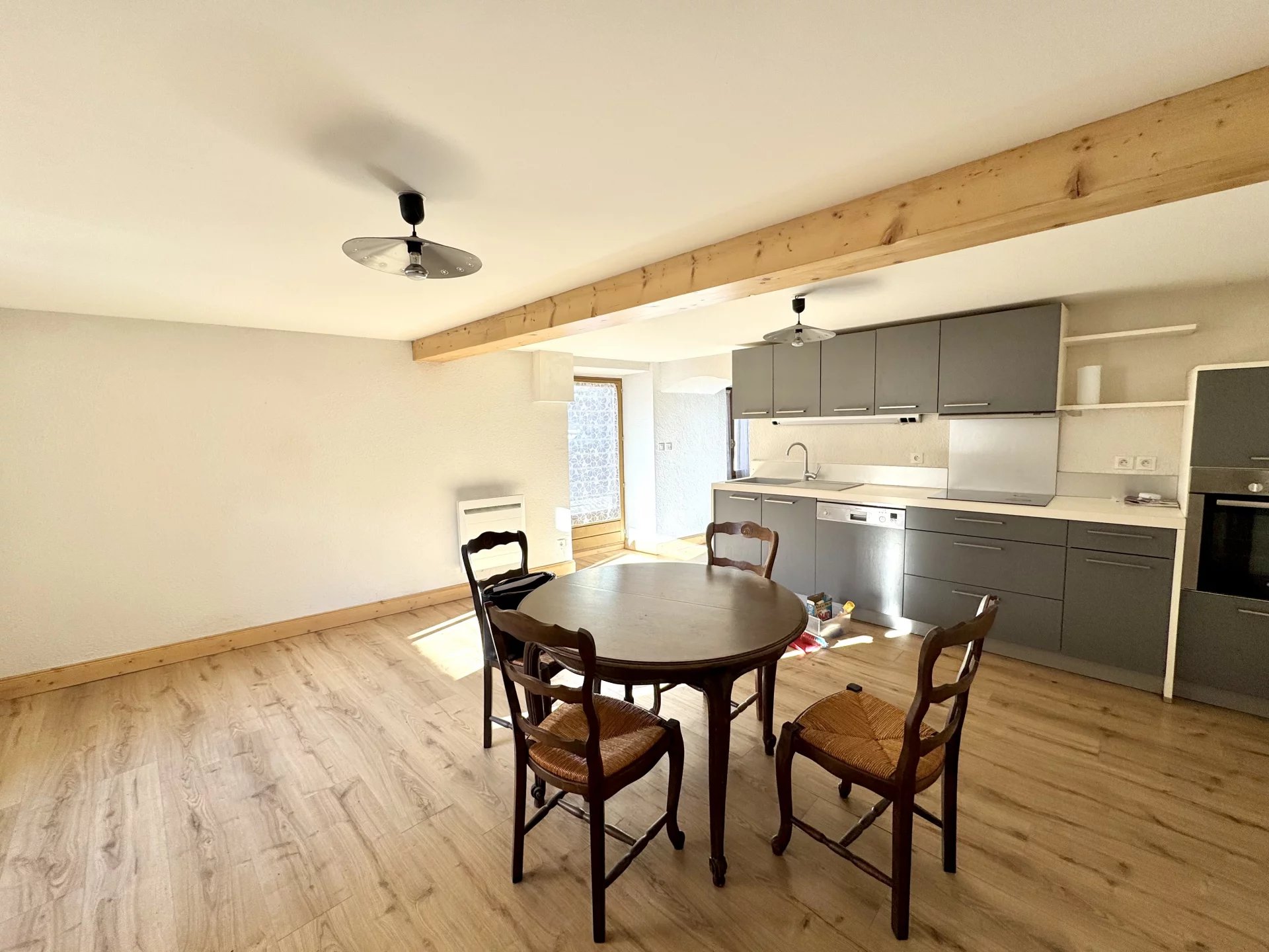 Au coeur de Modane-Ville, Maison de ville composée sur trois niveaux composée comme suit : - Niveau -1 : Grandes caves - Niveau 0 : Entrée, pièce de vie, cuisine et WC. - Niveau 1 : 4 chambres et une salle de bains. En annexe, une grange à rénover d'environ 200m2 sur deux niveaux (100m2 par niveau) pouvant être complètement indépendante (plusieurs entrées déjà existantes).