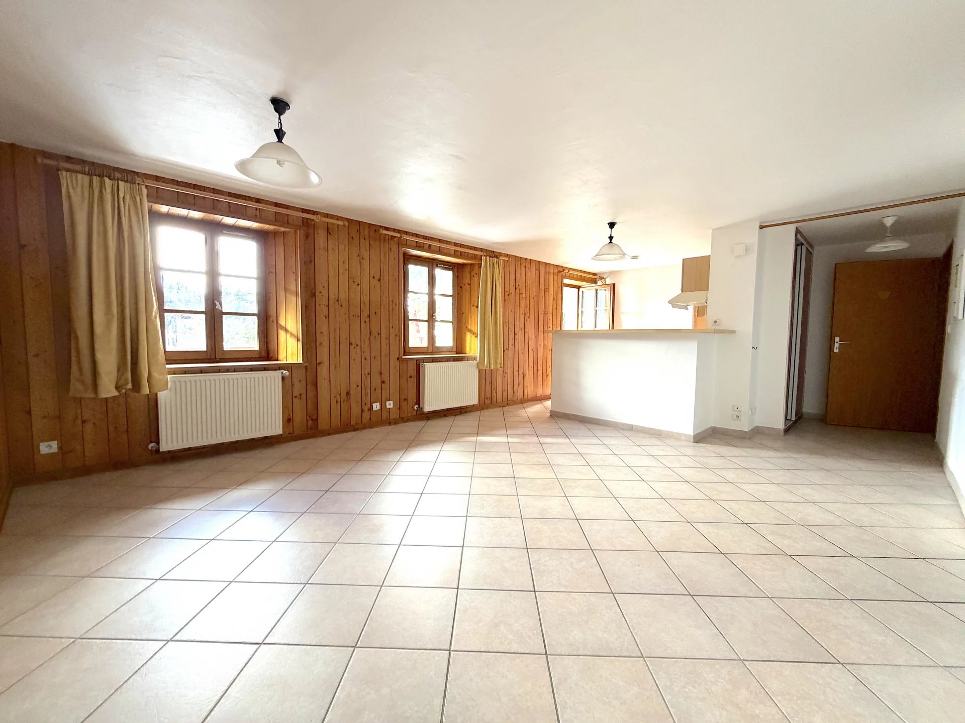 PETITE COPROPRIÉTÉ - BALCON - SUPERBE VUE - ENSOLEILLÉ - PARKING PRIVATIF À deux pas du centre du village, appartement composé d'une entrée, une pièce de vie avec cuisine ouverte donnant sur le balcon très bien exposé, deux chambres, une salle de bains et WC. Une place de parking privative et un grenier.
