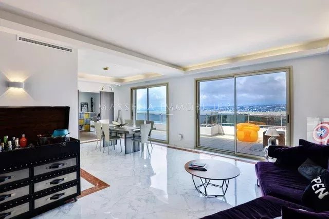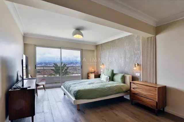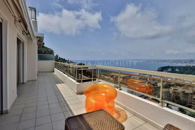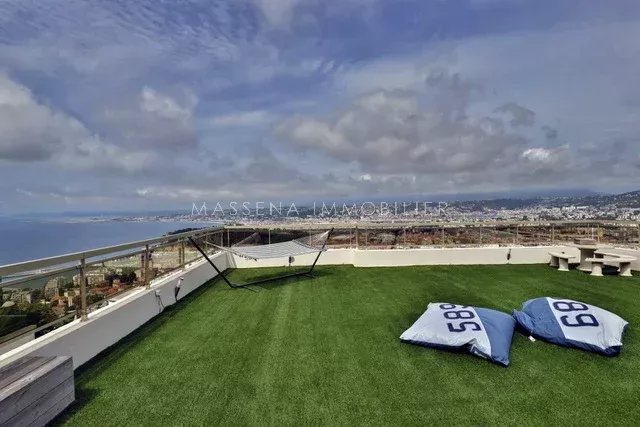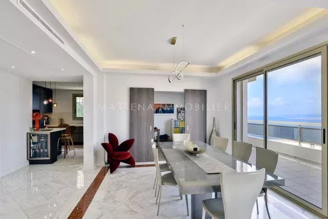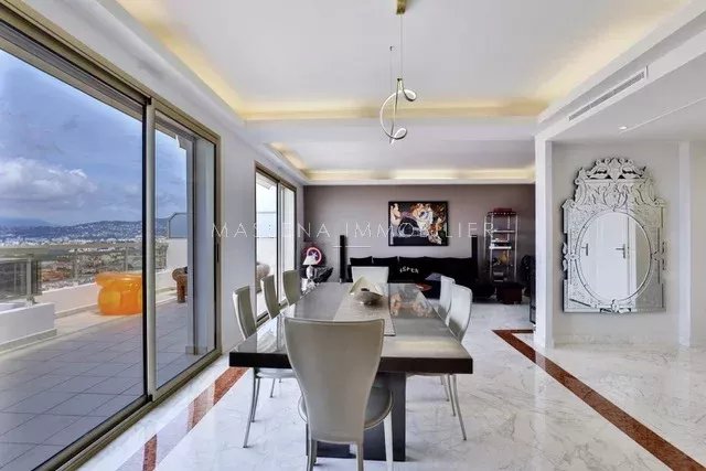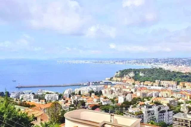 NICE MONT-BORON : Dans un lotissement sécurisé, cette propriété d'exception sur plusieurs niveaux, est édifiée sur un terrain paysagé de 563m2 en restanques, avec piscine et une magnifique vue panoramique sur la mer et la ville de Nice. La villa d'environ 270m2 et de 9 pièces se compose ainsi : Au rez-de-chaussée, un hall d'ascenseur, une cave à vin et deux garages. Au R+3 : une entrée, un séjour lumineux, une salle de cinéma, une cuisine équipée, une salle de douche, une buanderie, un WC invités, une belle terrasse, une cour intérieure avec cuisine d'été, un ascenseur avec accès au toit terrasse avec piscine. Au R+2, une suite parentale d'environ 24m2 avec salle de bains complète, un dressing, une terrasse, une chambre d'amis avec salle de douche et WC, deux chambres avec accès terrasse, une salle de douche et un WC indépendant. Au R+1, un appartement de trois pièces d'environ 70m2 comprenant une cuisine ouverte sur le séjour, deux chambres, une salle de douche et un WC. Au calme, nombreux rangements, prestations de haute qualité, ce bien offre un cadre de vie rare alliant confort et détente. Coup de coeur assuré !