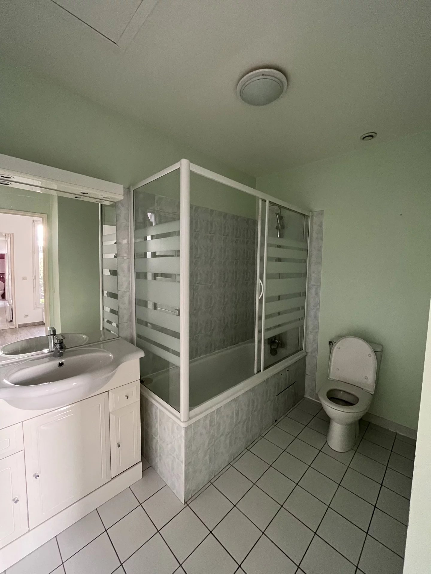 Montesson Village, au premier étage d'une petite copropriété pleine de charme, Appartement de type 2 pièces de 43,19 m2 composé d'une entrée avec placard, WC, cuisine US aménagée et équipée et salon d'environ 27,44 m2, chambre avec placard, salle de bain avec WC. Combles aménagés en dressing. Une cave vient compléter le bien.