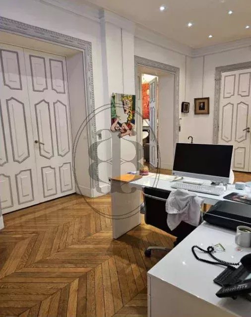 Rare plateau haussmannien de prestige situé en rez-de-chaussée au cœur du très recherché quartier des Ambassades, à deux pas de l’avenue Foch. Actuellement exploité en cabinet médical, ce bien d’exception offre une surface d’environ 260 m², complétée par deux chambres de services, deux caves et deux places de parking sécurisées à proximité. L’appartement se compose de douze pièces baignées de lumière. Traversant, avec deux courettes accessibles par l'appartement qui pourraient être couvertes pour la création de plus de 20 m² supplémentaires (sous réserve d'acceptation auprès de la copropriété pour l'obtention d'un droit de jouissance privative ou pour l'acceptation de rachat de ces espaces). Les volumes sont remarquables avec une hauteur sous plafond de 3,20 m, des moulures élégantes, un parquet d’époque sur solives et de grandes fenêtres patrimoniales. De plus, un accès principal et un accès de service, tous deux sécurisés par des portes blindées, complètent ce bien. Cet appartement rare se prête idéalement à une reconversion en habitation haut de gamme, à une division en deux appartements, à l’installation d’un siège de société ou d’une annexe d’ambassade, ou encore au maintien d’une activité médicale de standing.