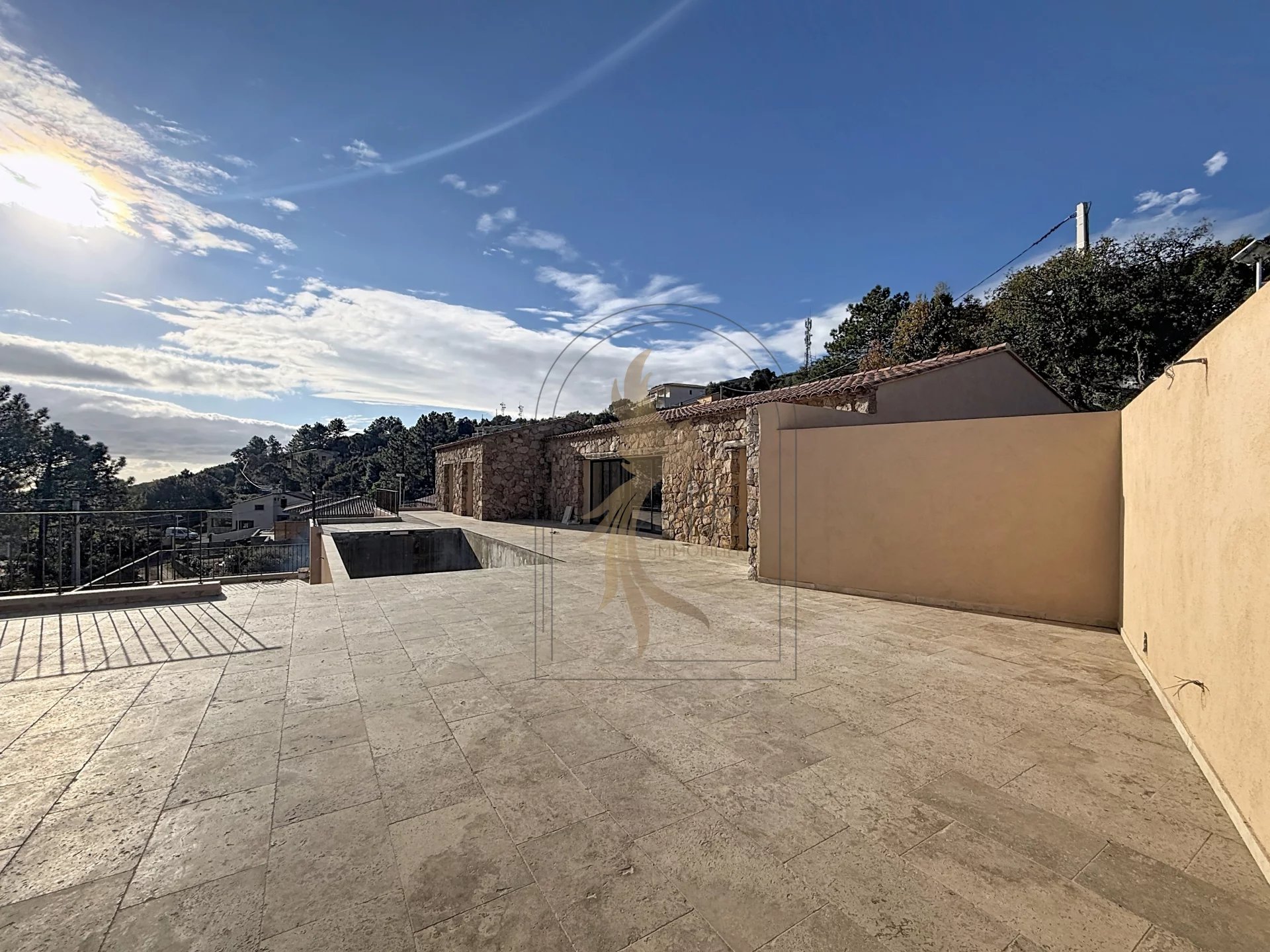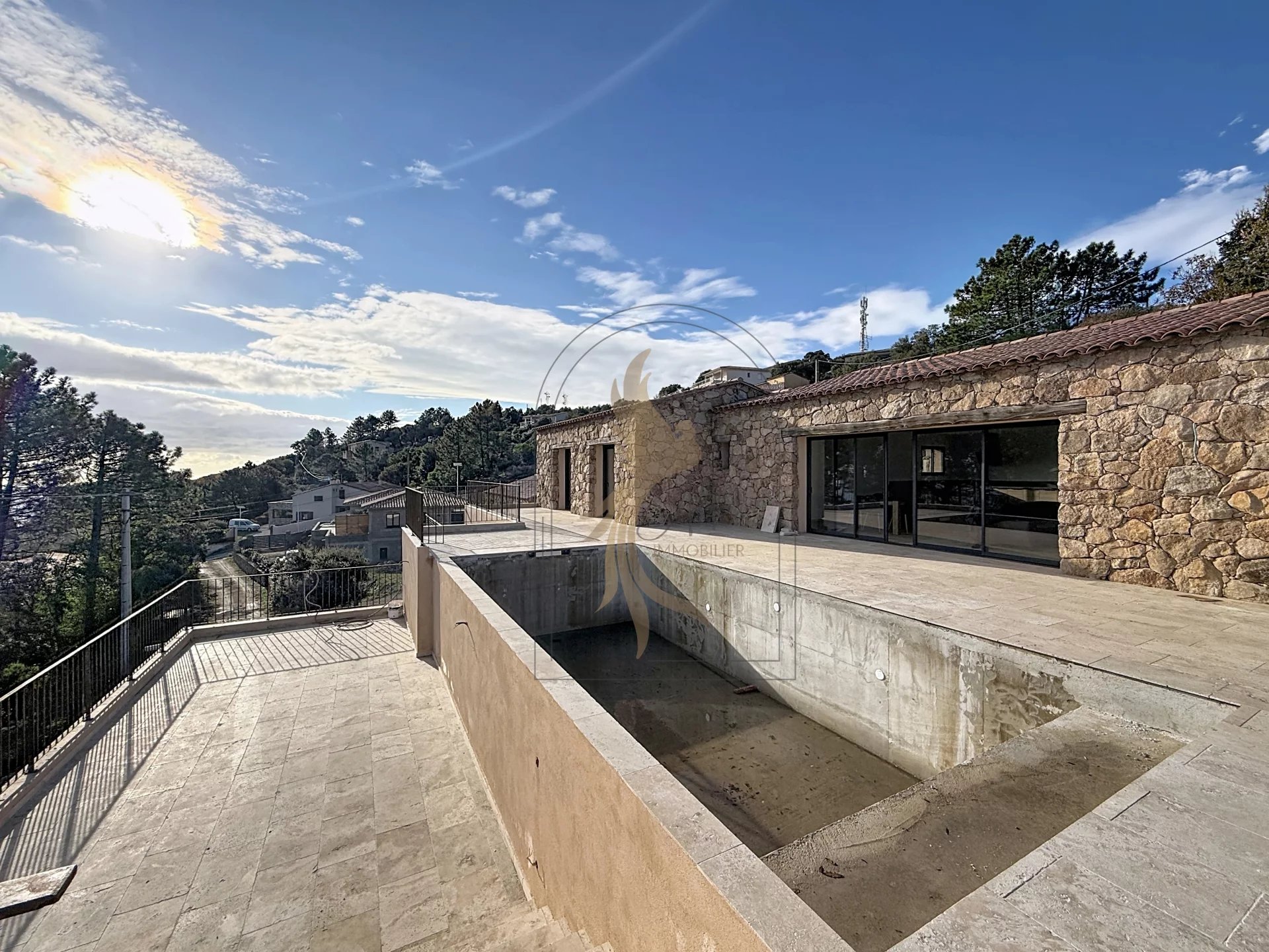 Située sur les hauteurs de Sari, à seulement 12 minutes de Solenzara, cette villa bénéficie d’un emplacement privilégié et d’un environnement paisible. Édifiée sur une parcelle d’environ 1 400 m², elle offre un cadre de vie rare avec une vue mer exceptionnelle. La maison s’ouvre sur une entrée menant à une spacieuse pièce de vie baignée de lumière, prolongée vers l’extérieur par de larges baies à galandage, créant une parfaite continuité entre intérieur et extérieur. La cuisine, entièrement équipée, complète harmonieusement cet espace convivial. L’espace nuit se compose d’une suite parentale avec salle d’eau complète et dressing, ainsi que de deux chambres supplémentaires se partageant une salle de douche wc. Un sous-sol total vient enrichir le bien : il comprend un grand garage et une pièce d’environ 70 m² avec ouvrants (fenêtre et baie vitrée). Le second œuvre reste à réaliser, offrant de nombreuses possibilités d’aménagement selon vos besoins (appartement indépendant, salle de sport, espace bien-être, bureau…). À l’extérieur, la piscine et la terrasse sans vis-à-vis vous invitent à profiter pleinement du panorama et du calme environnant. Revêtue de pierres de pays, la villa séduit par son authenticité et le charme typiquement corse de sa bâtisse.