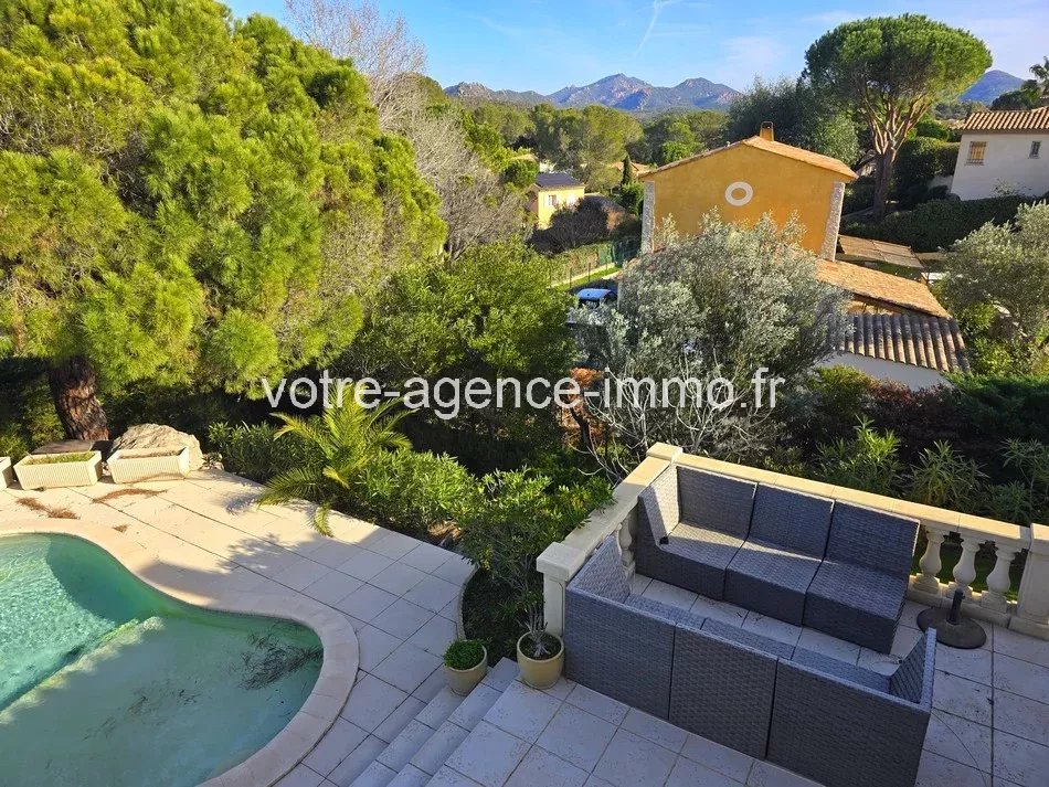 EXCLUSIVITE : SAINT RAPHAEL, secteur huppé et recherché de VALESCURE / LES VEYSSIERES, dans un LOTISSEMENT RESIDENTIEL, MODERNE et un ECRIN DE VERDURE offrant une vue sublime sur le MASSIF de l'ESTEREL, MAGNIFIQUE VILLA INDIVIDUELLE de STYLE PROVENCAL de 2002, en SITUATION DOMINANTE, sur 2 niveaux, de 5/6 PIECES pour 121,18m² Loi Carrez (surface totale de 151,36m²) et dans un ETAT EXCEPTIONNEL. TERRAIN de 1.169m² comprenant plusieurs terrasses et un BEAU JARDIN MEDITERRANNEEN, une PISCINE, un GRAND GARAGE et un nombre considérable de stationnements intérieurs et extérieurs. CALME, LUMINEUSE, sans vis-à-vis et en retrait des voies de circulation. Elle se compose au rez-de-jardin d'une entrée (10,55m²), d'un salon (11,16m²), d'un BEAU et GRAND séjour dans son prolongement (33,70m²) avec 3 expositions offrant le soleil du matin au soir et un accès sur la PISCINE, d'une cuisine aménagée et équipée (13,53m²) ouverte sur le salon et comprenant un espace cellier / buanderie attenant (4,23m²), une salle de douche avec wc (4,07m²) ainsi qu'un bureau (7,80m²) donnant accès à un GRAND GARAGE (18,50m²), complètent sa distribution. A l'étage, un dégagement répartit 3 chambres (9,57m², 10,60m² et 13m²), chacune ayant une orientation et une vue différente des plus agréables, une salle de bains (5m²) ainsi qu'un wc séparé (1,54m²). NOMBREUSES PRESTATIONS parmi lesquelles : porte blindée, double vitrage toutes fenêtres, baie vitrée coulissante dans le séjour et sur la piscine, volets roulants électriques (séjour et garage), cheminée (insert), système de vidéosurveillance avec abonnement, nombreux placards de rangement, vidéophone, vide sanitaire et tout-à-l'égout... Concernant les COMMODITES : Arrêt de bus à 500m (lignes 6 et 7), commerces à 15mns à pied ou 2mns de voiture, Golf et tennis pour les plus sportifs à 5mns et sentiers de randonnées accessibles facilement du lotissement, autoroute à 20mns, AGAY et ses plages à 7mns, Saint Raphael à 11mns, Fréjus à 13mns, Cannes à 45mns, Saint Tropez à 60mns, Nice et son aéroport à 70mns... Le charme de la Provence dans un environnement haut de gamme et un cadre naturel. Une maison aux nombreuses prestations offrant le "coup de coeur" et pouvant satisfaire un achat en résidence principale comme en résidence secondaire. - Nombre de lots de copropriété : 449 lots. - Dernière quote-part annuelle de charges (2024 / 2025) : 442,08 €. - DPE : 185 Kwh/m²/an (D) - GES : 5 kg.co2/m²/an (A) - Consommation annuelle entre 1.737 € et 2.349 € (années de références : 2021 à 2023). - Les informations sur les risques auxquels ce bien est exposé sont disponibles sur le site Géorisques : georisques.gouv.fr.
